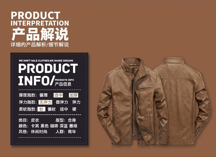Áo khoác da nam kiểu dáng mới với cổ đứng, thiết kế dành cho nam giới trung niên. Sản phẩm kết hợp hài hòa giữa phong cách công sở và đi chơi thường ngày. Chất liệu da tổng hợp mềm mại, bền đẹp, được hoàn thiện tỉ mỉ với đường may chắc chắn. Kiểu dáng cổ đứng tạo nên vẻ lịch sự, khỏe khoắn, dễ dàng phối cùng nhiều trang phục khác nhau. Có thể mặc khi đi làm hoặc trong các dịp gặp mặt bạn bè. | Tên sản phẩm: Áo Da Nam Phong Cách Trẻ Trung - Thời Trang Nam | Mã sản phẩm: D4061 - Giá: 830.000đ | Mã nhà sản xuất: SHRYAO-G03Hình ảnh sản phẩm