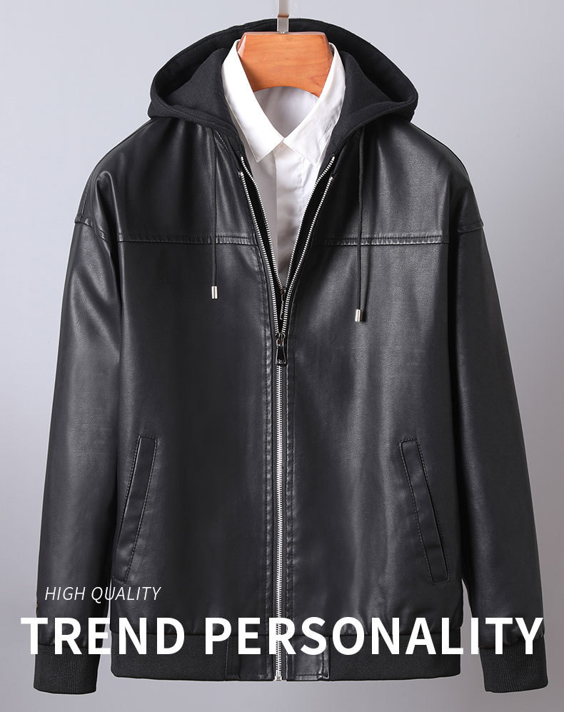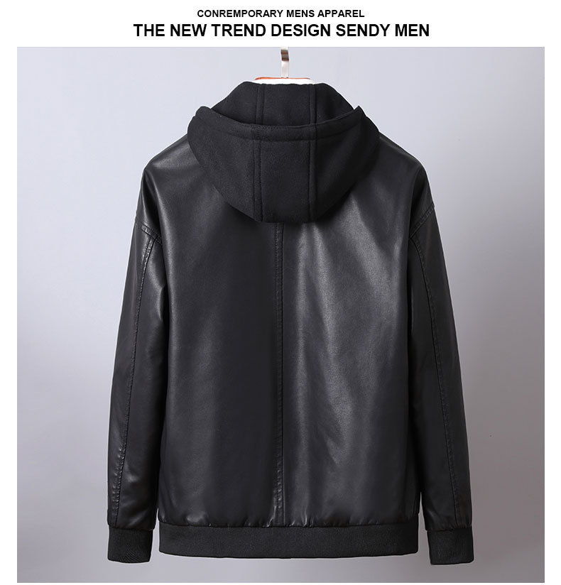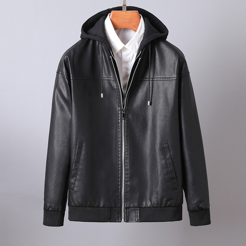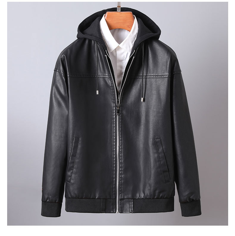 Áo khoác nam kiểu dáng thể thao, năng động với mũ trùm có thể tháo rời tiện lợi. Chất liệu vải giả da bền đẹp, bề mặt mịn mang lại cảm giác dễ chịu khi mặc. Sản phẩm phù hợp mặc trong tiết trời thu đông, giữ ấm tốt mà vẫn phong cách. Cách sử dụng đơn giản, mặc kèm áo thun hoặc áo len bên trong để tạo sự ấm áp và thoải mái. | Tên sản phẩm: Áo Da Nam Mũ Liền Hàng Mùa Xuân Thu Đông - Thời Trang Nam | Mã sản phẩm: D4092 - Giá: 990.000đ | Mã nhà sản xuất: SHRYAO-G03Hình ảnh sản phẩm