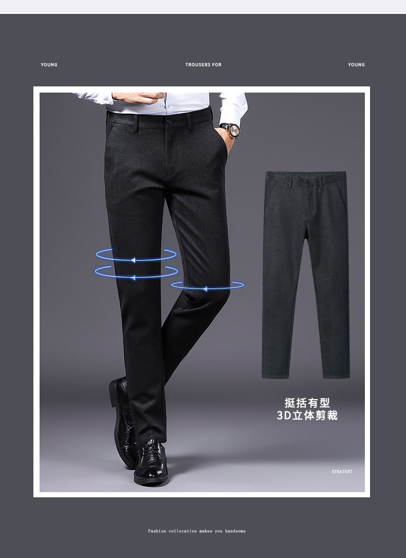 Chiếc quần tây này được thiết kế cho nam giới, kết hợp hài hòa giữa dáng vẻ chỉn chu và phong cách thoải mái. Kiểu dáng ôn vừa người và ống thẳng mang đến vẻ ngoại hình gọn gàng, lịch sự. Chất liệu co giãn nhẹ giúp bạn dễ dàng vận động, phù hợp cho cả công sở và những dịp sinh hoạt thường ngày. Có thể kết hợp cùng áo sơ mi hoặc áo thun đơn giản để tạo nên những bộ trang phục linh hoạt. | Tên sản phẩm: Quần Nam Dáng Ôm Hàng Mùa Xuân Thu Đông Phong Cách Hàn Quốc - Thời Trang Nam | Mã sản phẩm: D4404 - Giá: 890.000đ | Mã nhà sản xuất: SHRYAO-G03Hình ảnh sản phẩm