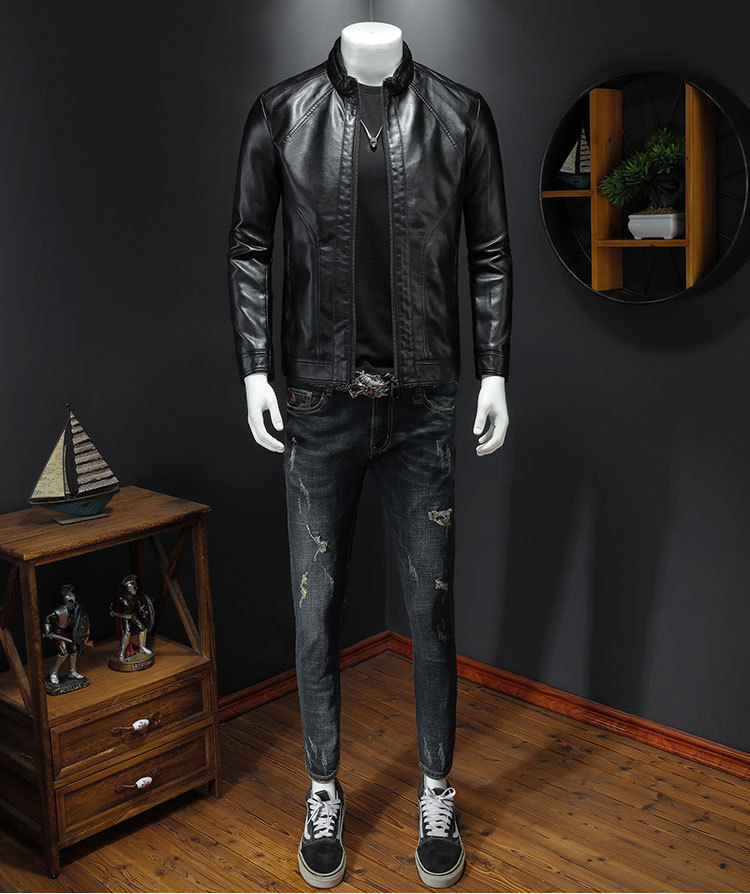 Áo khoác nam thiết kế kiểu dáng trẻ trung, phù hợp mặc trong tiết trời thu đông. Sản phẩm có cổ dựng, chất liệu da mềm mang lại cảm giác dễ chịu khi mặc. Form áo rộng rãi thoải mái, phong cách mạnh mẽ phù hợp khi lái xe hoặc diện hàng ngày. Dễ dàng phối cùng quần jeans và giày thể thao. Bảo quản nơi khô ráo, lau sạch bề mặt sau khi sử dụng. | Tên sản phẩm: Áo Da Nam Big Size Ngoại Cỡ Hàng Mùa Xuân Thu Đông Phong Cách Hàn Quốc - Thời Trang Nam | Mã sản phẩm: D4421 - Giá: 910.000đ | Mã nhà sản xuất: SHRYAO-G03Hình ảnh sản phẩm