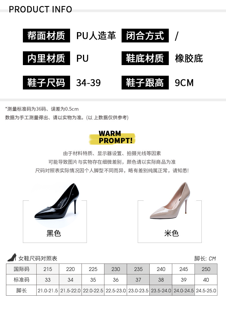 Giày cao gót kiểu dáng mũi nhọn và gót nhọn, phù hợp cho môi trường làm việc văn phòng. Sản phẩm có mặt ngoài bóng với màu đen dễ kết hợp trang phục. Đế và gót được làm chắc chắn giúp nâng đỡ bàn chân thoải mái khi di chuyển. Bạn có thể sử dụng cùng nhiều loại trang phục khác nhau như quần tây, váy công sở để tạo phong cách lịch sự. | Tên sản phẩm: Giày Cao Gót Nữ Mũi Nhọn Gót Nhọn Hàng Mùa Xuân Thu Đông - Giày Dép Nữ | Mã sản phẩm: D6844 - Giá: 1.020.000đ | Mã nhà sản xuất: ZHDIA-G03Hình ảnh sản phẩm