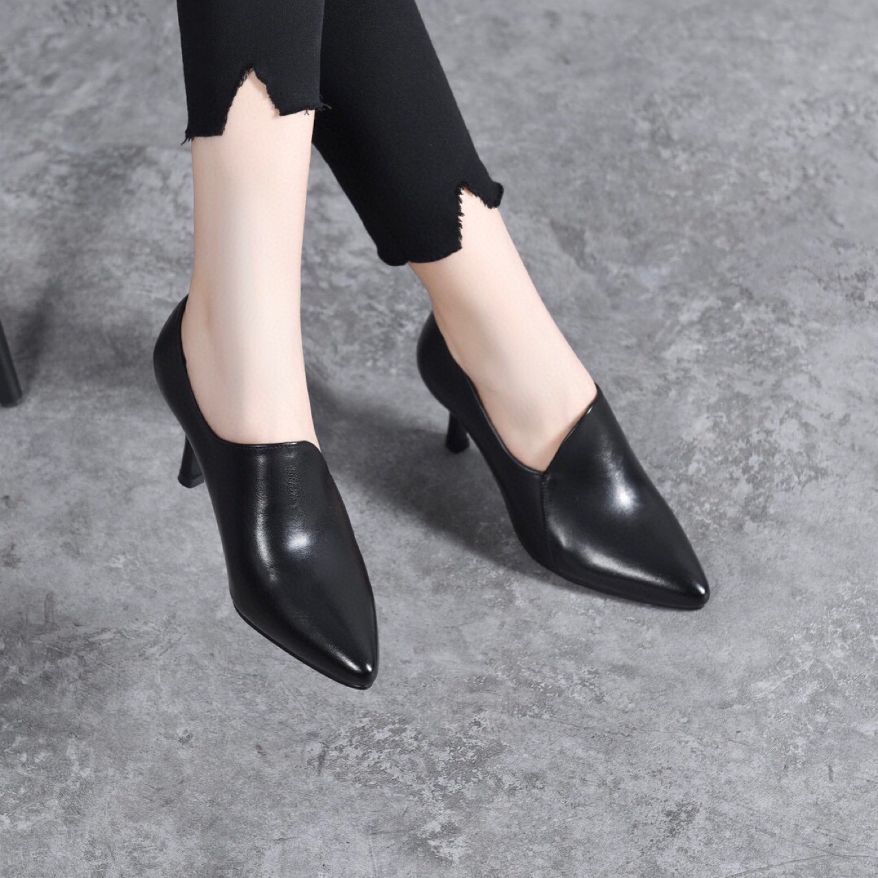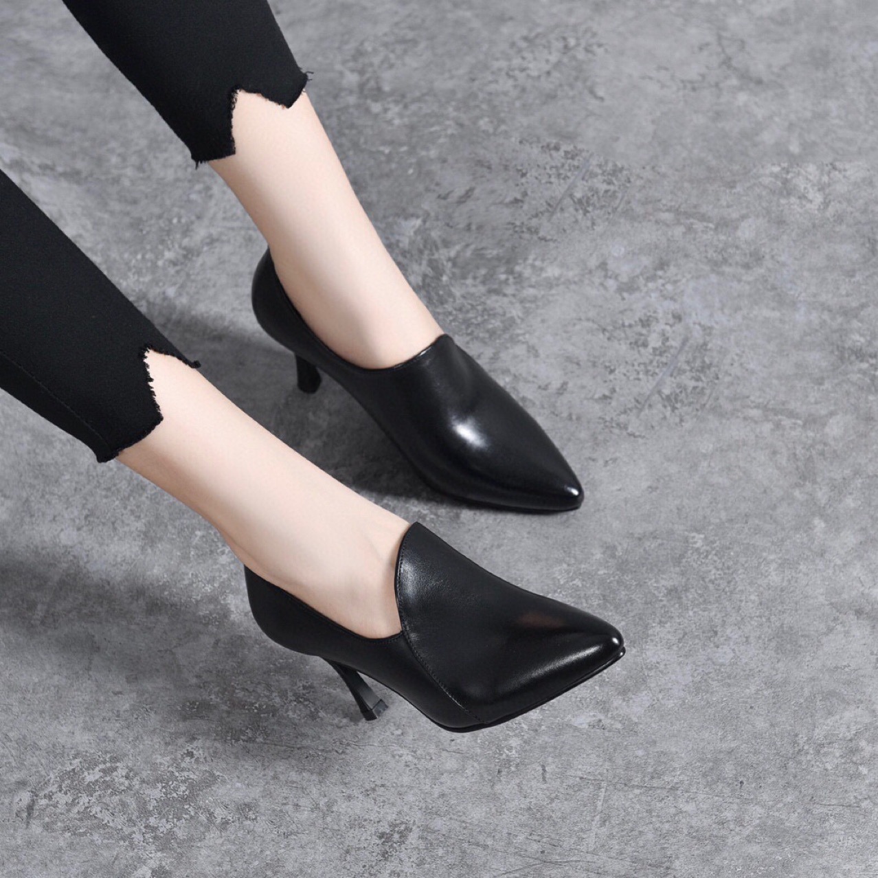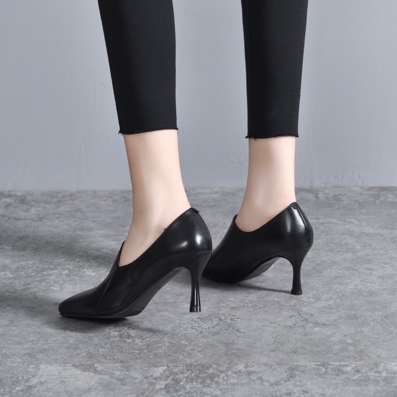 Giày da thật dành cho nữ, kiểu dáng cổ sâu ôm chân. Mũi giày nhọn thanh thoát kết hợp cùng gót nhọn vừa phải, tôn dáng người đi. Chất liệu da mềm mại, tạo cảm giác dễ chịu khi mang. Kiểu giày này dễ dàng phối cùng nhiều trang phục như quần âu, váy liền. Phù hợp sử dụng trong những dịp làm việc hay dạo phố. | Tên sản phẩm: Giày Cao Gót Nữ Chất Liệu Da Bò Mũi Nhọn Gót Nhọn Hàng Mùa Xuân Thu Đông - Giày Dép Nữ | Mã sản phẩm: D6867 - Giá: 1.350.000đ | Mã nhà sản xuất: TOREHU-G04Hình ảnh sản phẩm