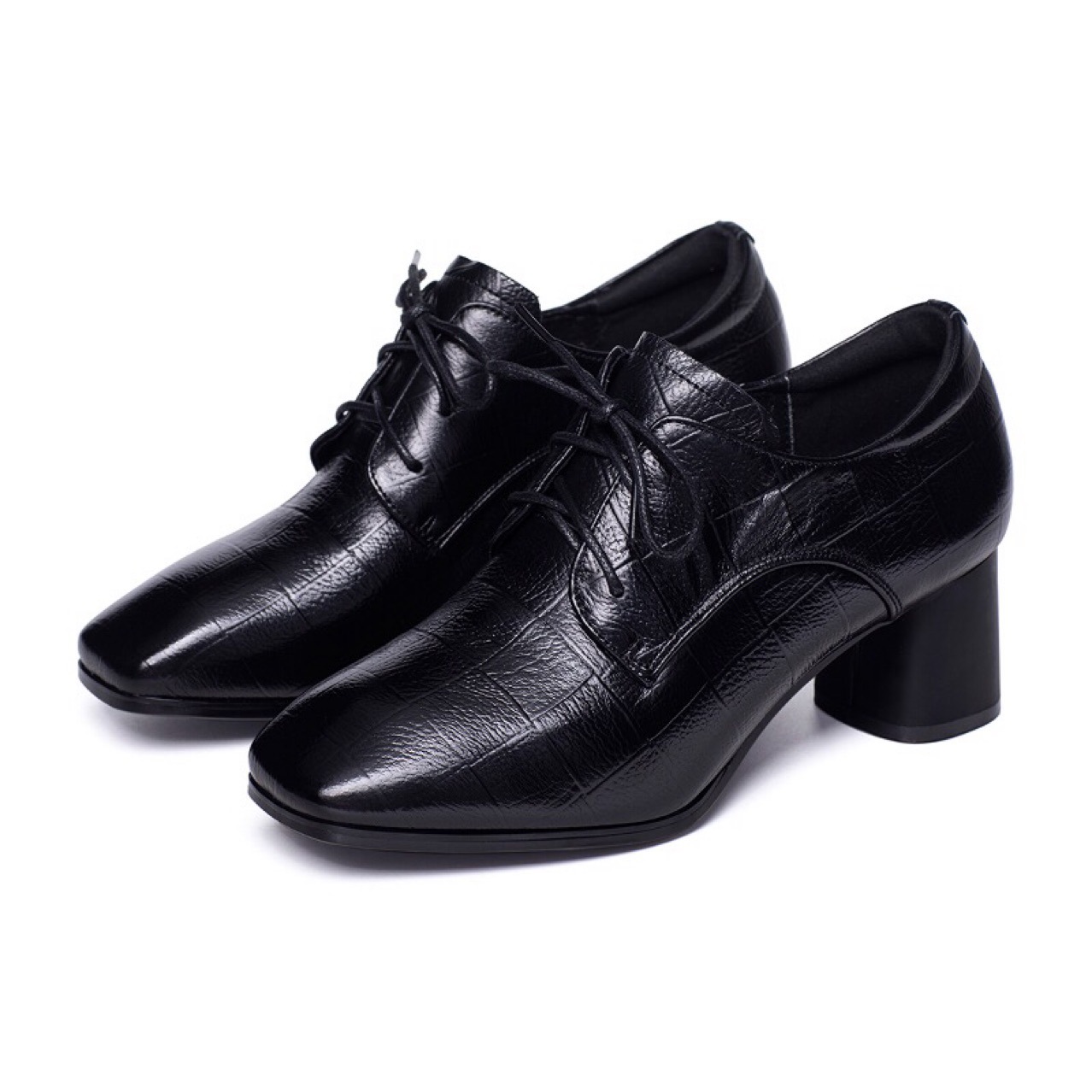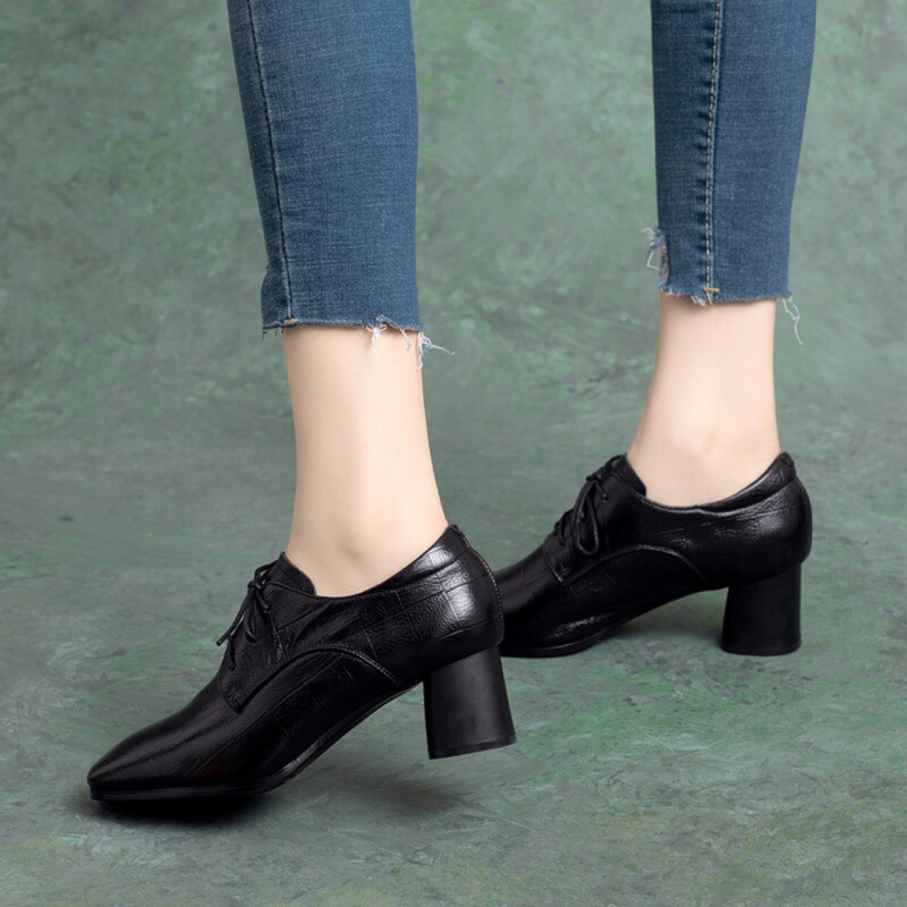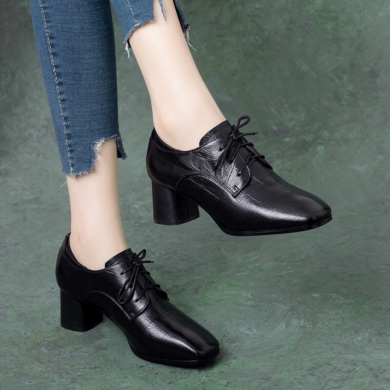 Giày búp bê nữ với thiết kế cổ sâu ôm chân, làm từ chất liệu da mềm mại. Mẫu giày có phần mũi vuông nhẹ nhàng, đi kèm qu cột nơ duyên dáng. Phần đế được thiết kế vừa phải, tạo dáng đứng và thoải mái khi di chuyển. Đây là kiểu giày dễ dàng phối cùng nhiều trang phục khác nhau như quần tây, váy liền hay jean. Bạn có thể sử dụng hằng ngày cho những dịp đi làm, đi chơi hoặc gặp mặt. | Tên sản phẩm: Giày Da Nữ Chất Liệu Da Bò Gót Vuông Hàng Mùa Xuân Thu Đông - Giày Dép Nữ | Mã sản phẩm: D6872 - Giá: 1.140.000đ | Mã nhà sản xuất: TOREHU-G04Hình ảnh sản phẩm