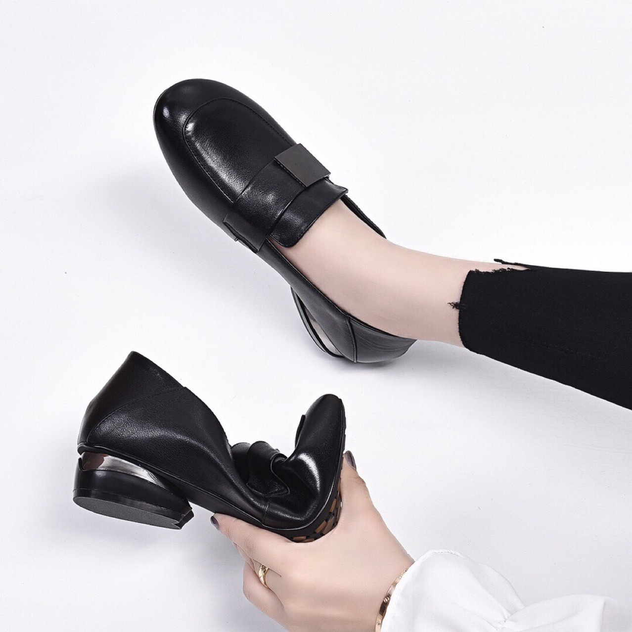 Giày da thật dành cho nữ, kiểu dáng đơn giản và thanh lịch. Chất da mềm mại, ôm chân nhẹ nhàng, mang lại cảm giác dễ chịu suốt ngày dài. Đế giày bằng phẳng kết hợp gót thấp vững chãi, giúp mỗi bước đi đều thoải mái và tự tin. Thiết kế nhỏ gọn phù hợp cho những lúc di chuyển nhẹ nhàng hoặc lái xe. Dễ dàng phối cùng nhiều loại trang phục khác nhau, từ quần jeans đến váy liền. | Tên sản phẩm: Giày Da Nữ Chất Liệu Da Bò Gót Vuông Hàng Mùa Xuân Thu Đông - Giày Dép Nữ | Mã sản phẩm: D6874 - Giá: 1.250.000đ | Mã nhà sản xuất: TOREHU-G04Hình ảnh sản phẩm