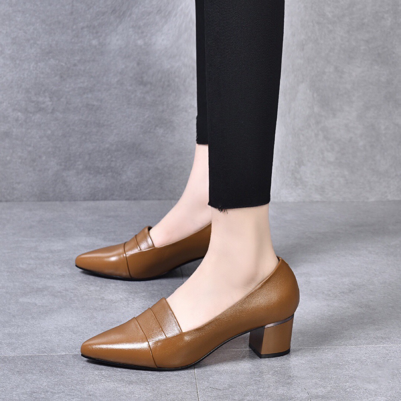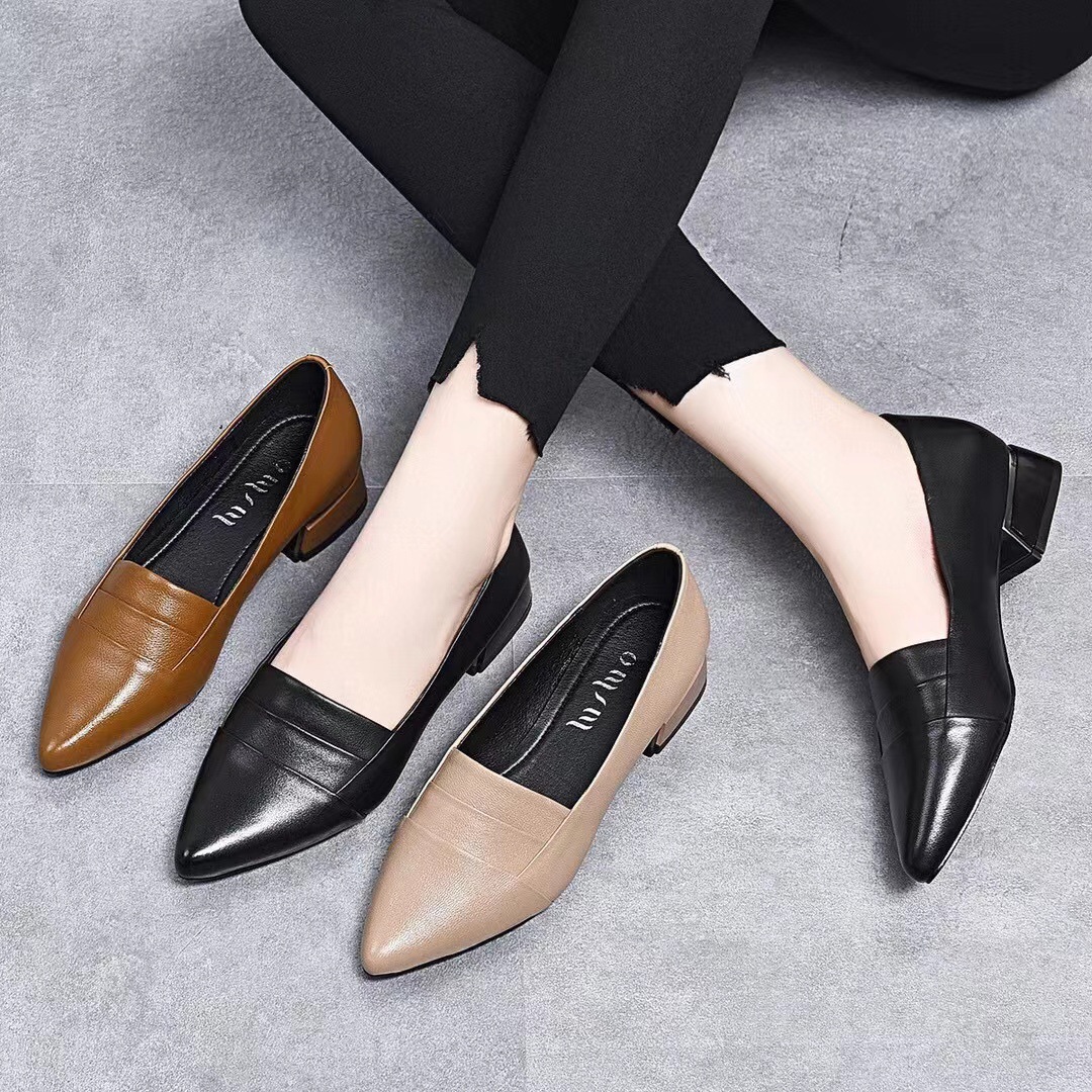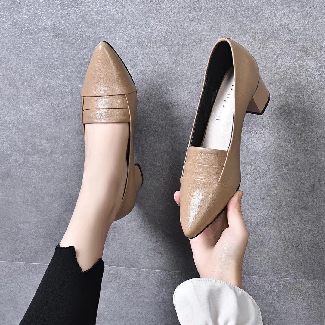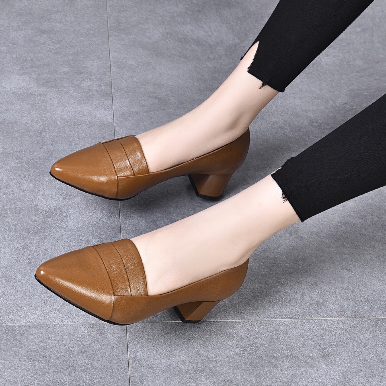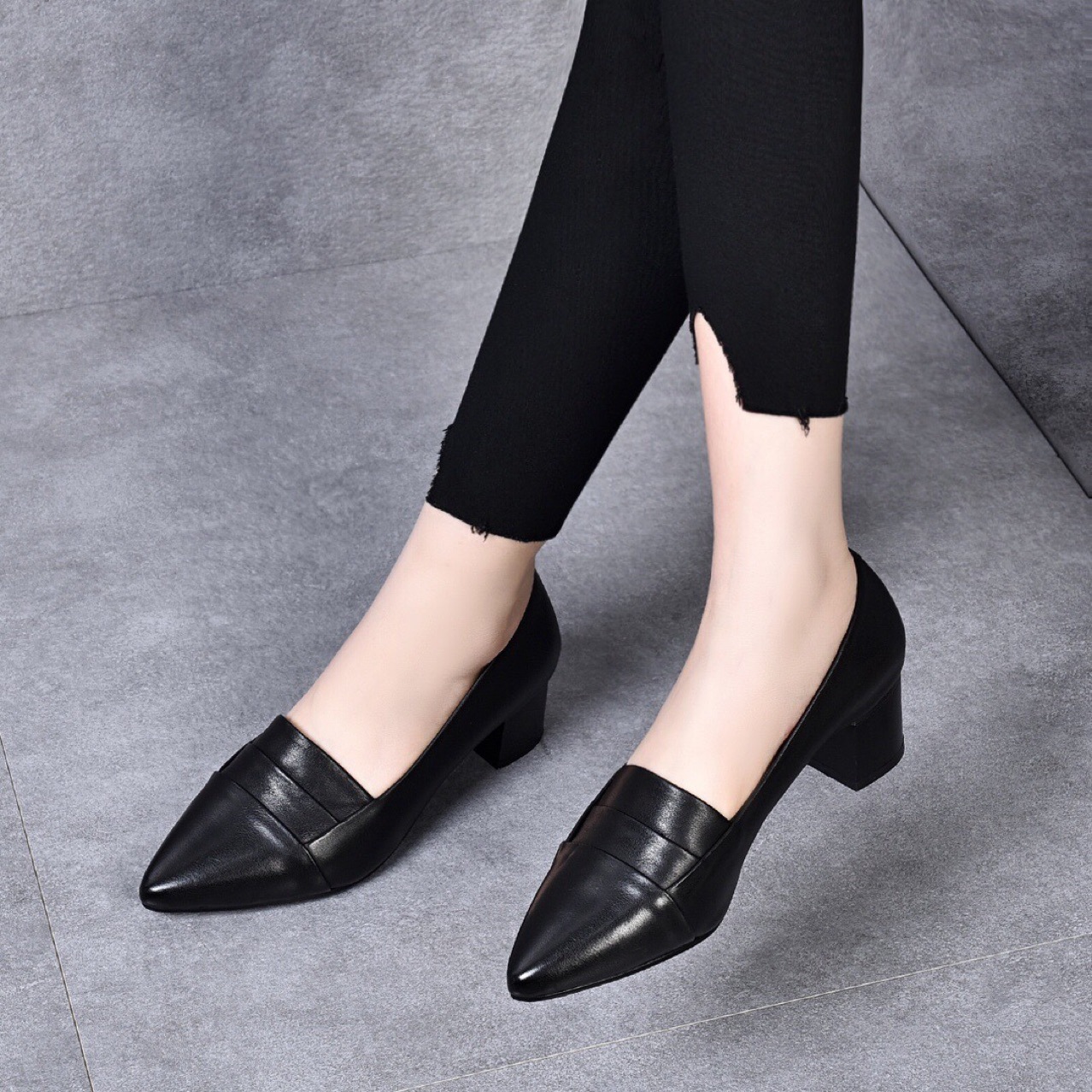 Giày dép nữ thiết kế cổ sâu, ôm gọn bàn chân với phần mũi nhọn thanh lịch. Sản phẩm làm từ chất liệu da bò mềm mại, đế thấp vững chãi giúp bạn di chuyển thoải mái cả ngày. Kiểu dáng dễ kết hợp với nhiều trang phục như quần âu, váy liền. Bạn chỉ cần xỏ chân vào là có ngay vẻ ngoài gọn gàng, năng động cho những buổi gặp mặt thường ngày. | Tên sản phẩm: Giày Cao Gót Nữ Chất Liệu Da Bò Mũi Nhọn Gót Vuông Hàng Mùa Xuân Thu Đông - Giày Dép Nữ | Mã sản phẩm: D6876 - Giá: 1.400.000đ | Mã nhà sản xuất: TOREHU-G04Hình ảnh sản phẩm