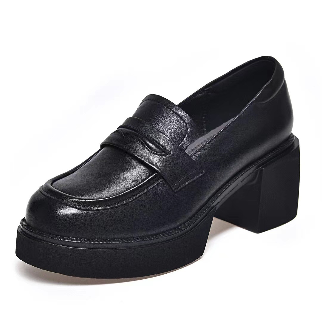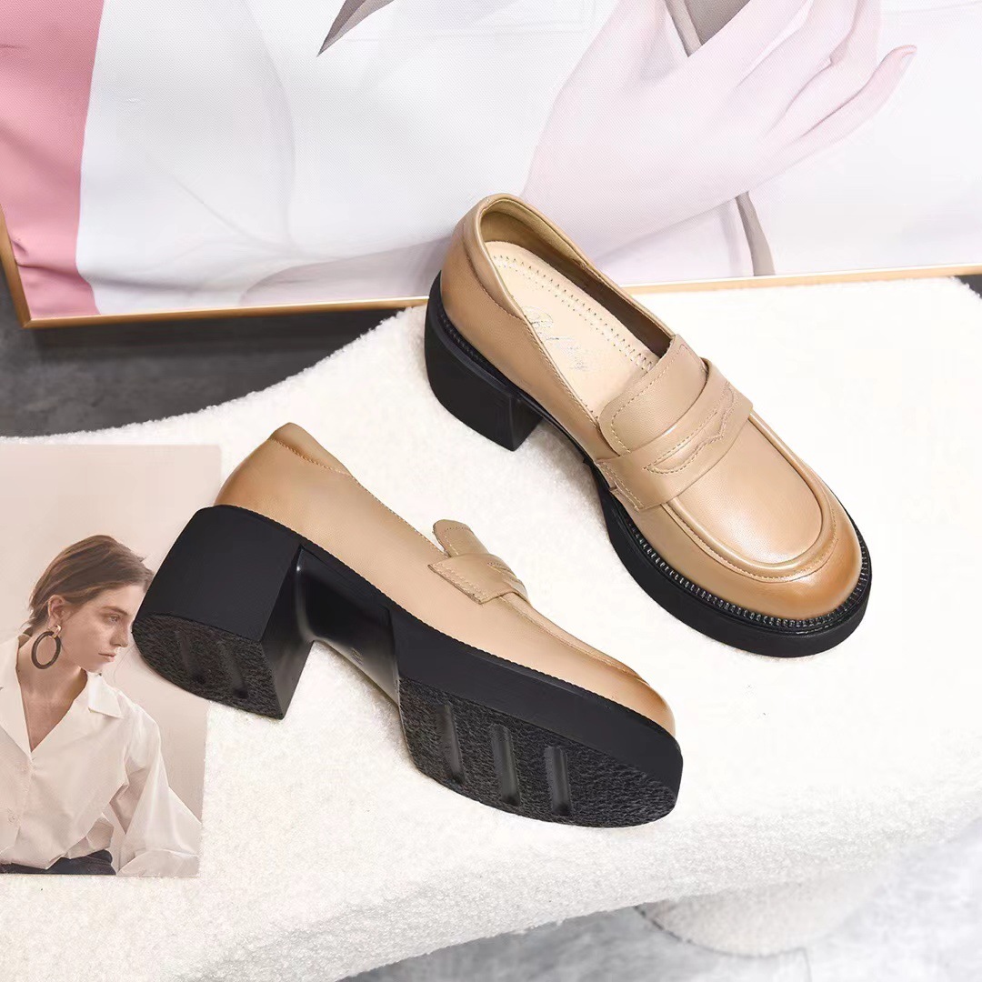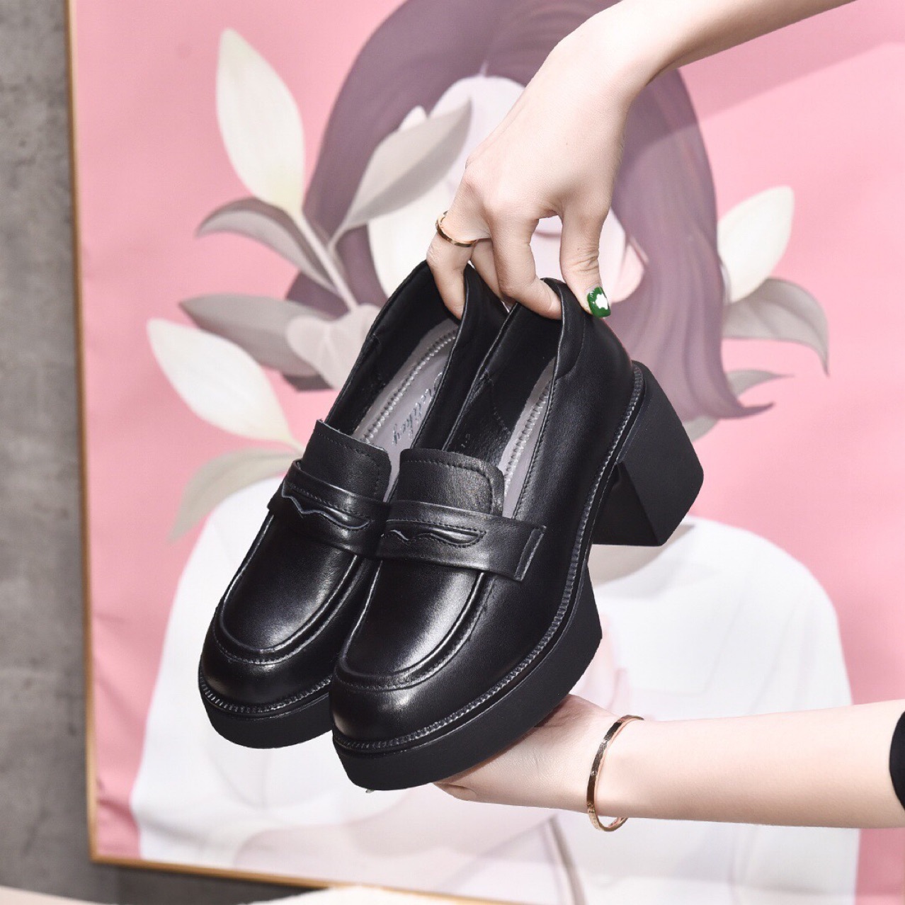 Giày Tây thiết kế theo phong cách Anh cổ điển dành cho nữ. Sản phẩm có đế dày vừa phải và phần gót thấp chắc chắn, tạo dáng đứng và thoải mái. Đây là kiểu giày dễ mang, chỉ cần xỏ chân vào là xong, rất tiện lợi cho những ngày bận rộn. Bạn có thể phối hợp với nhiều trang phục khác nhau như quần âu, váy hay jean để tạo điểm nhấn năng động và lịch sự. | Tên sản phẩm: Giày Cao Gót Nữ Chất Liệu Da Bò Gót Vuông Đế Cao Hàng Mùa Xuân Thu Đông - Giày Dép Nữ | Mã sản phẩm: D6878 - Giá: 1.540.000đ | Mã nhà sản xuất: TOREHU-G04Hình ảnh sản phẩm