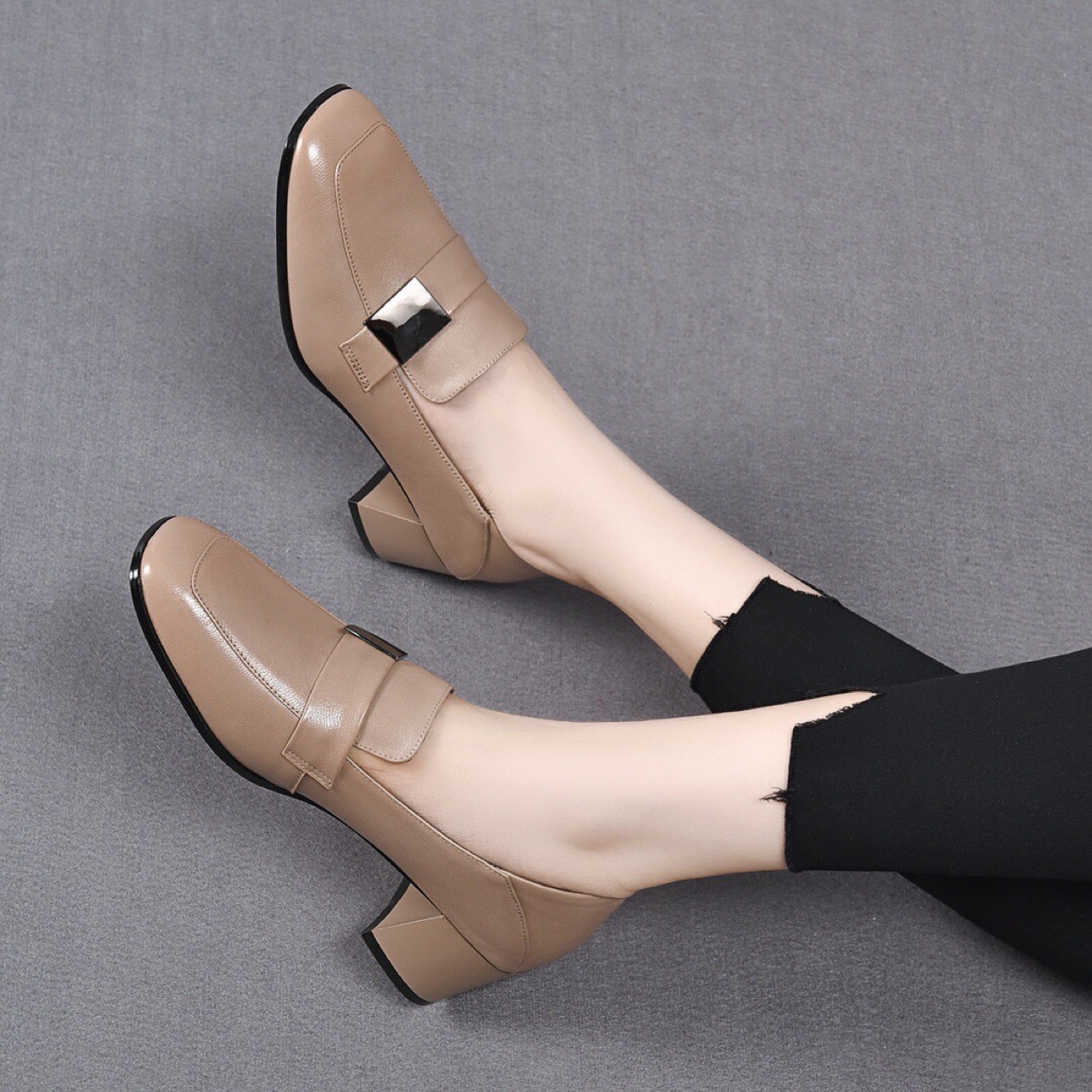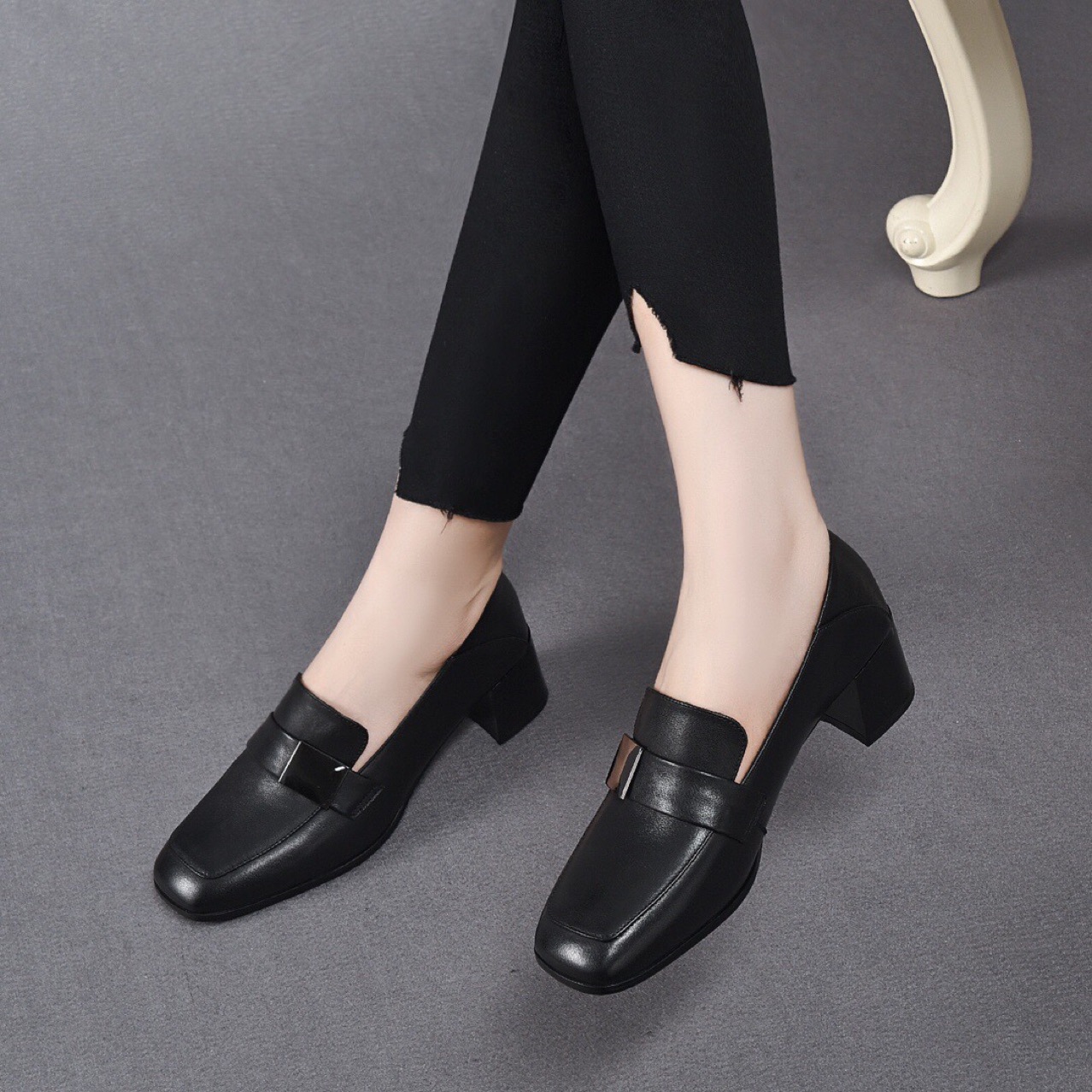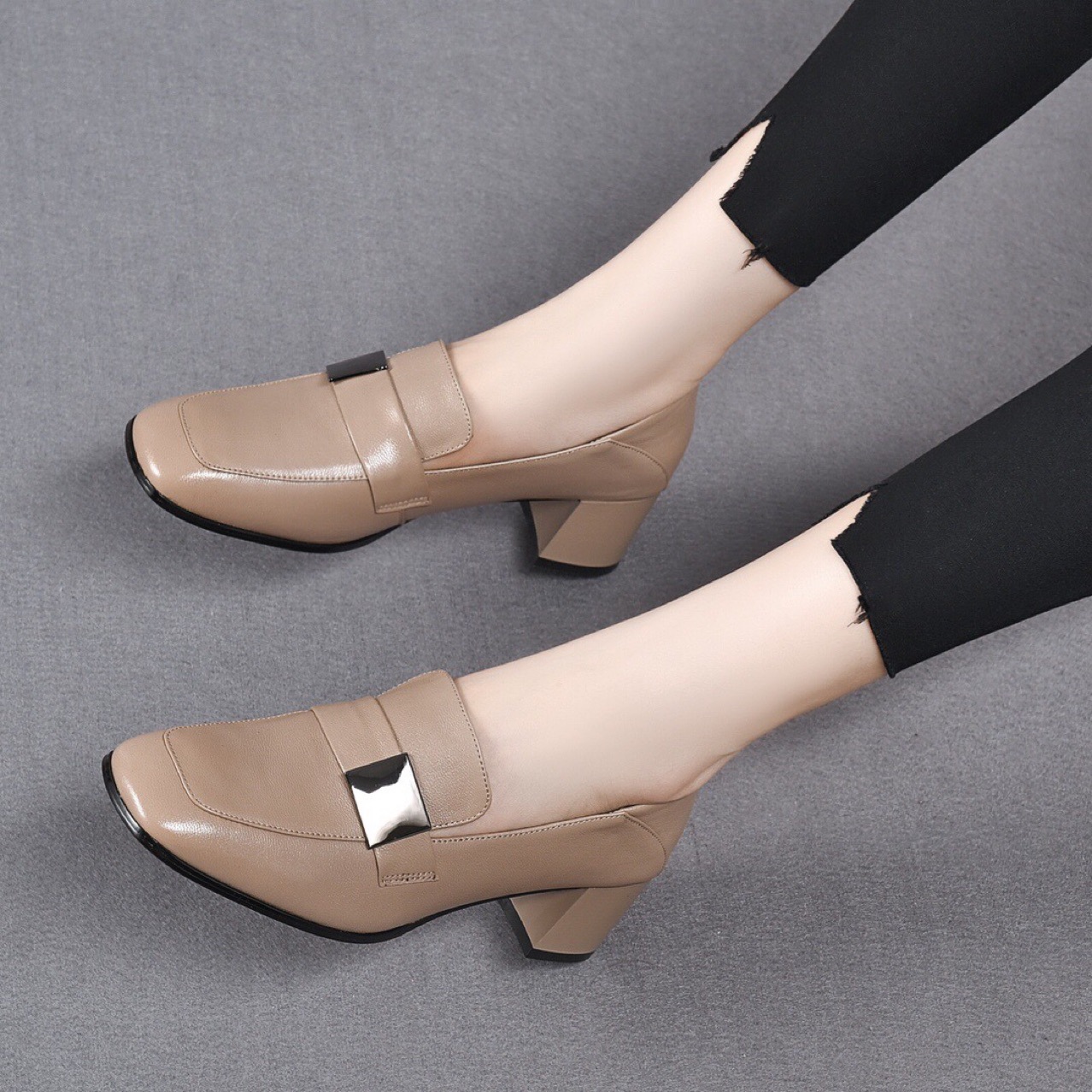 Giày da nữ thiết kế kiểu dáng ôm chân với phần mũi vuông tinh tế. Điểm nhấn là khóa vuông kim loại phía trước, tạo nét cá tính mạnh mẽ. Sản phẩm có phần đế thấp vững chãi, giúp bạn di chuyển thoải mái cả ngày. Kiểu dáng mang phong cách châu Âu hiện đại, dễ dàng phối cùng nhiều trang phục như quần âu, váy liền. Sử dụng hàng ngày, phù hợp cho cả công sở và những dịp gặp mặt thông thường. | Tên sản phẩm: Giày Cao Gót Nữ Gót Vuông Hàng Mùa Xuân Thu Đông Phong Cách Âu Mỹ - Giày Dép Nữ | Mã sản phẩm: D6886 - Giá: 1.390.000đ | Mã nhà sản xuất: TOREHU-G04Hình ảnh sản phẩm