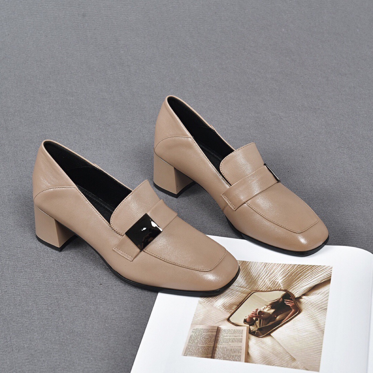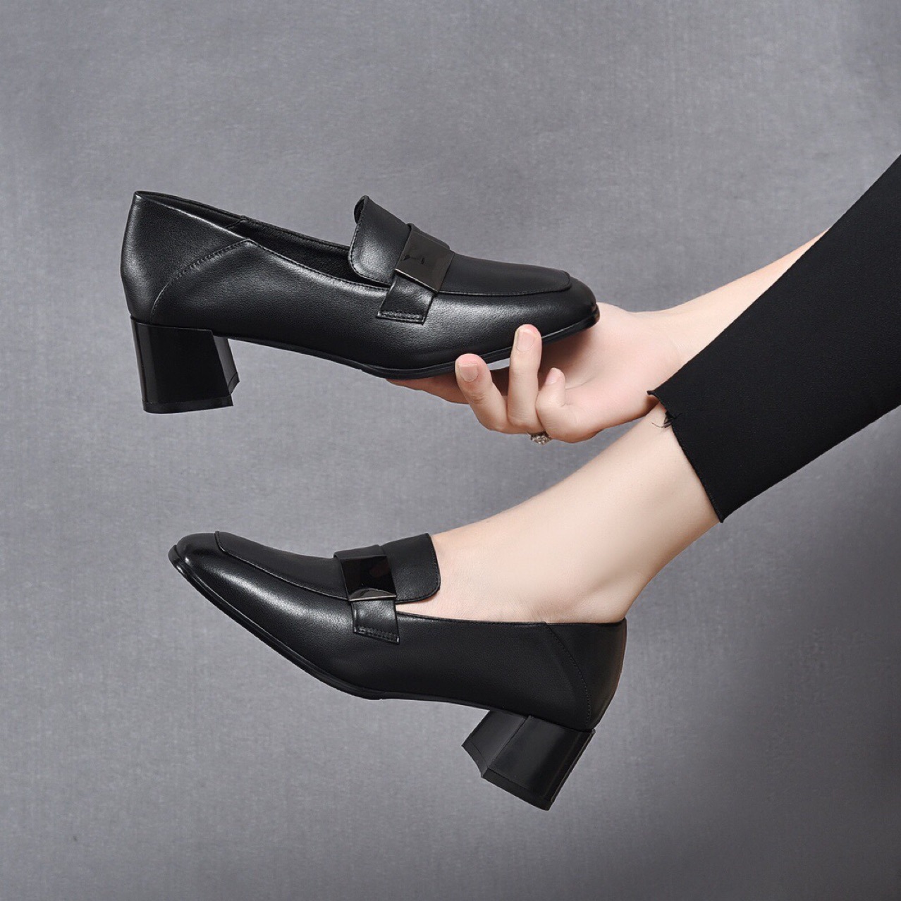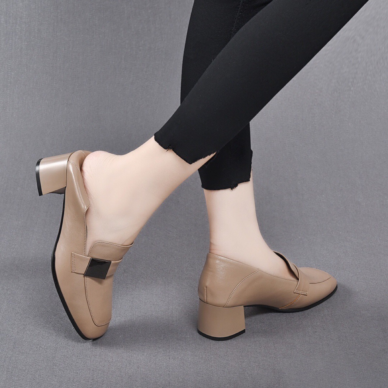Giày da nữ thiết kế kiểu dáng ôm chân với phần mũi vuông tinh tế. Điểm nhấn là khóa vuông kim loại phía trước, tạo nét cá tính mạnh mẽ. Sản phẩm có phần đế thấp vững chãi, giúp bạn di chuyển thoải mái cả ngày. Kiểu dáng mang phong cách châu Âu hiện đại, dễ dàng phối cùng nhiều trang phục như quần âu, váy liền. Sử dụng hàng ngày, phù hợp cho cả công sở và những dịp gặp mặt thông thường. | Tên sản phẩm: Giày Cao Gót Nữ Gót Vuông Hàng Mùa Xuân Thu Đông Phong Cách Âu Mỹ - Giày Dép Nữ | Mã sản phẩm: D6886 - Giá: 1.390.000đ | Mã nhà sản xuất: TOREHU-G04Hình ảnh sản phẩm