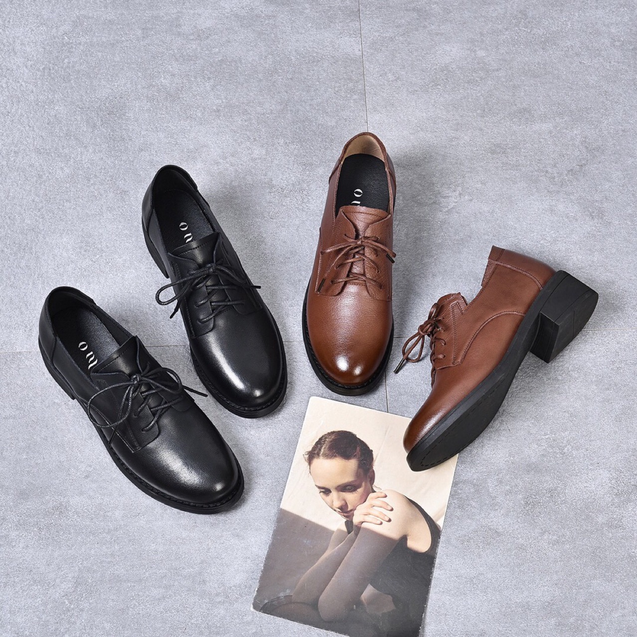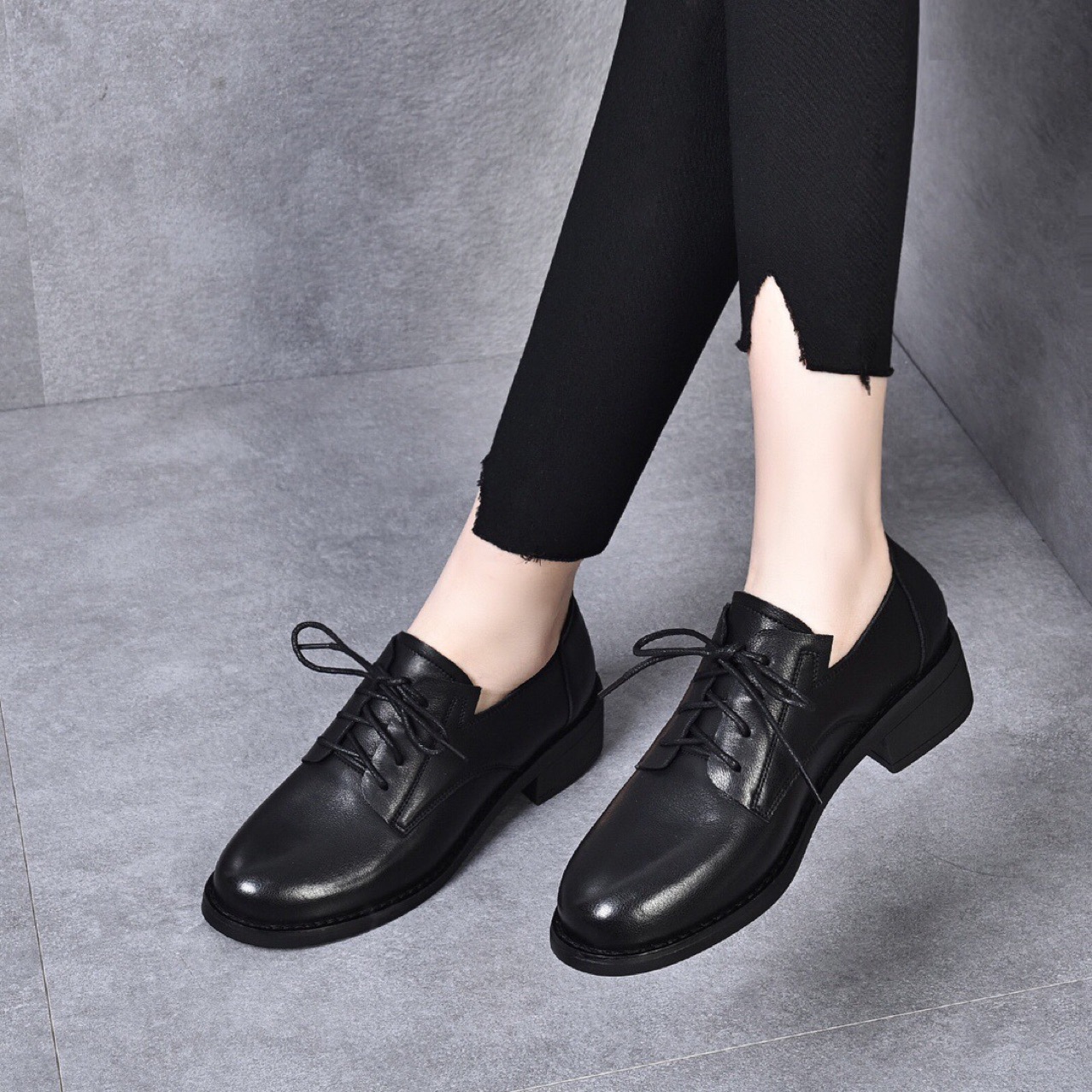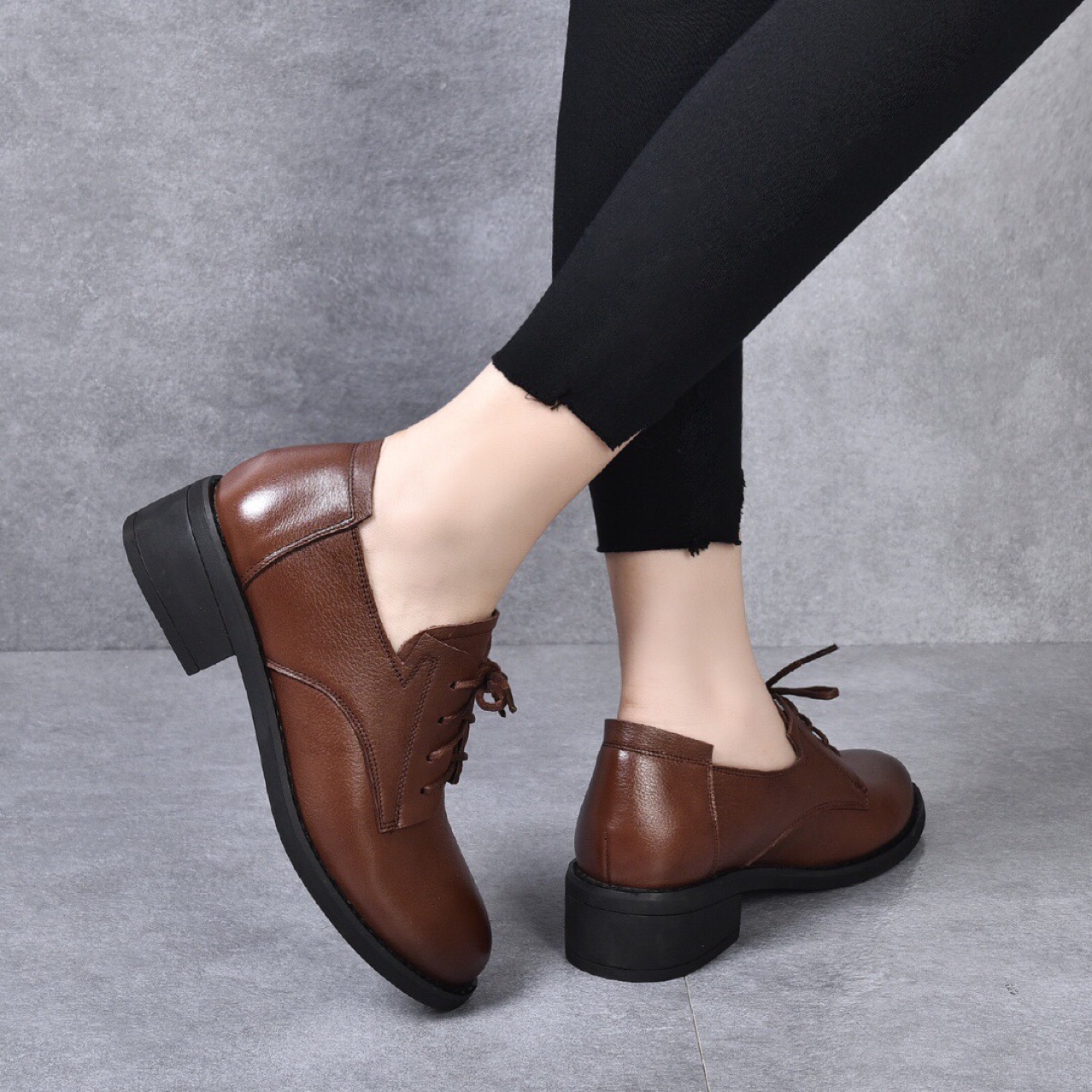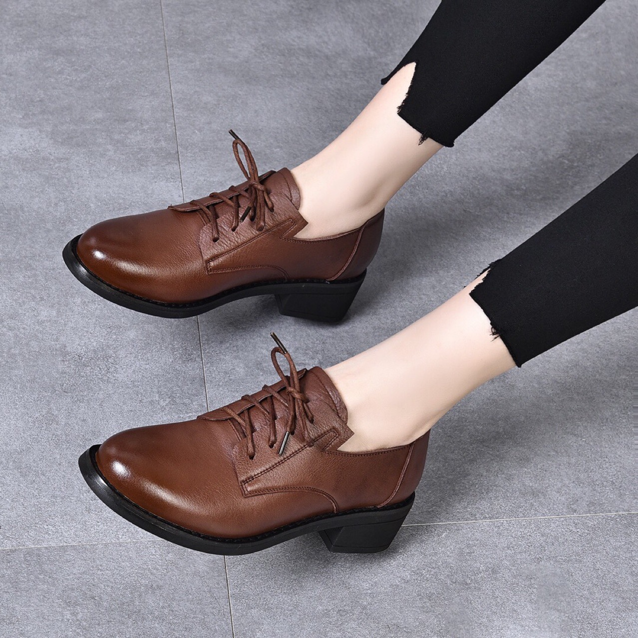 Đôi giày da mềm này mang phong cách cổ điển, rất phù hợp cho các bạn nữ đến trường hoặc đi làm. Kiểu dáng có dây buộc và phần gót thấp vững chắc, giúp bạn di chuyển thoải mái cả ngày. Màu đen dễ dàng kết hợp với nhiều trang phục khác nhau như quần âu, váy hay jean. Chỉ cần mặc vào và buộc dây là bạn đã có một vẻ ngoài gọn gàng, năng động. | Tên sản phẩm: Giày Da Nữ Gót Vuông Hàng Mùa Xuân Thu Đông - Giày Dép Nữ | Mã sản phẩm: D6894 - Giá: 1.300.000đ | Mã nhà sản xuất: TOREHU-G04Hình ảnh sản phẩm