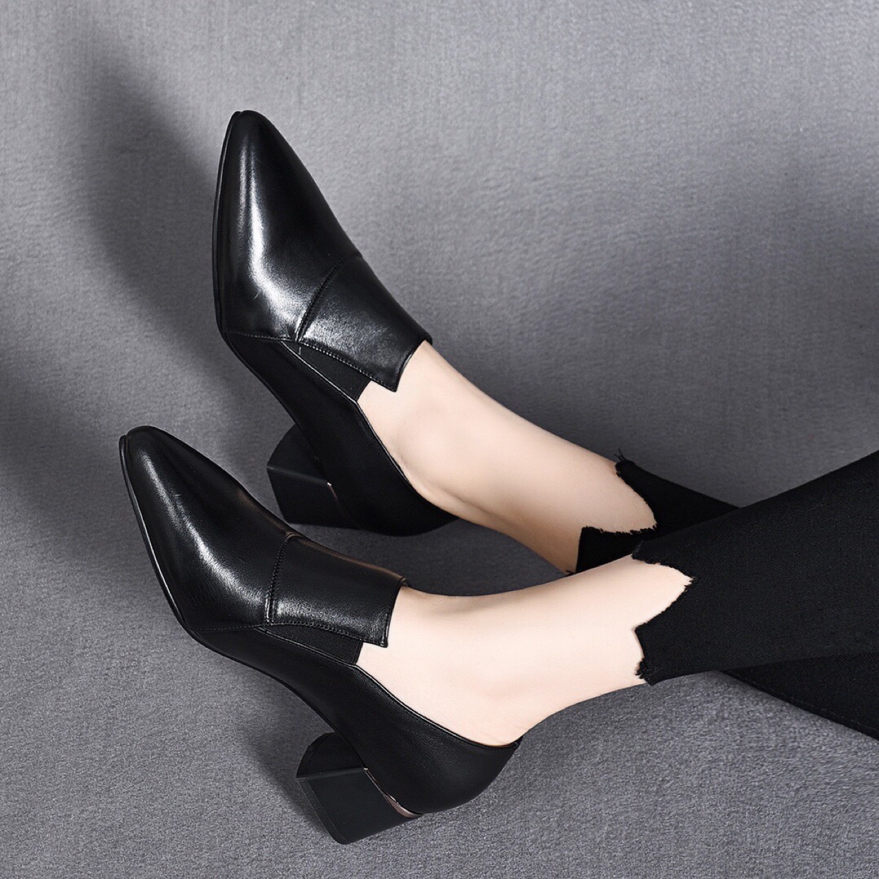 Đôi giày da thật dành cho nữ, kiểu dáng cổ sâu và gót thấp chắc chắn. Mẫu giày có phong cách đơn giản, dễ dàng kết hợp với nhiều trang phục khác nhau như quần âu, chân váy hay quần jeans. Sản phẩm thích hợp cho những dịp đi làm, gặp gỡ bạn bè hoặc dạo phố. Bạn chỉ cần xỏ chân vào và cài khóa phía sau là đã có ngay vẻ ngoài chỉn chu, thoải mái để tự tin bước đi cả ngày. | Tên sản phẩm: Giày Cao Gót Nữ Chất Liệu Da Bò Gót Vuông Hàng Mùa Xuân Thu Đông - Giày Dép Nữ | Mã sản phẩm: D6925 - Giá: 1.350.000đ | Mã nhà sản xuất: TOREHU-G04Hình ảnh sản phẩm