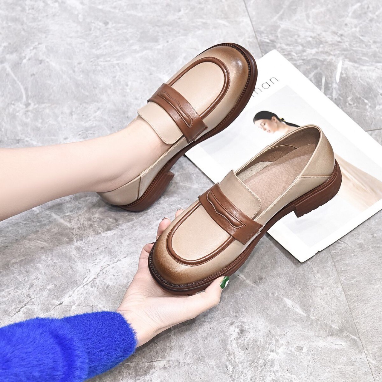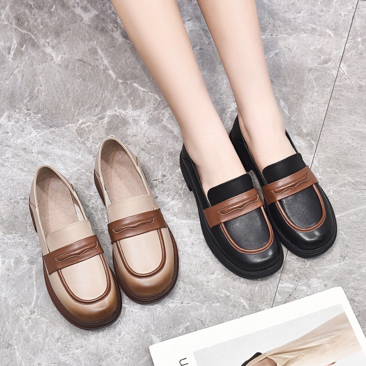 Đôi giày da mềm dành cho nữ, kiểu dáng cổ điển phù hợp cho mùa thu. Mẫu giày bệt đế thấp ôm chân, mang đến sự thoải mái khi di chuyển cả ngày. Thiết kế không dây kèm đệm khí dưới lòng giúp bước chân nhẹ nhàng. Dễ dàng phối cùng nhiều trang phục như quần âu, váy hay jeans. Sử dụng hàng ngày, lau bề mặt bằng vải mềm để giữ giày sạch sẽ. | Tên sản phẩm: Giày Da Nữ Hàng Mùa Xuân Thu Đông - Giày Dép Nữ | Mã sản phẩm: D6926 - Giá: 1.390.000đ | Mã nhà sản xuất: TOREHU-G04Hình ảnh sản phẩm