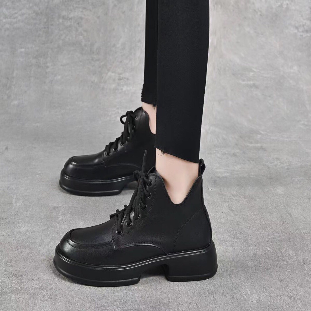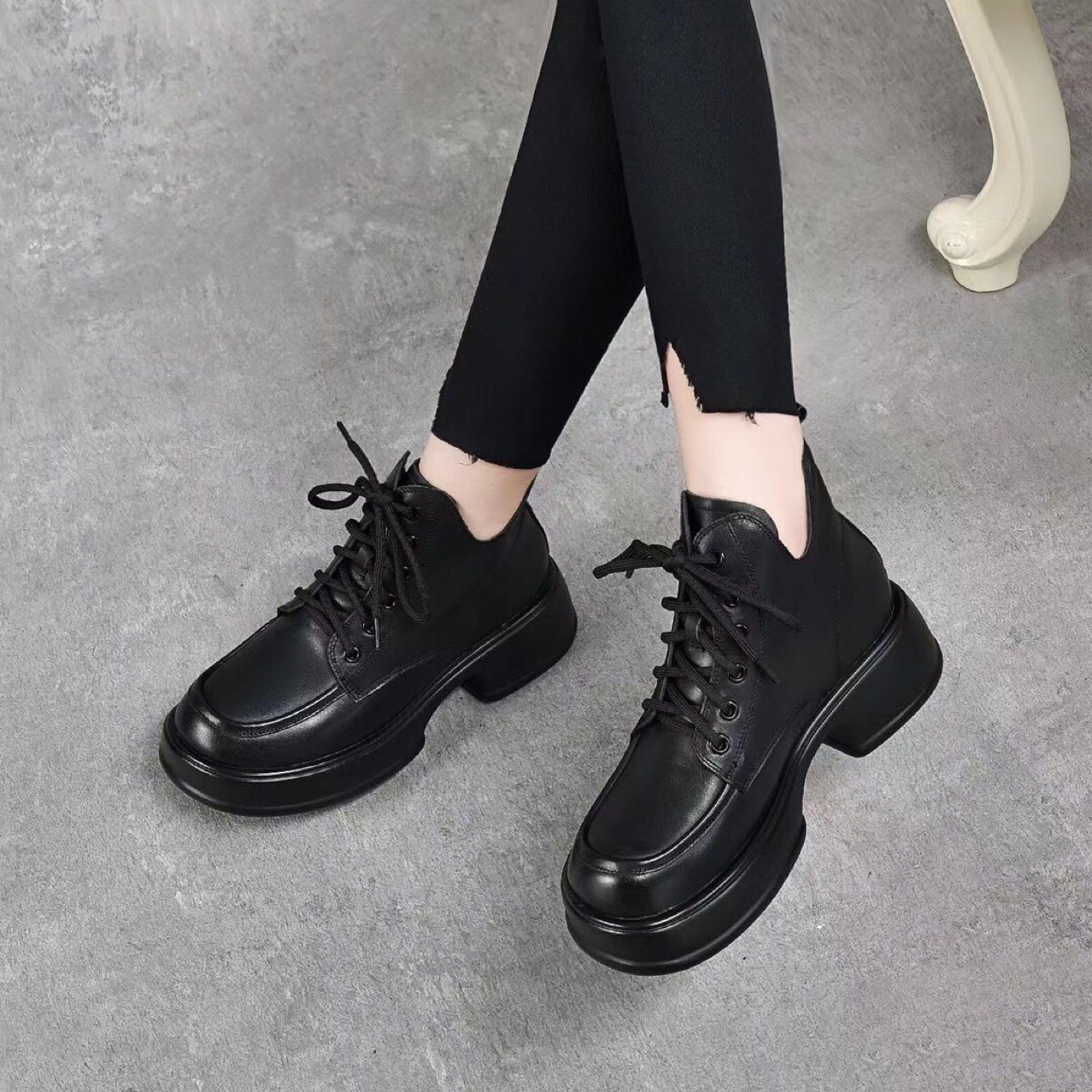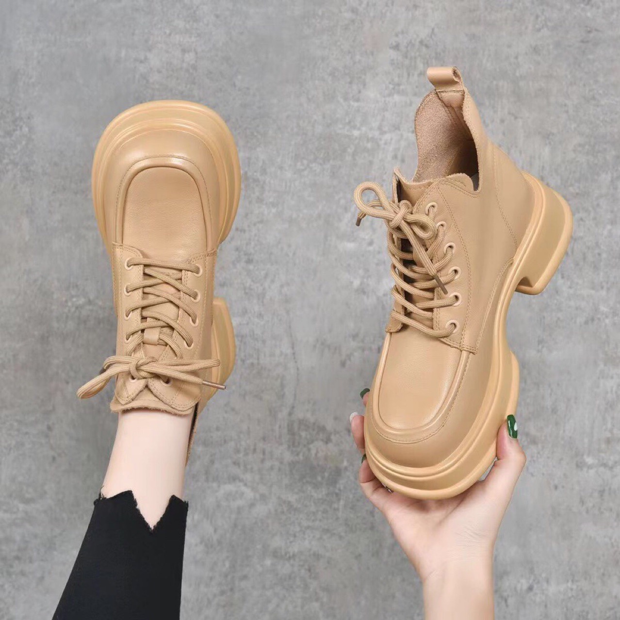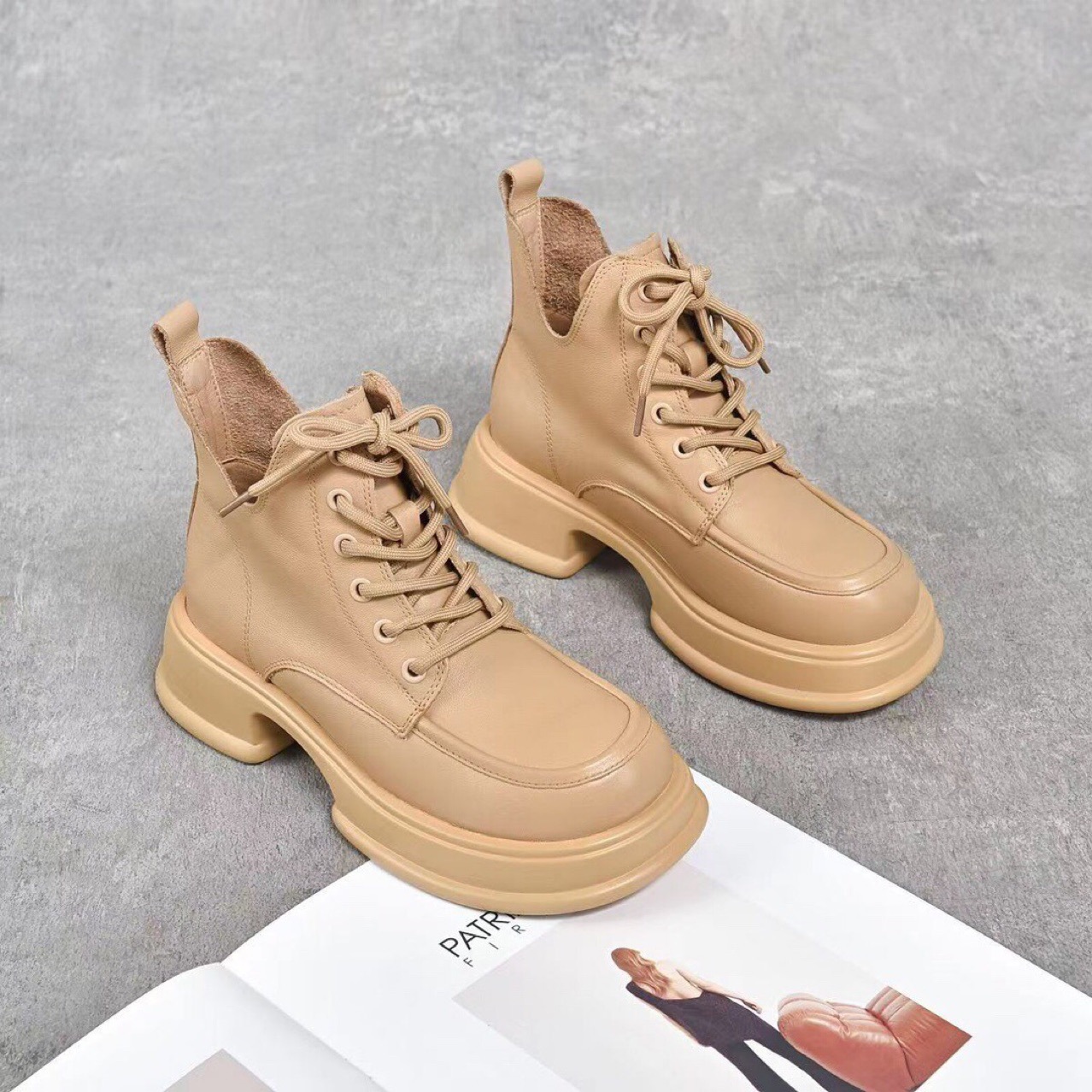 Đôi bốt cổ thấp này mang phong cách thiết kế cổ điển từ châu Âu. Sản phẩm được làm từ chất liệu da thật tự nhiên, tạo nên những đường nét và màu sắc đẹp mắt. Phần mũi giày vuông và đế thấp vững chãi giúp nâng đỡ bàn chân tốt, mang lại sự thoải mái khi di chuyển cả ngày. Bạn có thể dễ dàng phối cùng quần jeans hay váy để tạo điểm nhấn nổi bật cho trang phục hằng ngày. | Tên sản phẩm: Giày Cao Gót Nữ Chất Liệu Da Bò Gót Vuông Hàng Mùa Xuân Thu Đông - Giày Dép Nữ | Mã sản phẩm: D6929 - Giá: 1.640.000đ | Mã nhà sản xuất: TOREHU-G05Hình ảnh sản phẩm