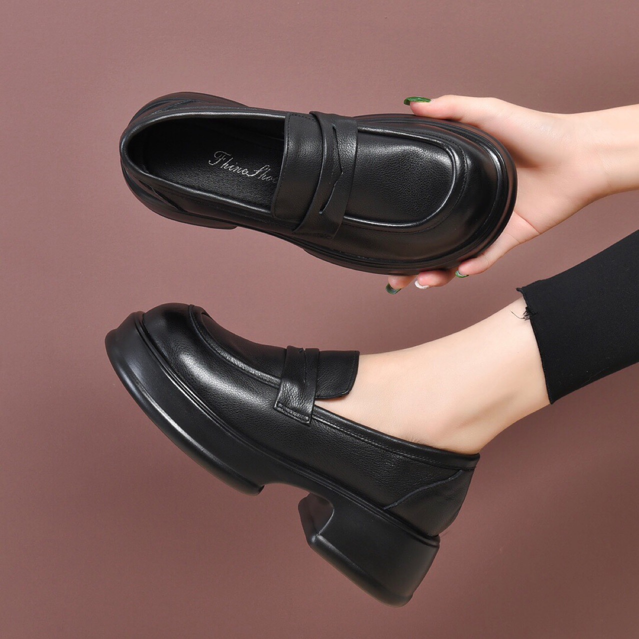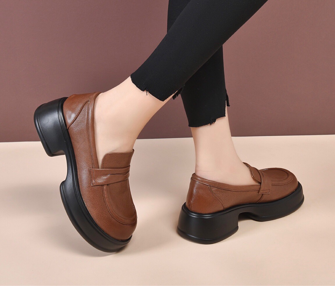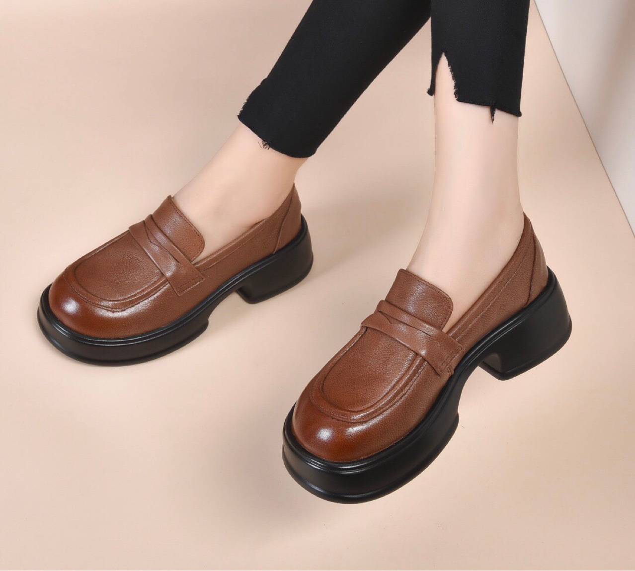 Giày Lười thiết kế đế dày vừa phải, mang phong cách cổ điển châu Âu. Sản phẩm được làm từ chất liệu da mềm mại, tạo cảm giác dễ chịu khi mang. Kiểu dáng không cần buộc dây, rất thuận tiện để đi vào mỗi ngày. Bạn có thể phối hợp với nhiều loại trang phục khác nhau như quần jeans hay váy. Đôi giày phù hợp để sử dụng trong những ngày tiết trời mát mẻ. | Tên sản phẩm: Giày Da Nữ Chất Liệu Da Bò Đế Cao Hàng Mùa Xuân Thu Đông - Giày Dép Nữ | Mã sản phẩm: D6938 - Giá: 1.390.000đ | Mã nhà sản xuất: TOREHU-G04Hình ảnh sản phẩm