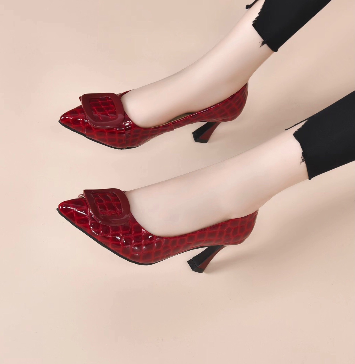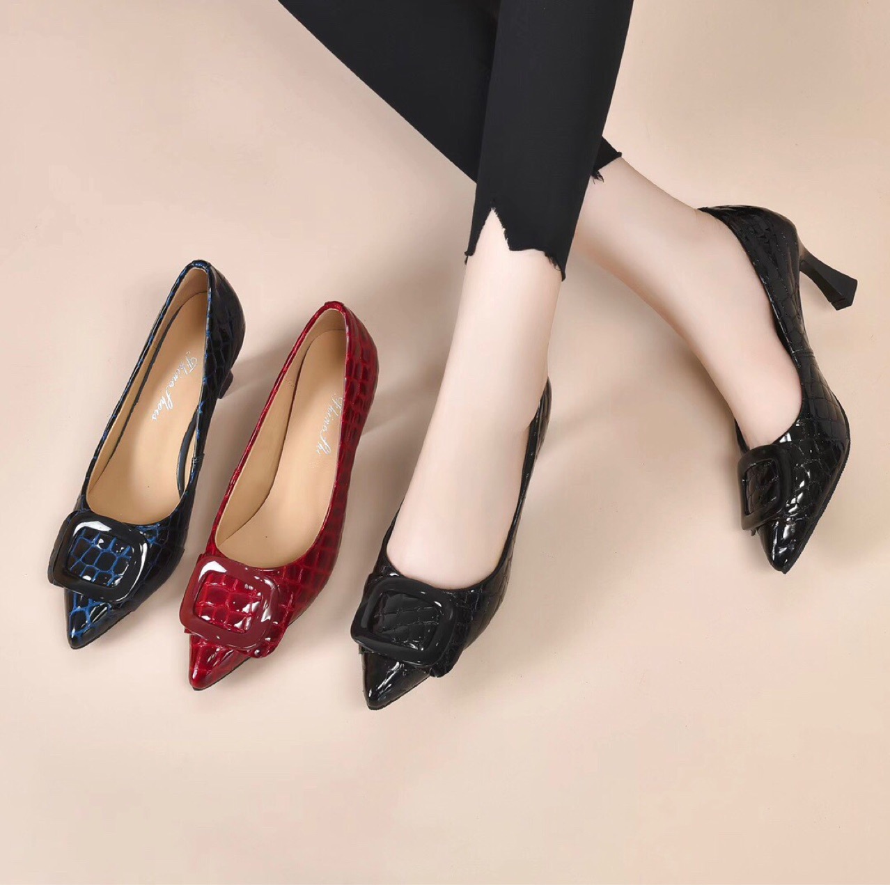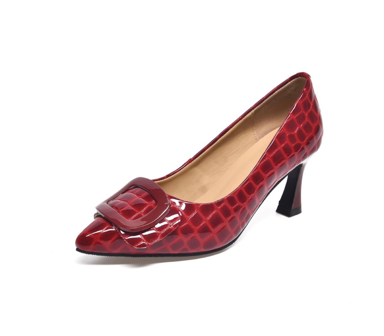 Giày dành cho nữ với phần gót thấp vững chãi, kiểu dáng mũi nhọn thanh lịch. Mẫu giày này có cổ thấp, ôm vừa vặn bàn chân, tạo nên vẻ đẹp nhẹ nhàng. Chất liệu bề mặt bóng mịn, có màu đỏ thẫm rất phù hợp để dùng trong các dịp cần trang phục lịch sự. Cách dùng rất đơn giản, bạn chỉ cần xỏ chân vào và cài qu gót nếu có. Đôi giày mang lại sự thoải mái khi di chuyển cả ngày. | Tên sản phẩm: Giày Cao Gót Nữ Mũi Nhọn Gót Vuông Hàng Mùa Xuân Thu Đông Dùng Trong Lễ Cưới - Giày Dép Nữ | Mã sản phẩm: D6940 - Giá: 1.350.000đ | Mã nhà sản xuất: TOREHU-G04Hình ảnh sản phẩm