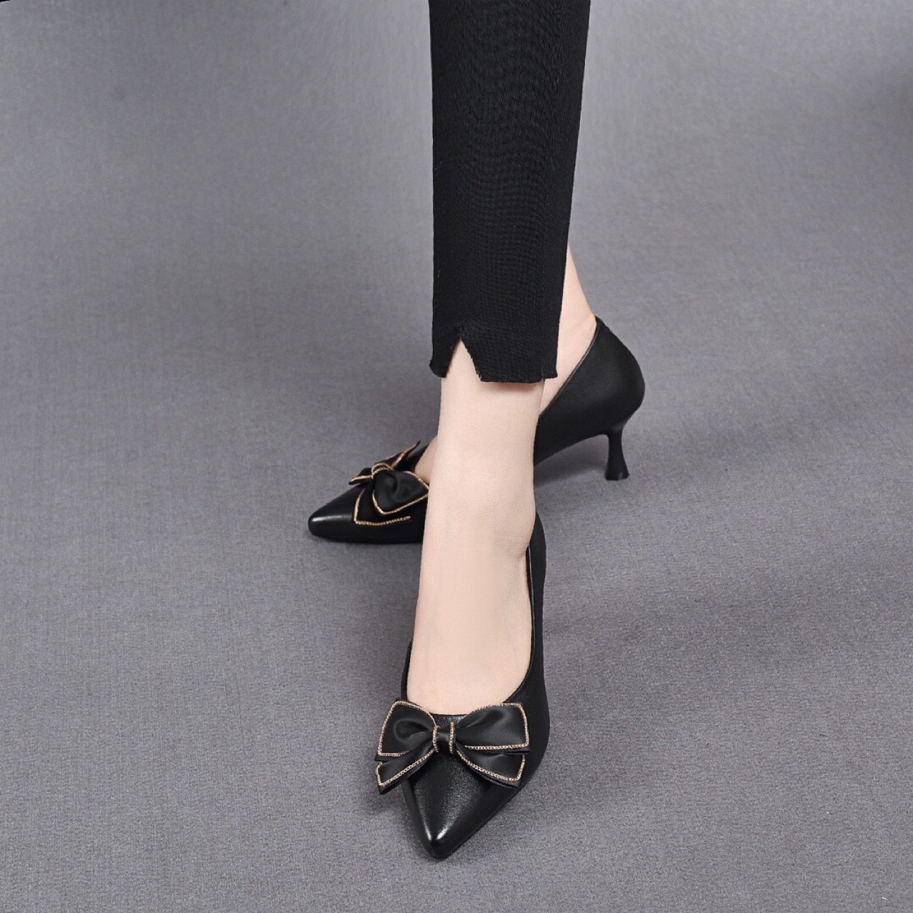 Đôi giàu này có phần mũi nhọn thanh lịch, kết hợp nơ trang trí làm từ chất liệu da thật tạo điểm nhấn duyên dáng. Kiểu dáng cổ thấp ôm gọn bàn chân, phối cùng gót nhọn vừa phải giúp tôn dáng. Sản phẩm dễ dàng phối với nhiều trang phục như quần âu hay váy liền. Chỉ cần xỏ chân vào và điều chỉnh dây nơ cho vừa vặn là bạn đã có ngay vẻ ngoài ưa nhìn. | Tên sản phẩm: Giày Cao Gót Nữ Chất Liệu Da Bò Thắt Nơ Bướm Mũi Nhọn Gót Nhọn Hàng Mùa Xuân Thu Đông - Giày Dép Nữ | Mã sản phẩm: D6941 - Giá: 1.300.000đ | Mã nhà sản xuất: TOREHU-G04Hình ảnh sản phẩm