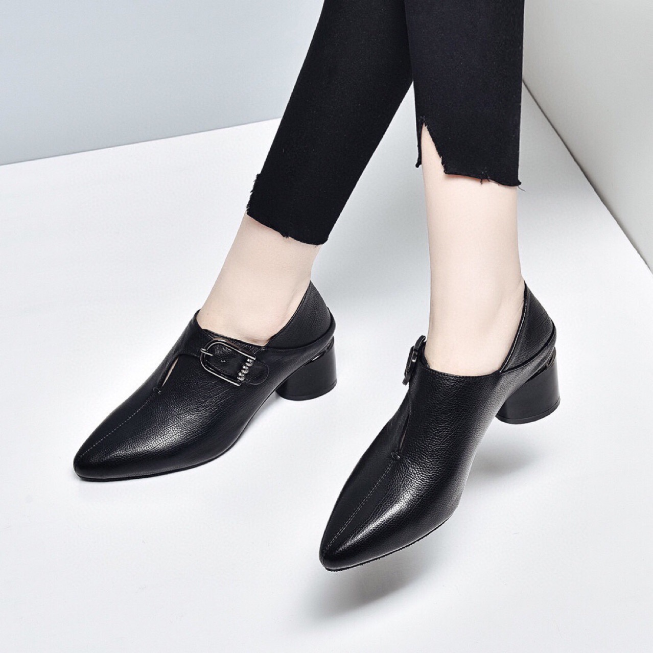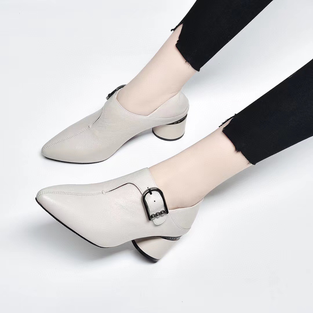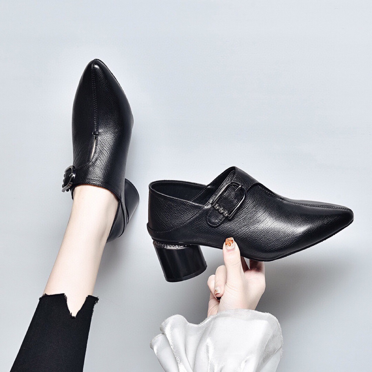 Giày dành cho nữ, kiểu dáng mũi nhọn và cổ sâu ôm chân. Sản phẩm có phần gót thấp vừa phải, chắc chắn, giúp nâng đỡ bàn chân một cách thoải mái trong suốt thời gian dài sử dụng. Chất liệu chính từ da mềm mại, tạo cảm giác dễ chịu. Bạn có thể dễ dàng phối hợp với nhiều trang phục như quần tây, váy liền để đi làm hoặc dạo phố. | Tên sản phẩm: Giày Cao Gót Nữ Chất Liệu Da Bò Mũi Nhọn Gót Vuông Hàng Mùa Xuân Thu Đông - Giày Dép Nữ | Mã sản phẩm: D6946 - Giá: 1.490.000đ | Mã nhà sản xuất: TOREHU-G04Hình ảnh sản phẩm