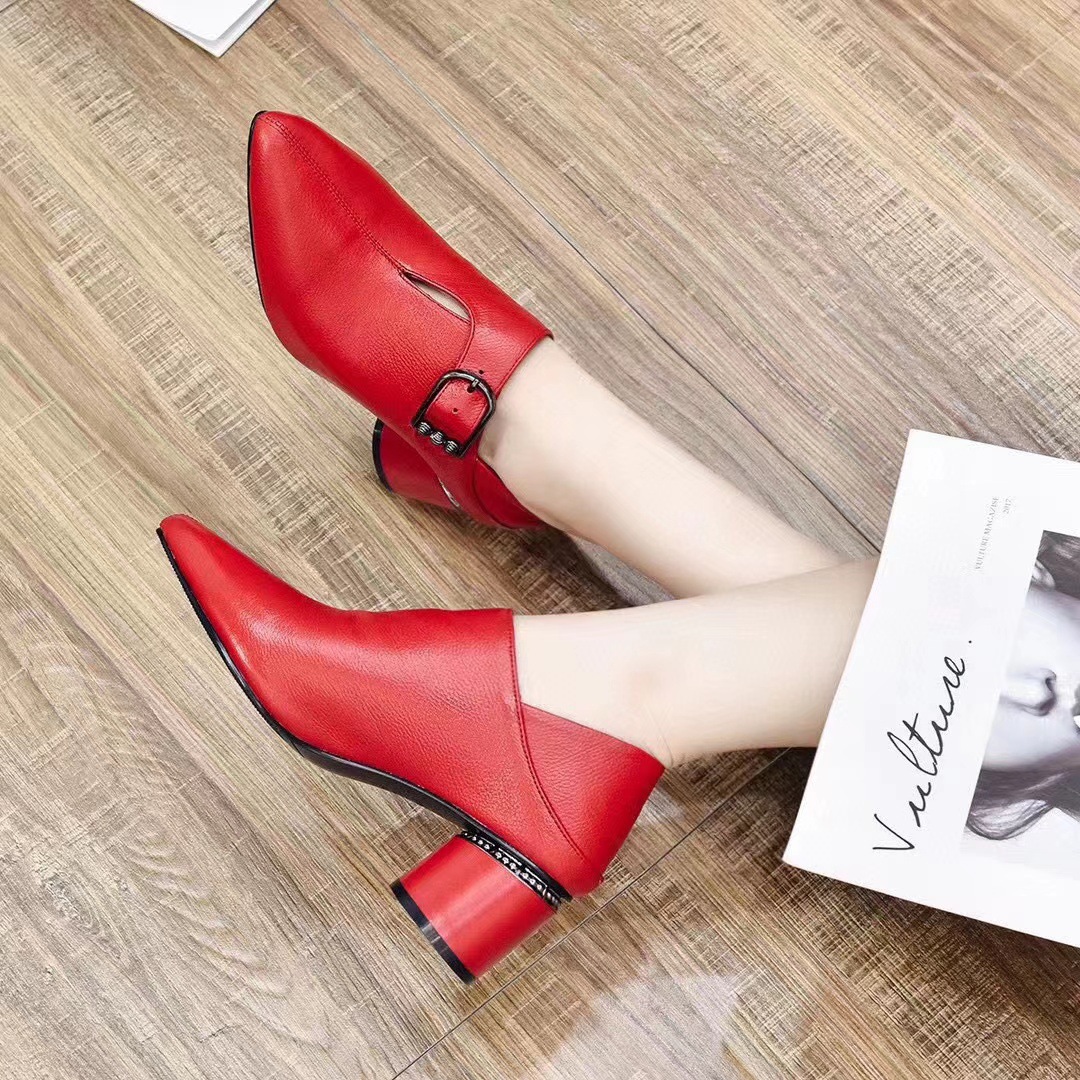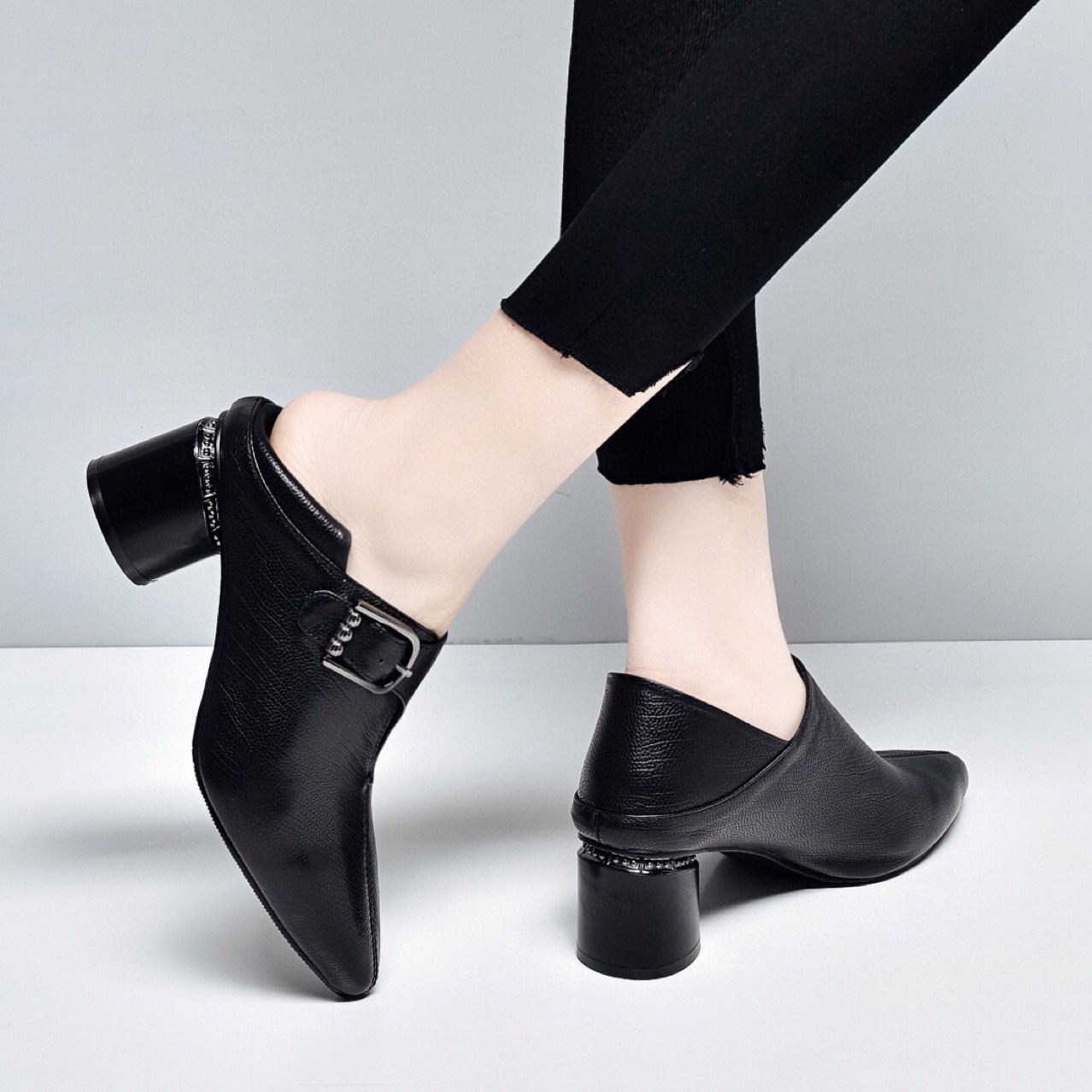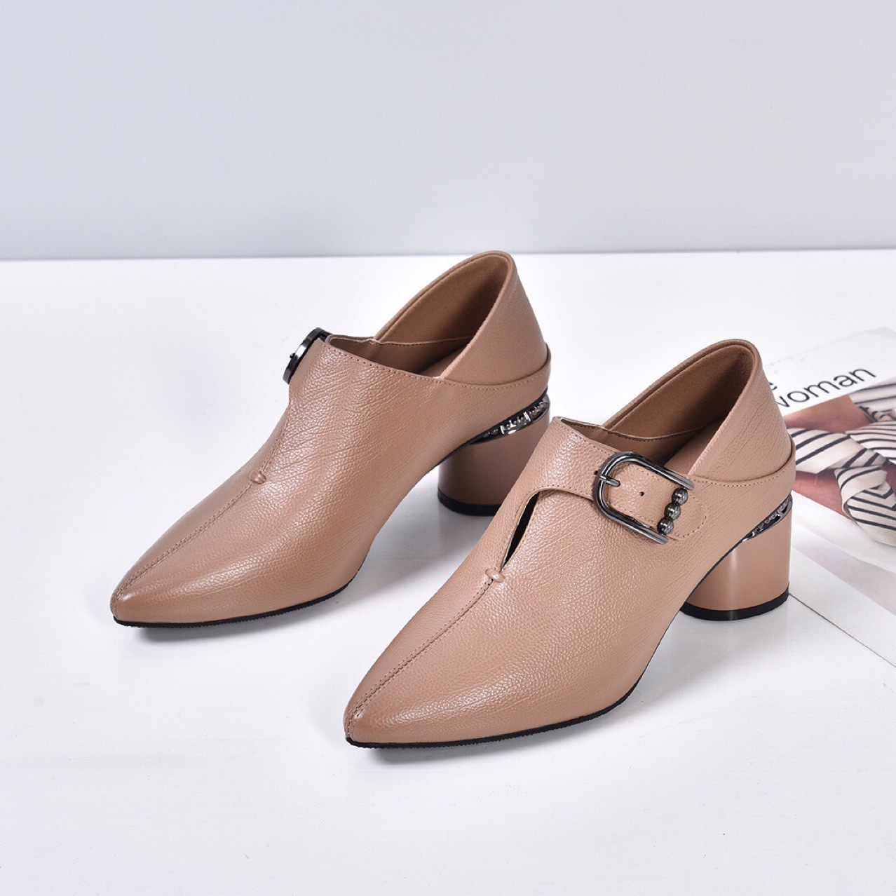 Giày dành cho nữ, kiểu dáng mũi nhọn và cổ sâu ôm chân. Sản phẩm có phần gót thấp vừa phải, chắc chắn, giúp nâng đỡ bàn chân một cách thoải mái trong suốt thời gian dài sử dụng. Chất liệu chính từ da mềm mại, tạo cảm giác dễ chịu. Bạn có thể dễ dàng phối hợp với nhiều trang phục như quần tây, váy liền để đi làm hoặc dạo phố. | Tên sản phẩm: Giày Cao Gót Nữ Chất Liệu Da Bò Mũi Nhọn Gót Vuông Hàng Mùa Xuân Thu Đông - Giày Dép Nữ | Mã sản phẩm: D6946 - Giá: 1.490.000đ | Mã nhà sản xuất: TOREHU-G04Hình ảnh sản phẩm