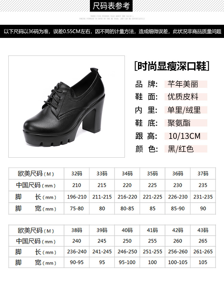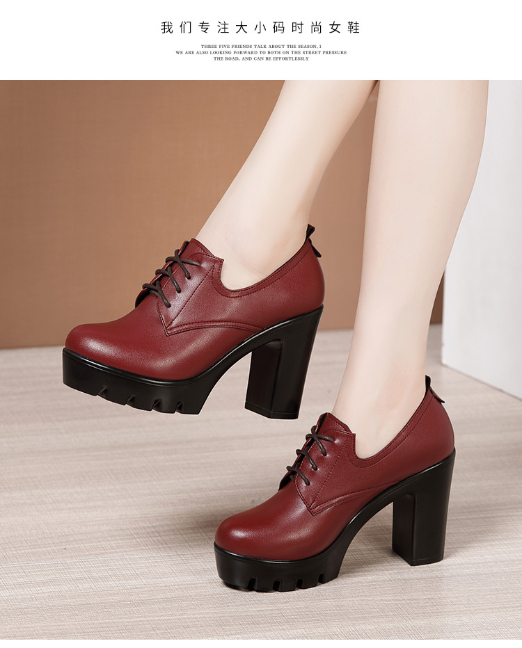 Đôi giày nữ có phần mũi tròn và cổ sâu, kiểu dáng buộc dây. Sản phẩm được làm ấm và dày hơn với lớp lót bên trong, phù hợp cho thời tiết mùa thu đông. Đế giày dạng platform vừa phải giúp tăng chiều cao một cách thoải mái, kết hợp cùng đế bằng chắc chắn. Bạn có thể dễ dàng mang vào và điều chỉnh độ ôm chân nhờ dây buộc. Kiểu giày này phối hợp được với nhiều trang phục thường ngày. | Tên sản phẩm: Giày Cao Gót Nữ Big Size Ngoại Cỡ Mũi Tròn Gót Vuông Dày Ấm Hàng Mùa Xuân Thu Đông - Giày Dép Nữ | Mã sản phẩm: D7095 - Giá: 890.000đ | Mã nhà sản xuất: WUDTI-G03Hình ảnh sản phẩm