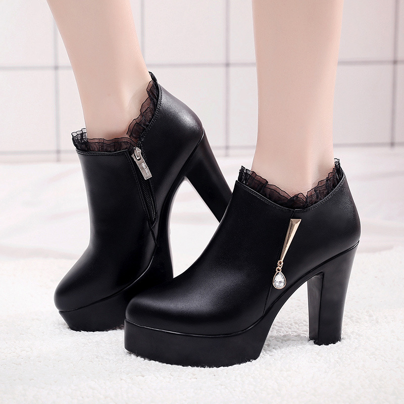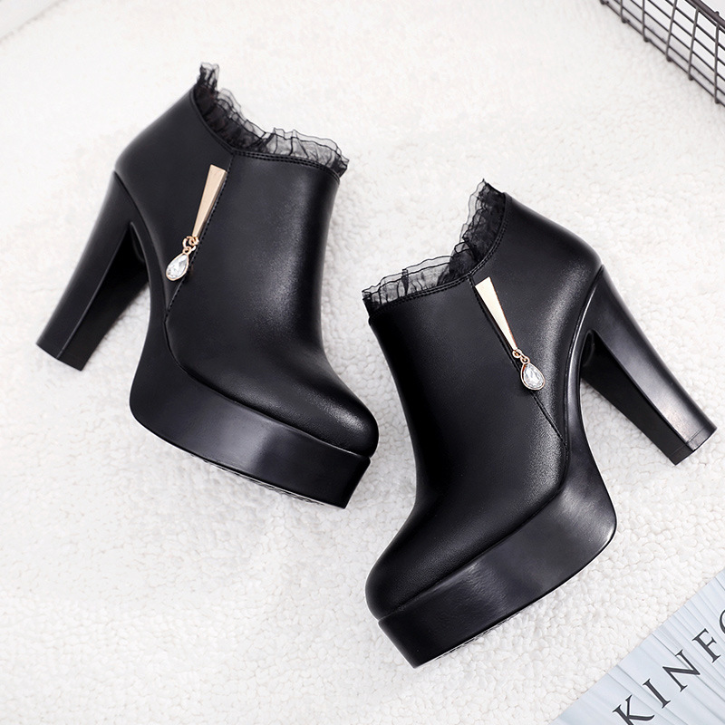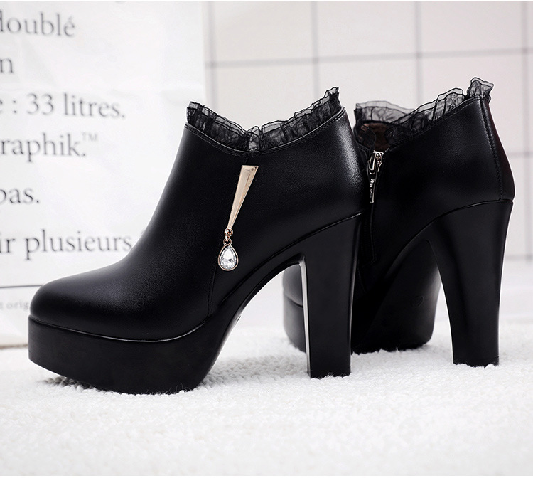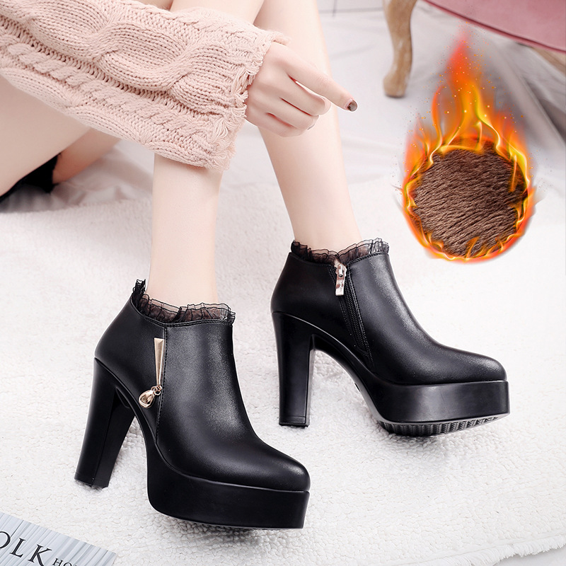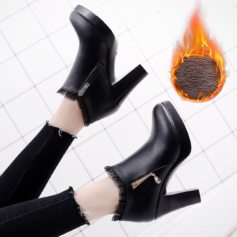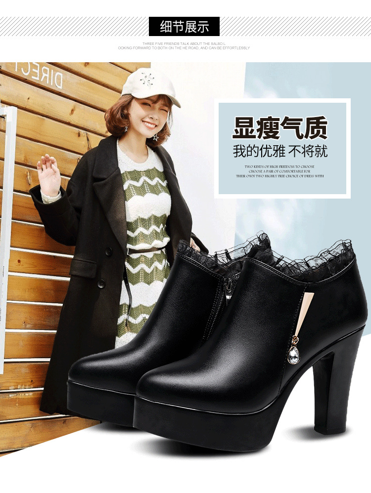 Đôi giày này có phần đế rất dày và chắc chắn, giúp tăng chiều cao một cách thoải mái. Phần gót được thiết kế kiểu cổ điển, vững vàng. Bên trong giày được lót một lớp lông mềm mại, giữ ấm đôi chân cho những ngày trời lạnh. Kiểu dáng cổ sâu ôm gọn bàn chân, điểm xuyến những đường viền ren tinh tế. Bạn có thể dễ dàng phối cùng quần dài hoặc váy để tạo điểm nhấn. | Tên sản phẩm: Giày Cao Gót Nữ Chất Liệu Ren Gót Vuông Họa Tiết Hoa Đế Cao - Giày Dép Nữ | Mã sản phẩm: D7181 - Giá: 940.000đ | Mã nhà sản xuất: WUDTI-G03Hình ảnh sản phẩm