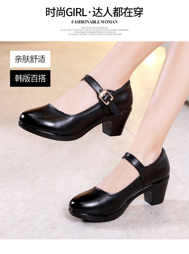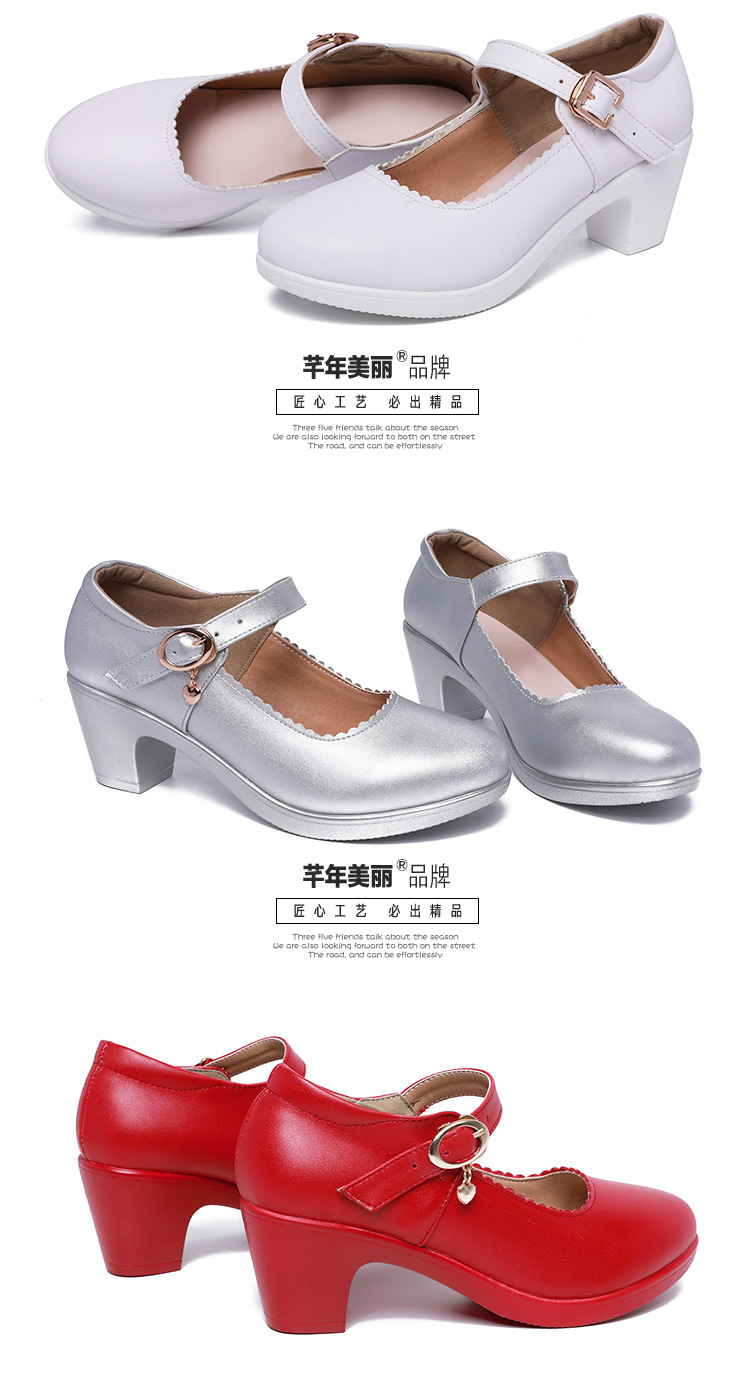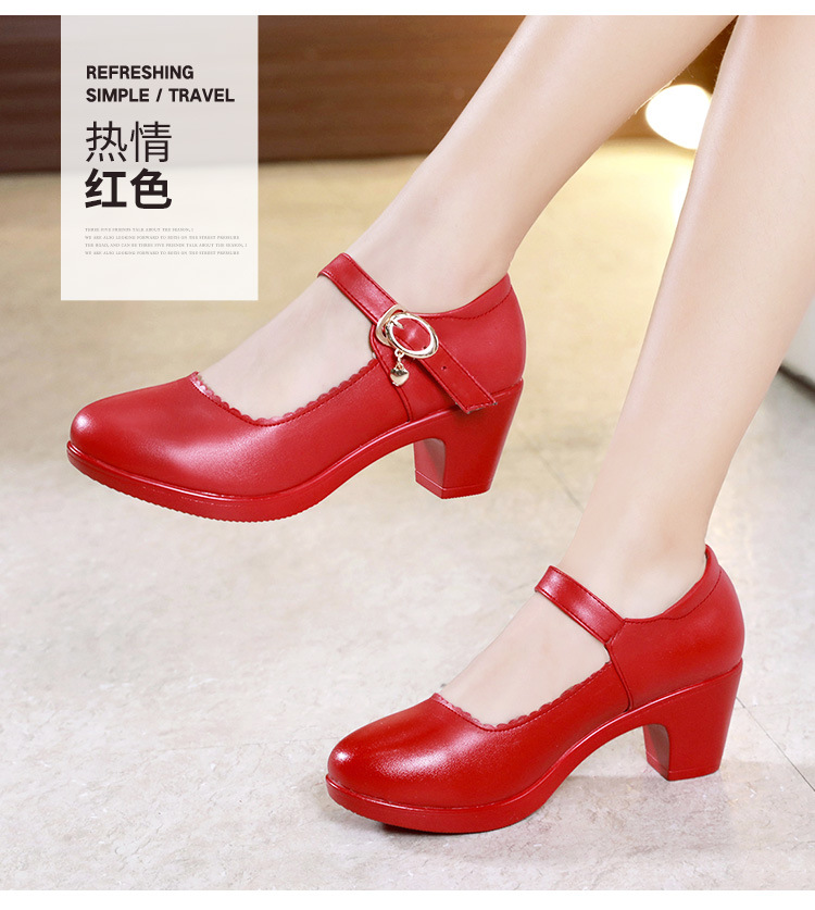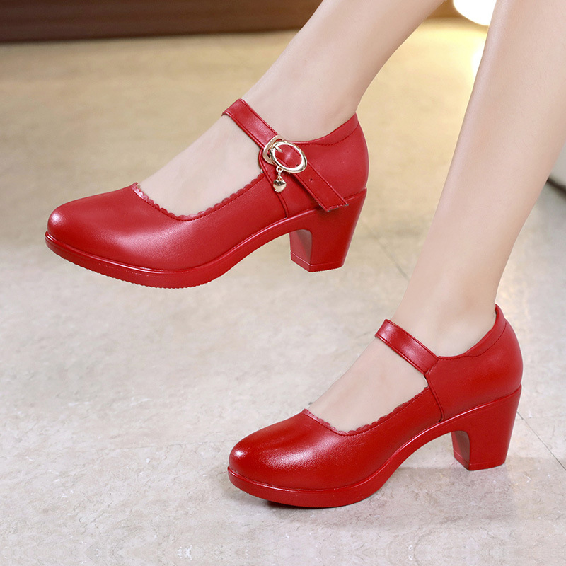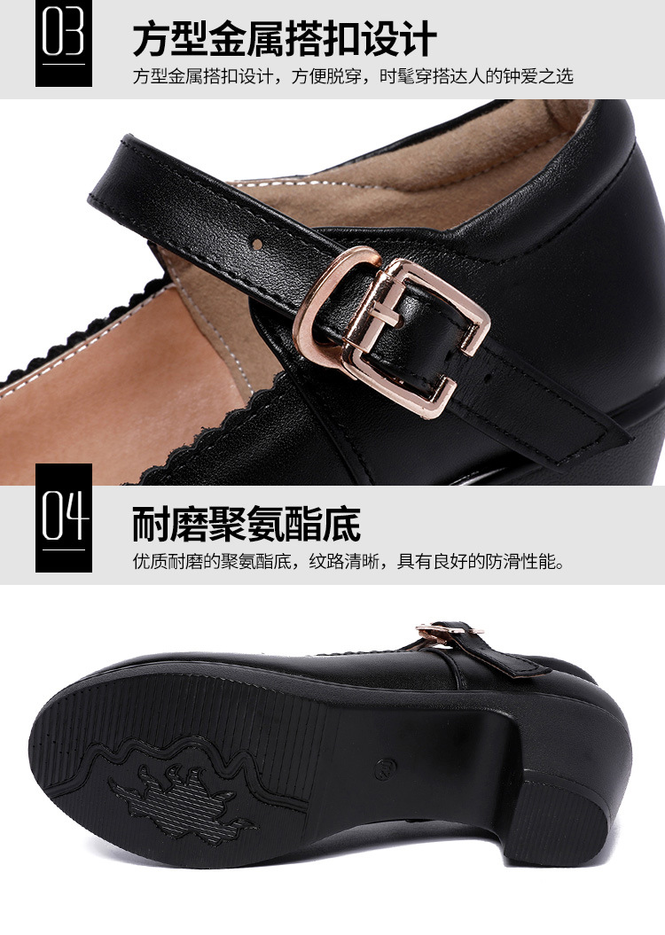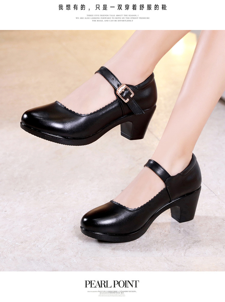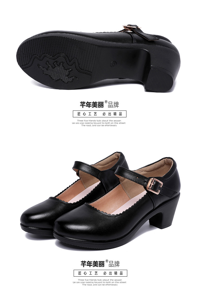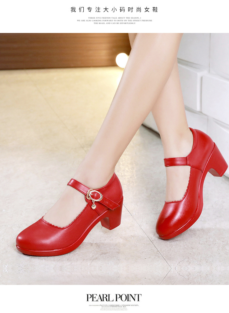 Đôi giày này có phần đế giữa vừa phải và đế thô, giúp nâng đỡ bàn chân thoải mái suốt ngày dài. Kiểu dáng tròn trịa, đi kèm khóa cài tiện lợi, dễ dàng mang vào hoặc tháo ra. Sản phẩm thích hợp cho nhiều hoạt động như làm việc, tập múa ngoài trời, hoặc biểu diễn cùng trang phục truyền thống. Có đủ các cỡ chân lớn dành cho nhiều người. Chỉ cần xỏ chân vào, cài khóa và bạn đã sẵn sàng để di chuyển. | Tên sản phẩm: Giày Cao Gót Nữ Big Size Ngoại Cỡ Mũi Tròn Gót Vuông - Giày Dép Nữ | Mã sản phẩm: D7187 - Giá: 890.000đ | Mã nhà sản xuất: WUDTI-G03Hình ảnh sản phẩm