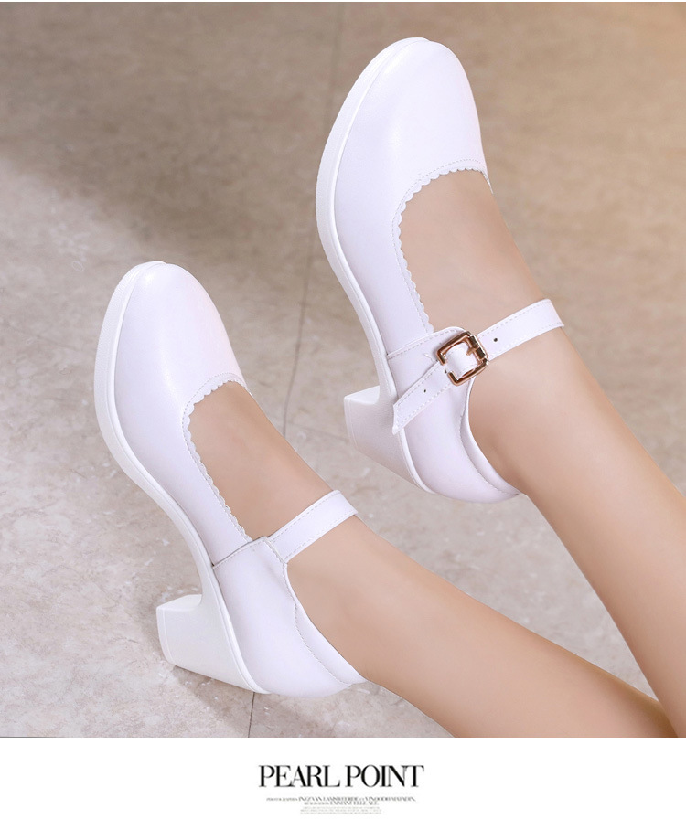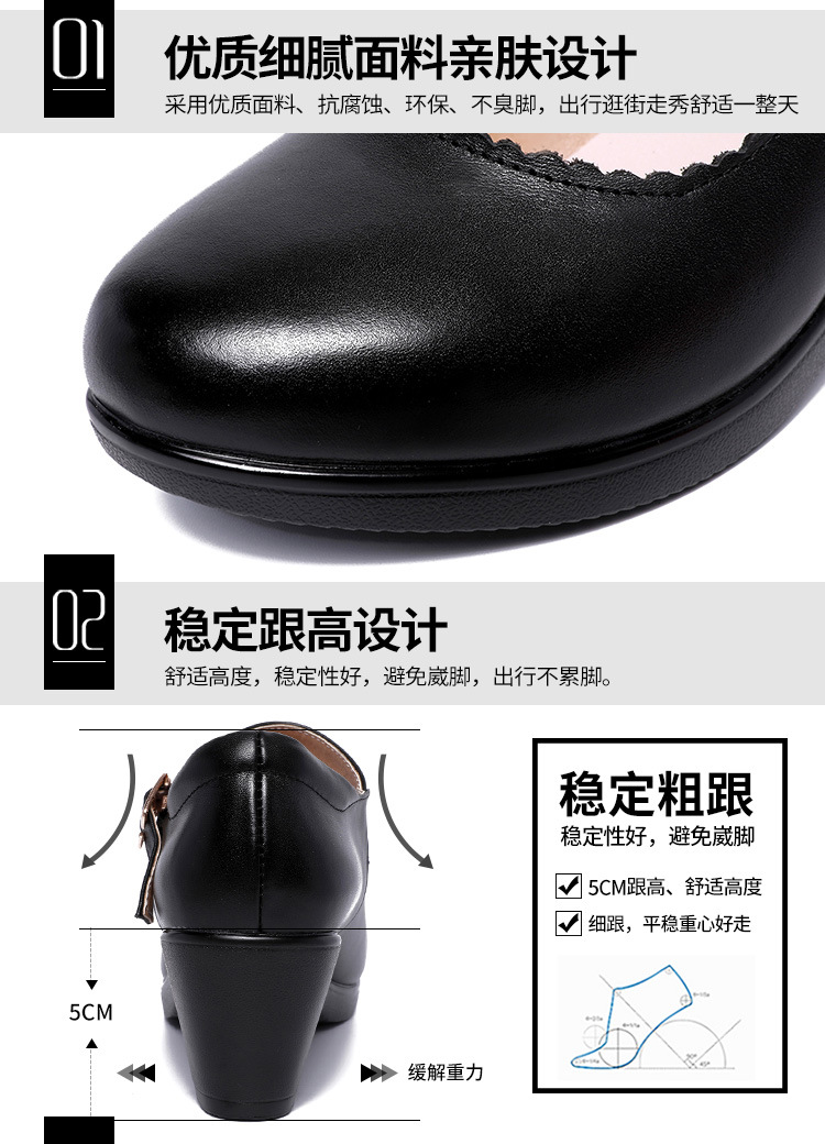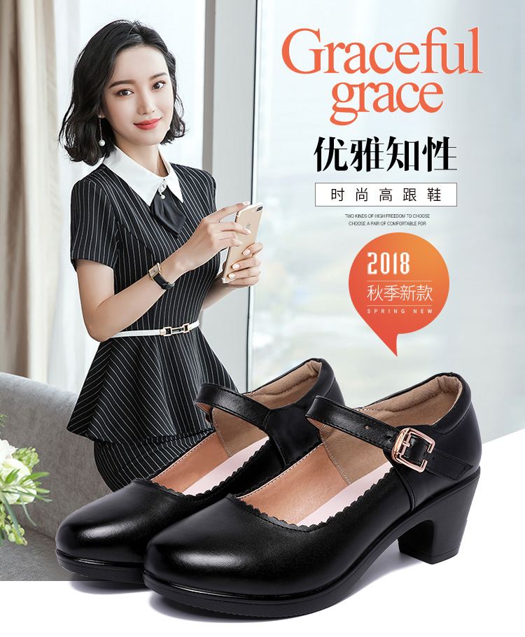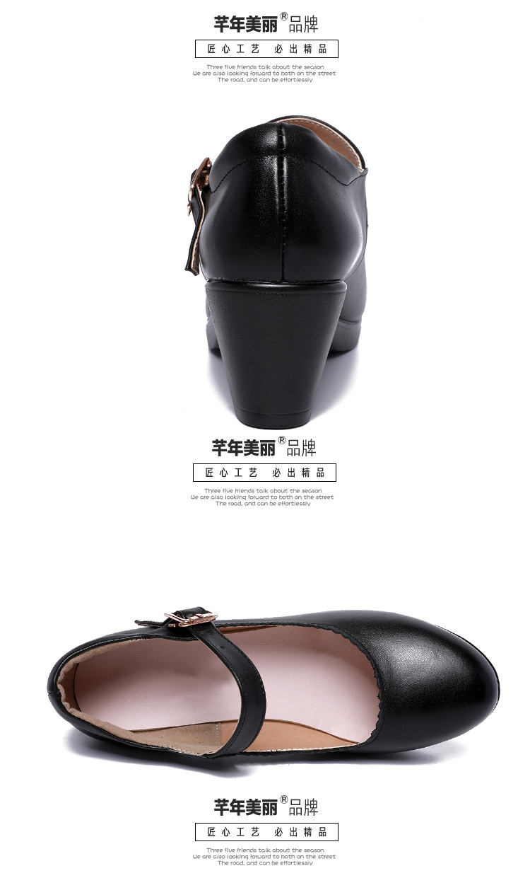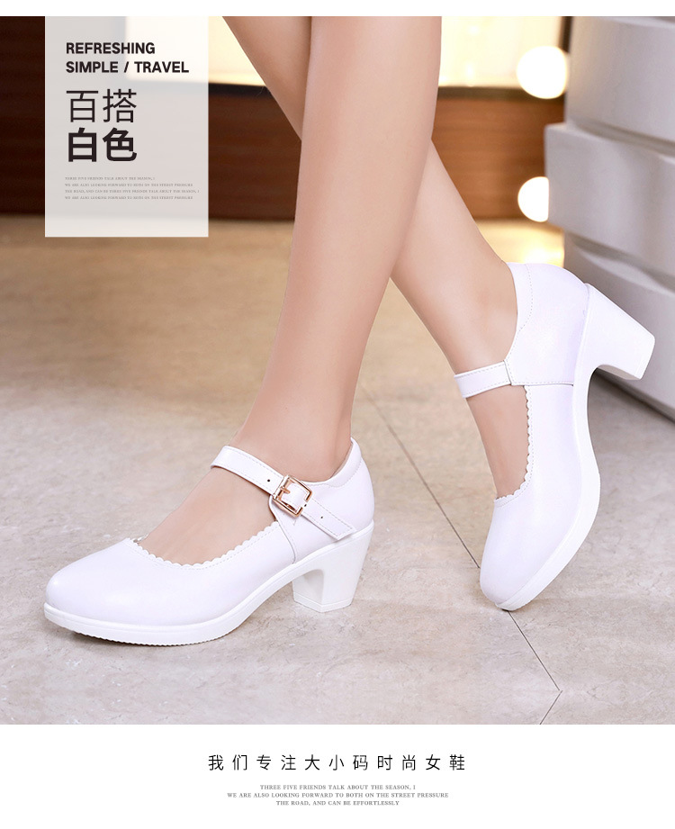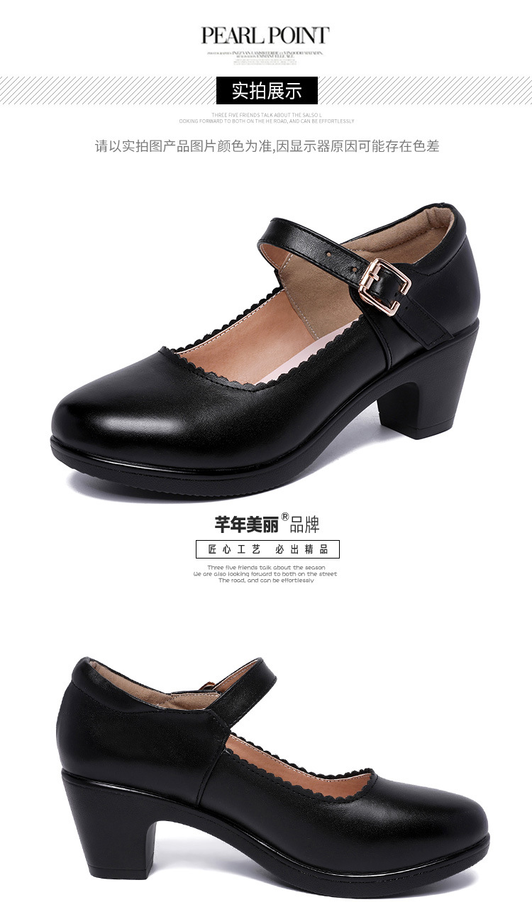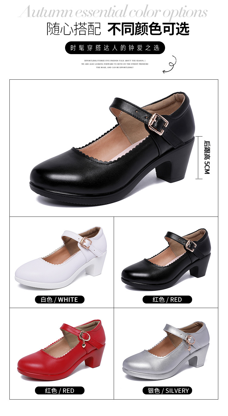 Đôi giày này có phần đế giữa vừa phải và đế thô, giúp nâng đỡ bàn chân thoải mái suốt ngày dài. Kiểu dáng tròn trịa, đi kèm khóa cài tiện lợi, dễ dàng mang vào hoặc tháo ra. Sản phẩm thích hợp cho nhiều hoạt động như làm việc, tập múa ngoài trời, hoặc biểu diễn cùng trang phục truyền thống. Có đủ các cỡ chân lớn dành cho nhiều người. Chỉ cần xỏ chân vào, cài khóa và bạn đã sẵn sàng để di chuyển. | Tên sản phẩm: Giày Cao Gót Nữ Big Size Ngoại Cỡ Mũi Tròn Gót Vuông - Giày Dép Nữ | Mã sản phẩm: D7187 - Giá: 890.000đ | Mã nhà sản xuất: WUDTI-G03Hình ảnh sản phẩm