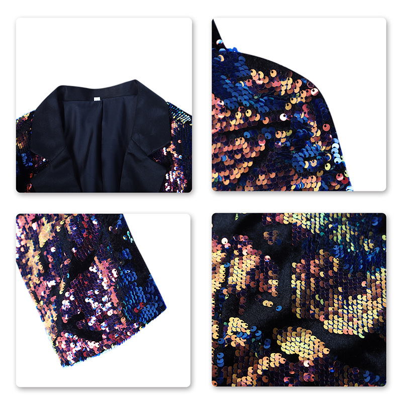 Áo khoác nam thiết kế ôm vừa người, cổ ve nhọn và thân áo được điểm xuyết bằng những chi tiết ánh kim màu xanh lấp lánh. Chất liệu vải co giãn nhẹ giúp người mặc di chuyển thoải mái. Sản phẩm phù hợp cho các buổi trình diễn nghệ thuật hoặc tiệc khiêu vũ. Có thể kết hợp cùng quần âu tối màu để tạo điểm nhấn nổi bật. Bảo quản bằng cách giặt khô và treo bằng móc áo thích hợp. | Tên sản phẩm: Áo Vest Nam Vest Dáng Ôm - Thời Trang Nam | Mã sản phẩm: D7374 - Giá: 1.730.000đ | Mã nhà sản xuất: YIDAD-G05Hình ảnh sản phẩm