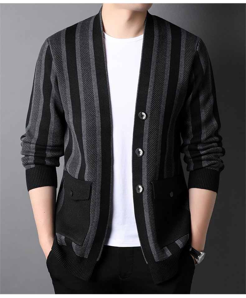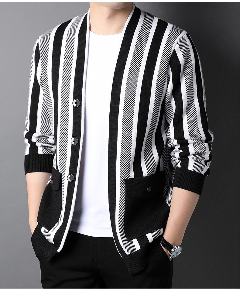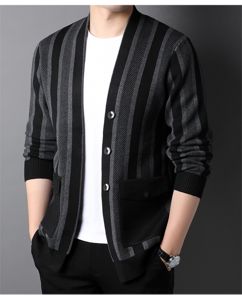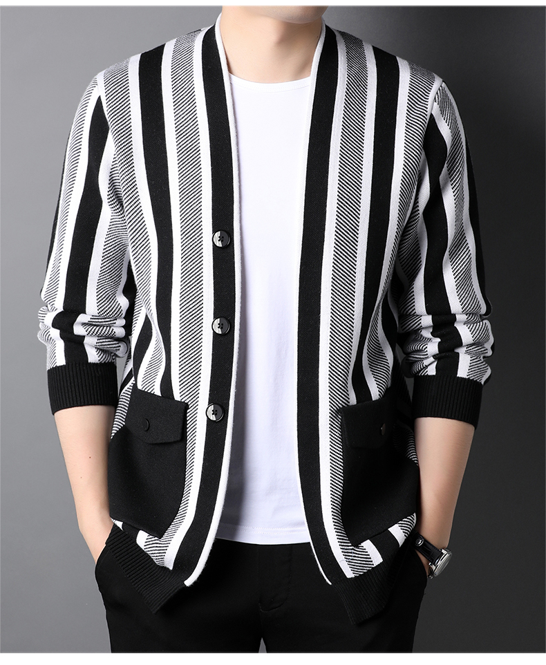 Áo len dệt kim dành cho nam, có hàng cúc phía trước, phù hợp mặc khi thời tiết mát mẻ hoặc lạnh. Sản phẩm được làm từ chất liệu có pha sợi len, tạo cảm giác ấm áp và mềm mại. Kiểu dáng kẻ sọc cổ điển, dễ dàng phối cùng áo thun bên trong hoặc mặc như một lớp áo khoác nhẹ. Bạn có thể mặc đi làm, đi chơi hoặc dạo phố hàng ngày. | Tên sản phẩm: Áo Len Nam Áo Len Dáng Dộng Hàng Mùa Xuân Thu Đông - Thời Trang Nam | Mã sản phẩm: E4124 - Giá: 1.390.000đ | Mã nhà sản xuất: MERELA-G04Hình ảnh sản phẩm