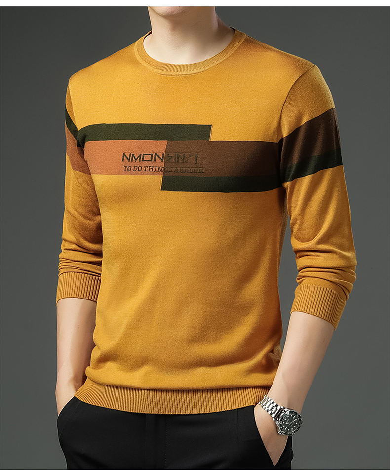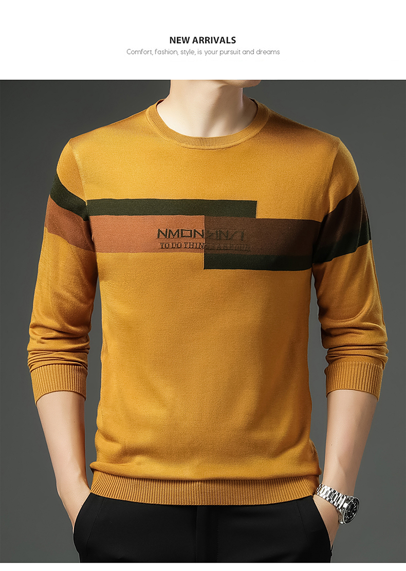 Áo len dáng mỏng mặc quanh năm cho nam giới. Kiểu dáng cổ tròn, tay dài, dễ dàng phối cùng nhiều loại trang phục. Chất liệu len đan mềm mại, tạo cảm giác dễ chịu khi mặc. Thiết kế trẻ trung với màu vàng tươi sáng, phù hợp mặc bên trong hoặc mặc riêng trong tiết trời mát mẻ. Sản phẩm dễ bảo quản và giặt máy nhẹ nhàng. | Tên sản phẩm: Áo Len Nam Áo Len Dài Tay Hàng Mùa Xuân Thu Đông Phong Cách Trẻ Trung - Thời Trang Nam | Mã sản phẩm: E4183 - Giá: 1.060.000đ | Mã nhà sản xuất: MERELA-G03Hình ảnh sản phẩm