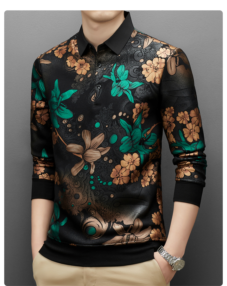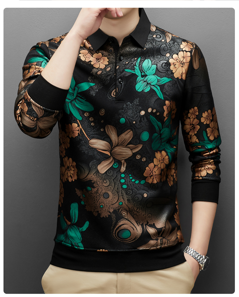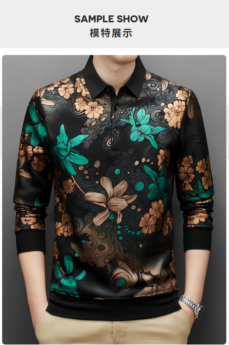 Áo dài tay cổ bẻ dành cho nam, có lớp lót bên trong ấm áp, phù hợp mặc khi thời tiết mát mẻ. Sản phẩm có kiểu dáng cổ điển, thân áo được in họa tiết trang nhã. Chất vải mềm mại, tạo cảm giác dễ chịu khi mặc. Bạn có thể dùng làm áo mặc bên trong hoặc mặc kết hợp với áo khoác nhẹ bên ngoài. Sản phẩm thích hợp cho nhiều dịp sinh hoạt hằng ngày. | Tên sản phẩm: Áo Thun Nam Dài Tay Họa Tiết Hoa Kín Cổ Hàng Mùa Xuân Thu Đông Trung Niên - Thời Trang Nam | Mã sản phẩm: E4185 - Giá: 980.000đ | Mã nhà sản xuất: MERELA-G03Hình ảnh sản phẩm