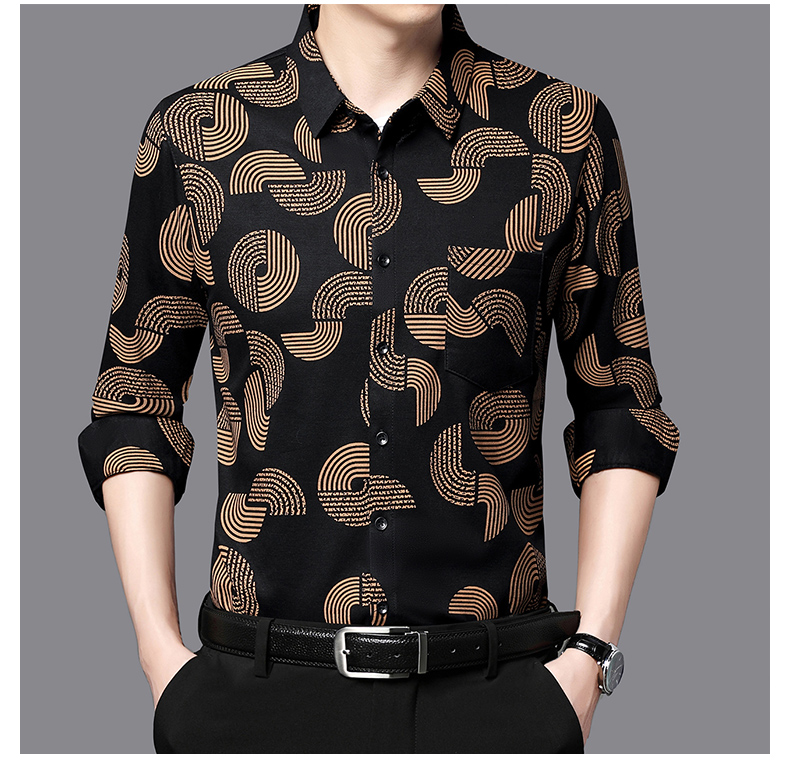 Áo sơ mi dài tay dành cho nam, có họa tiết in nổi bật, phù hợp mặc trong tiết trời mùa thu đông. Kiểu dáng rộng rãi tạo cảm giác thoải mái, dễ chịu khi mặc. Áo được thiết kế với túi thật tiện lợi, phù hợp cho các dịp sinh hoạt hằng ngày hoặc đi chơi. Chất vải mềm mại, giúp người mặc dễ dàng vận động. Có thể mặc kết hợp với quần dài để có bộ trang phục hoàn chỉnh. | Tên sản phẩm: Áo Sơ Mi Nam Dài Tay Họa Tiết Hoa Hàng Mùa Xuân Thu Đông Trung Niên - Thời Trang Nam | Mã sản phẩm: E4208 - Giá: 720.000đ | Mã nhà sản xuất: MERELA-G02Hình ảnh sản phẩm