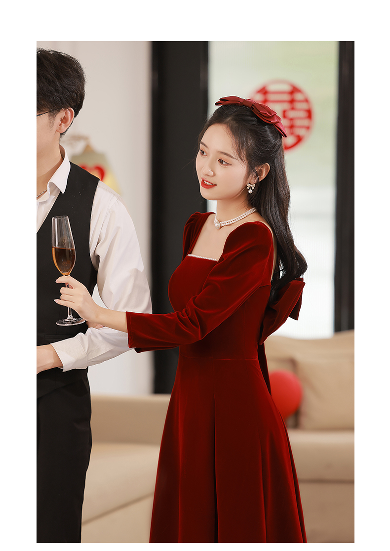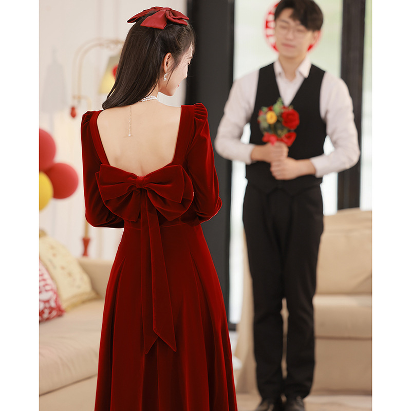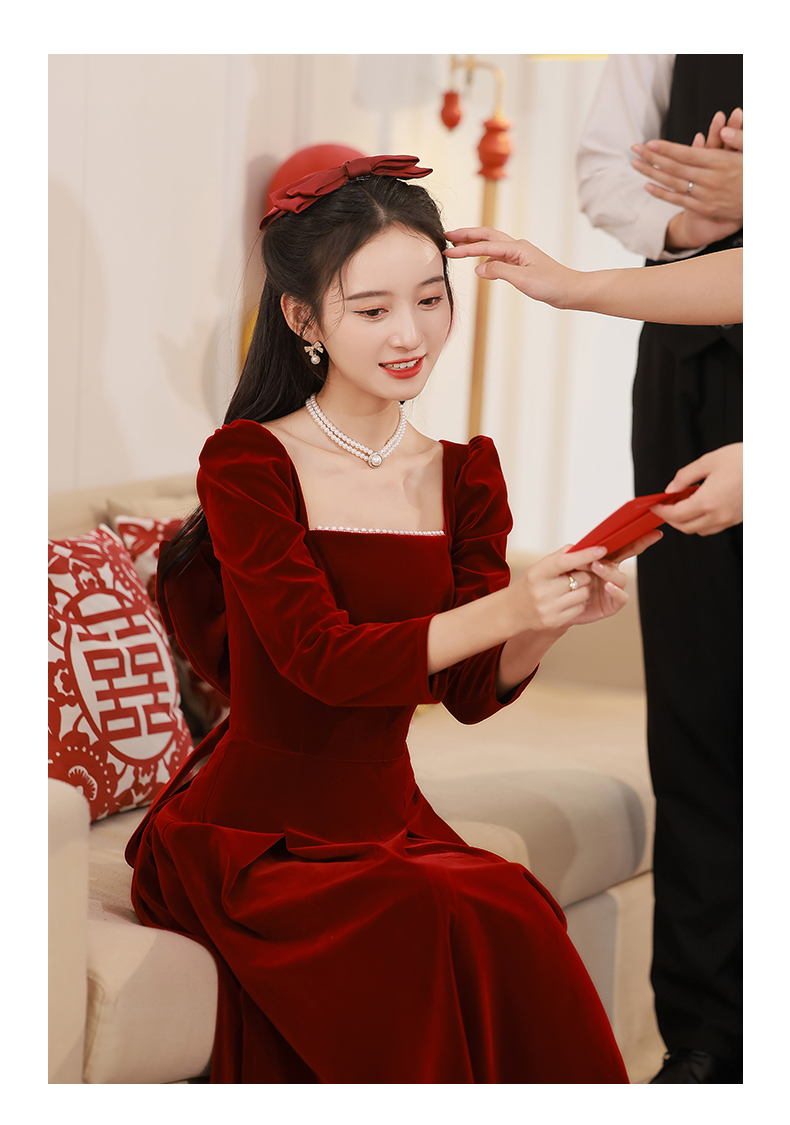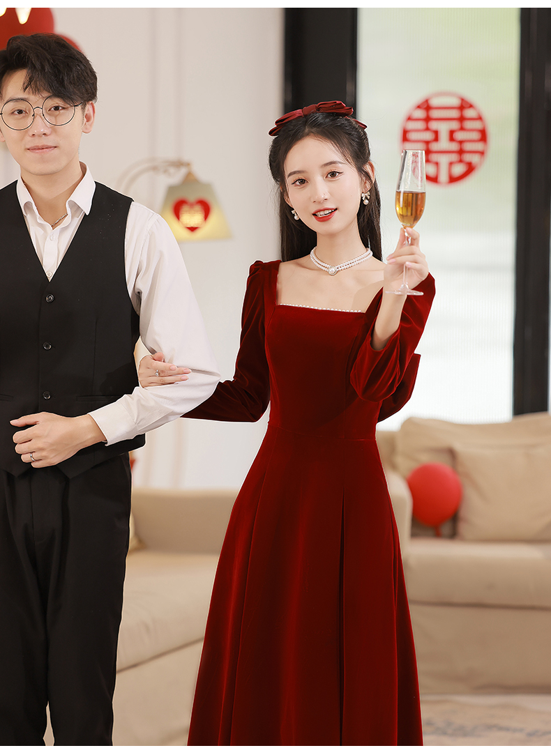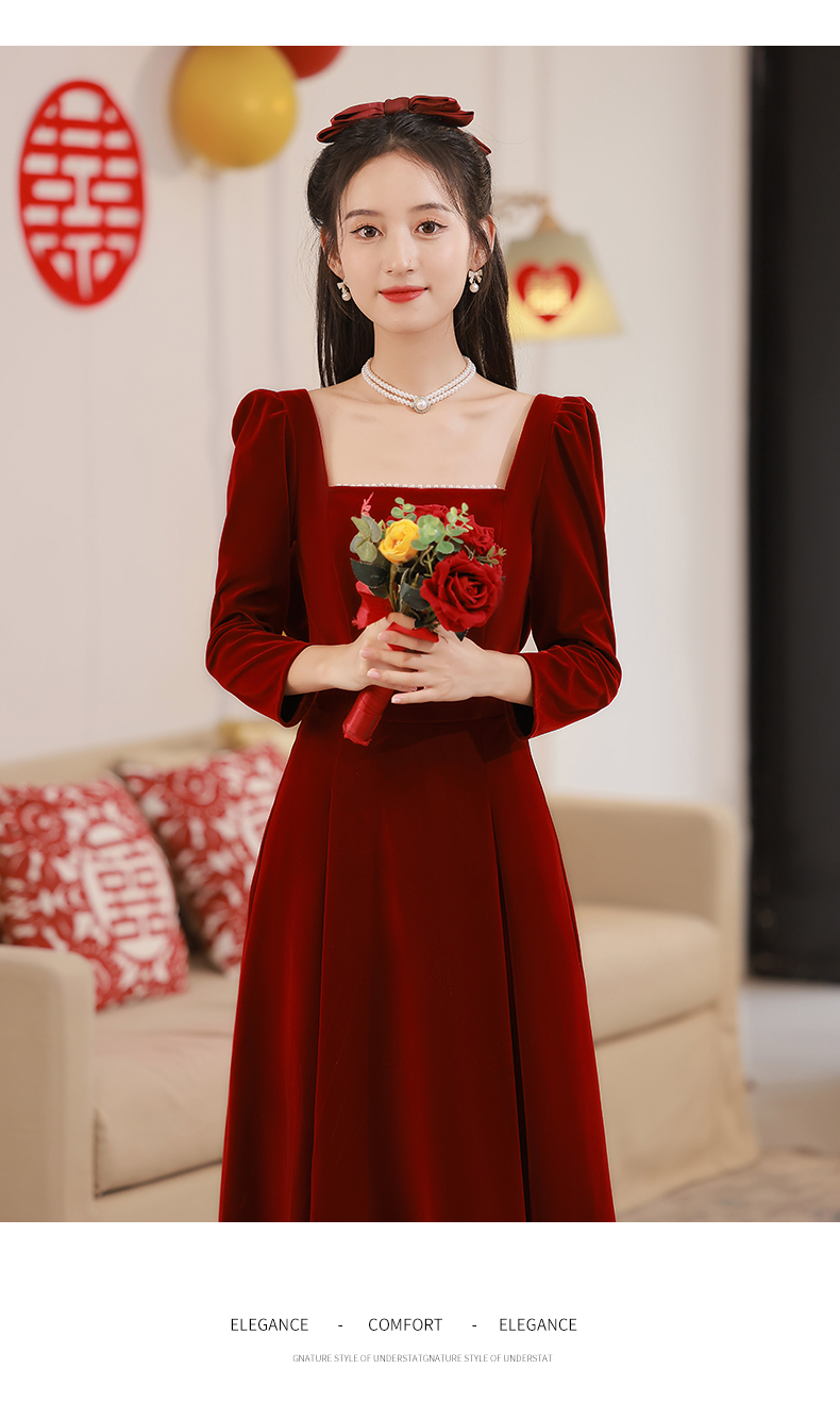 Chiếc đầm dành cho cô dâu trong những buổi tiệc thân mật hay dịp về thăm nhà. Thiết kế tay dài với chất vải mềm mại, ấm áp, rất phù hợp cho thời tiết mùa thu đông. Màu rượu vang đậm tôn lên vẻ dịu dàng và nổi bật. Kiểu dáng ôn hòa, dễ mặc, có thể dùng trong các buổi gặp mặt gia đình, tiệc mừng nhỏ. Một lựa chọn nhã nhặn và phù hợp cho các dịp quan trọng. | Tên sản phẩm: Váy Đầm Liền Thân Dự Tiệc Nữ Dài Tay Hàng Mùa Xuân Thu Đông Dùng Trong Lễ Cưới - Thời Trang Nữ | Mã sản phẩm: E6285 - Giá: 1.380.000đ | Mã nhà sản xuất: GUREBE-G04Hình ảnh sản phẩm