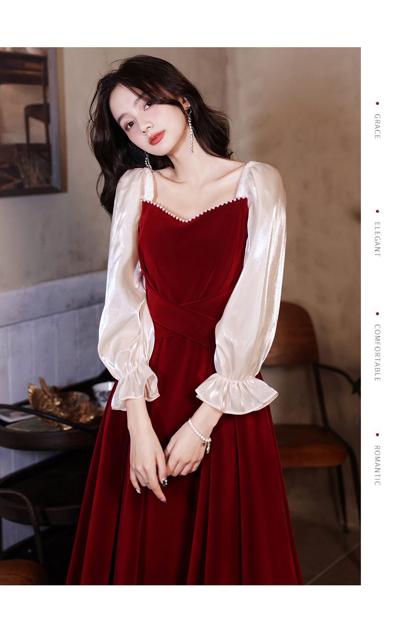Chiếc váy dự tiệc dành cho cô dâu, thiết kế đơn giản nhưng vẫn toát lên vẻ đẹp trang nhã. Chất liệu nhung mềm mại, tông màu đỏ rượu vang ấm áp rất phù hợp cho thời tiết mùa thu. Tay dài kín đáo, kiểu dáng ôm body nhẹ nhàng tôn lên những đường nét cơ thể. Có thể mặc trong các bữa tiệc chiêu đãi, buổi tối gặp mặt hoặc sự kiện gia đình sau ngày cưới. Dễ dàng phối cùng phụ kiện để tạo điểm nhấn. | Tên sản phẩm: Váy Đầm Liền Thân Dự Tiệc Nữ Dài Tay Hàng Mùa Xuân Thu Đông - Thời Trang Nữ | Mã sản phẩm: E6287 - Giá: 1.300.000đ | Mã nhà sản xuất: GUREBE-G04Hình ảnh sản phẩm