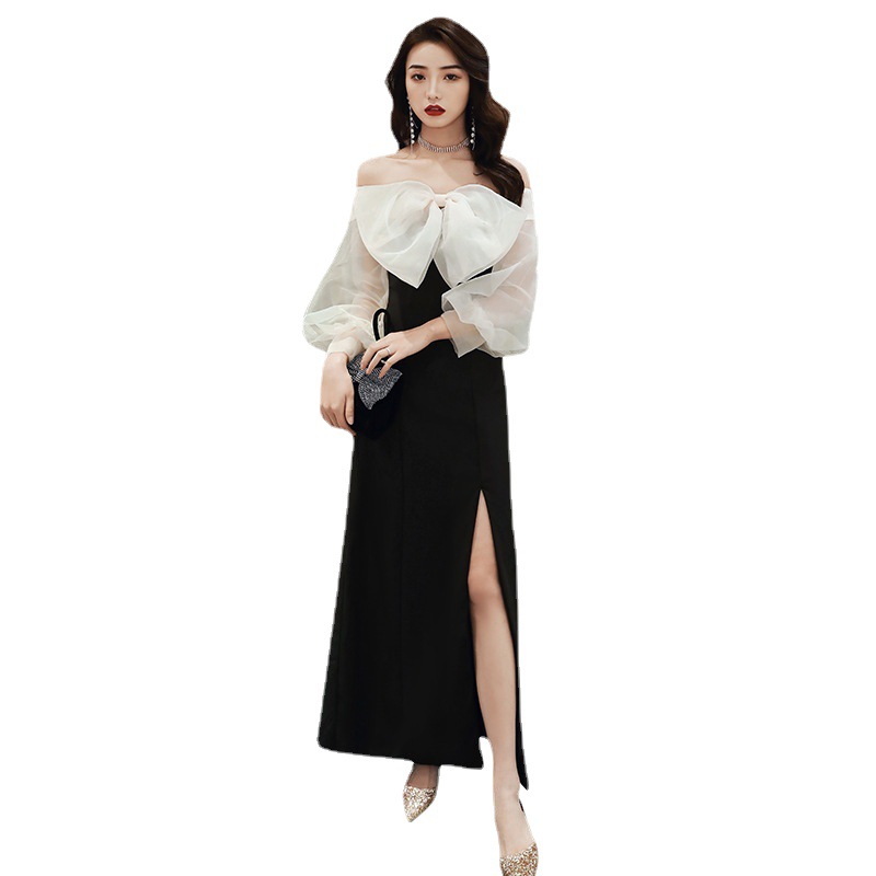 Chiếc đầm dạ hội dáng dài, màu đen thanh lịch, điểm nhấn là phần v được khoét kiểu thẳng ngang tạo nên vẻ đẹp dịu dàng và nữ tính. Thiết kế này rất phù hợp cho những buổi tiệc tối, sự kiện hoặc dịp sinh nhật. Bạn có thể dễ dàng phối cùng một đôi giày cao gót nhỏ và phụ kiện tinh tế để hoàn thiện bộ trang phục. Kiểu dáng ôm vừa phải giúp tôn lên những đường nét cơ thể một cách duyên dáng. | Tên sản phẩm: Váy Đầm Liền Thân Dự Tiệc Nữ Hàng Mùa Xuân Thu Đông - Thời Trang Nữ | Mã sản phẩm: E6307 - Giá: 1.250.000đ | Mã nhà sản xuất: GUREBE-G04Hình ảnh sản phẩm