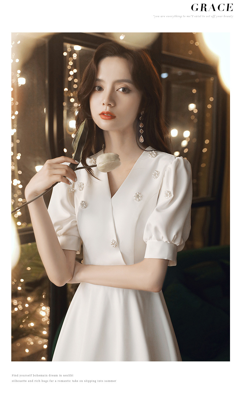 Chiếc đầm dạ hội màu trắng, kiểu dáng lấy cảm hứng từ thần tượng điện ảnh, mang đến vẻ đẹp thanh lịch và có phần cổ điển. Chất vải mềm mại tôn lên những đường nét cơ thể một cách tinh tế. Sản phẩm thích hợp cho các buổi tiệc, sự kiện hoặc khi bạn đảm nhận v trò người dẫn chương trình. Thiết kế này cũng có thể sử dụng trong những dịp gặp mặt thông thường. Mặc cùng giày cao gót và phụ kiện đơn giản để hoàn thiện phong cách. | Tên sản phẩm: Váy Đầm Liền Thân Dự Tiệc Nữ - Thời Trang Nữ | Mã sản phẩm: E6324 - Giá: 1.250.000đ | Mã nhà sản xuất: GUREBE-G04Hình ảnh sản phẩm