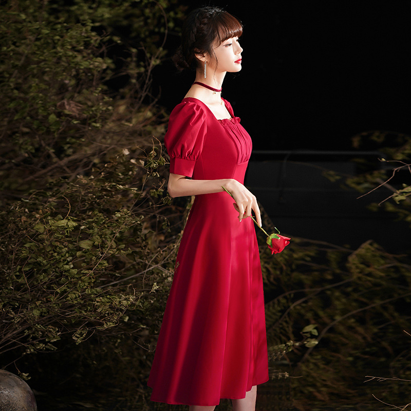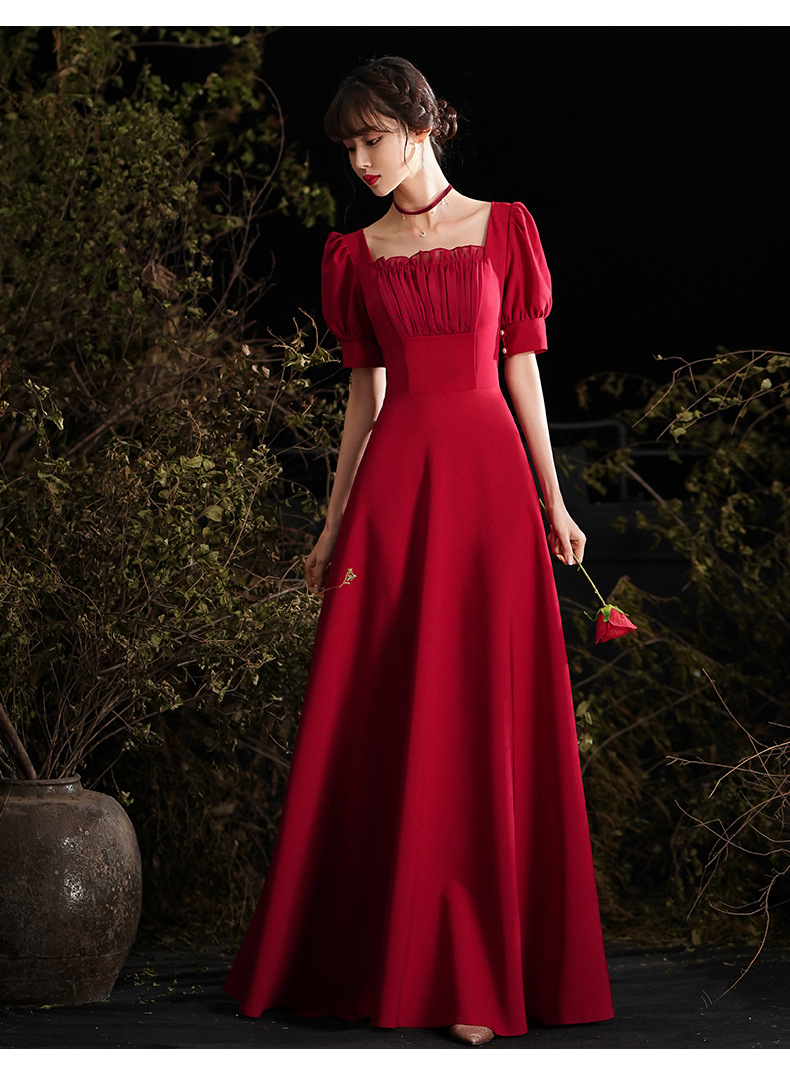 Chiếc váy cưới này có màu đỏ thắm nổi bật, phù hợp cho cô dâu trong những buổi tiệc mùa xuân hoặc mùa thu. Thiết kế dáng dài với phần tay bồng bềnh tạo nên vẻ duyên dáng và hiện đại. Chất vải mềm mại giúp người mặc thoải mái vận động. Sản phẩm dễ dàng phối cùng phụ kiện và giày cao gót để hoàn thiện bộ trang phục. Có thể giặt nhẹ và bảo quản nơi khô ráo để giữ form váy lâu dài. | Tên sản phẩm: Váy Đầm Liền Thân Dự Tiệc Nữ Tay Phồng Hàng Mùa Xuân Thu Đông Dùng Trong Lễ Cưới Ngày Cưới - Thời Trang Nữ | Mã sản phẩm: E6348 - Giá: 1.250.000đ | Mã nhà sản xuất: GUREBE-G04Hình ảnh sản phẩm