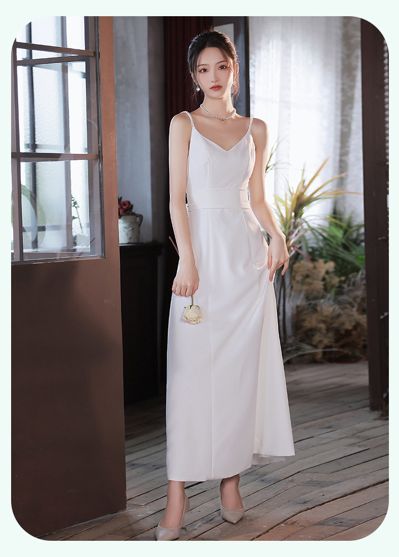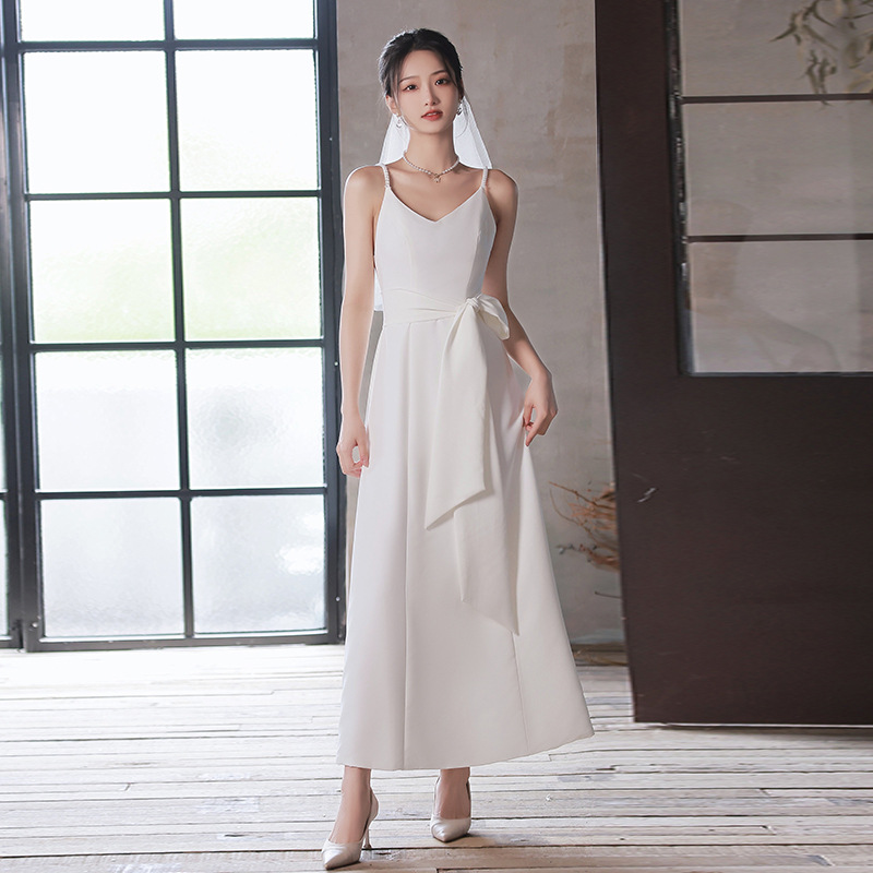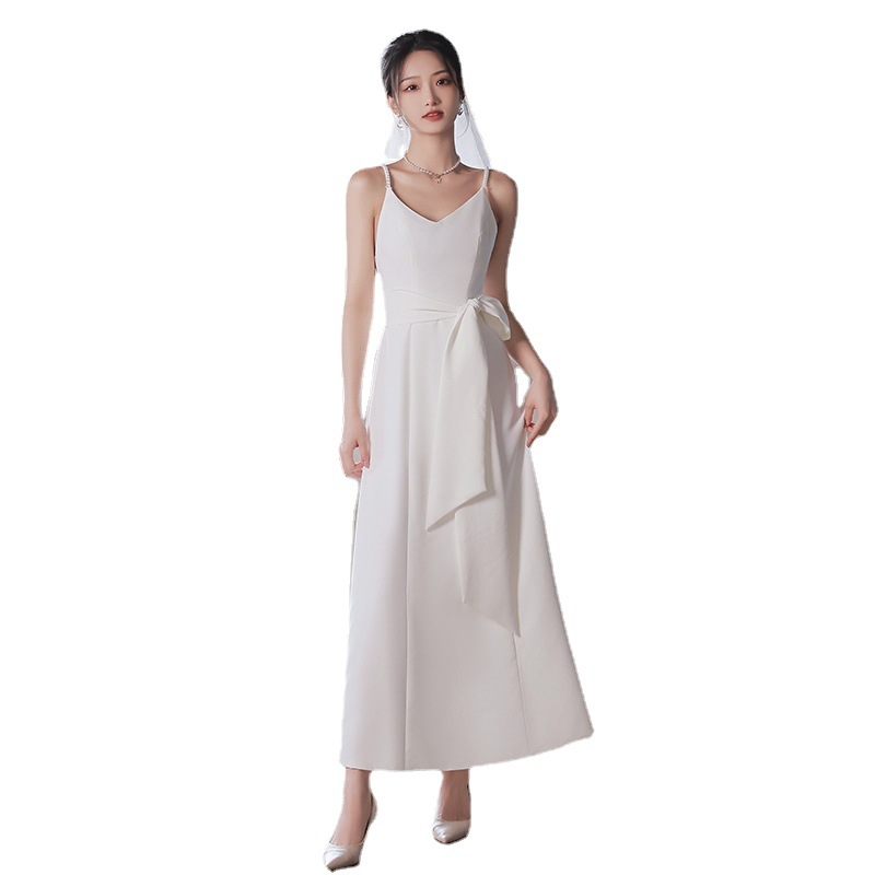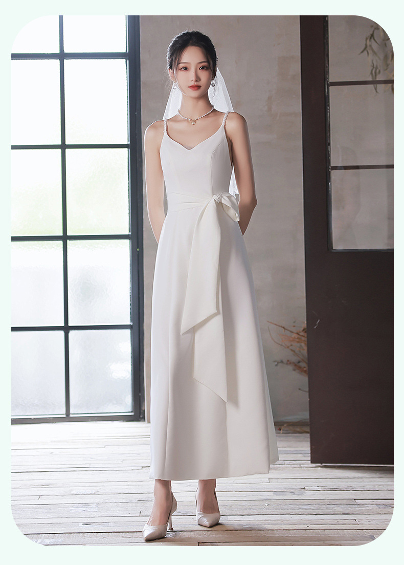 Chiếc váy dáng suông mặc trong ngày đăng ký kết hôn, được may từ chất liệu satin trơn màu trắng tinh. Thiết kế cổ yếm cùng hai dây mảnh m tôn lên vẻ dịu dàng và nét duyên dáng cho người mặc. Kiểu dáng ôn nhẹ giúp tạo đường nét cơ thể một cách tinh tế. Sản phẩm phù hợp cho các buổi lễ trang trọng nhẹ hoặc chụp ảnh. Có thể kết hợp thêm phụ kiện để tạo điểm nhấn riêng. | Tên sản phẩm: Áo Hai Dây Nữ Hai Dây Hở Vai Dùng Trong Lễ Cưới - Thời Trang Nữ | Mã sản phẩm: E6365 - Giá: 1.380.000đ | Mã nhà sản xuất: GUREBE-G04Hình ảnh sản phẩm