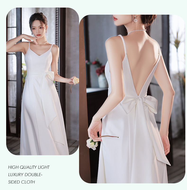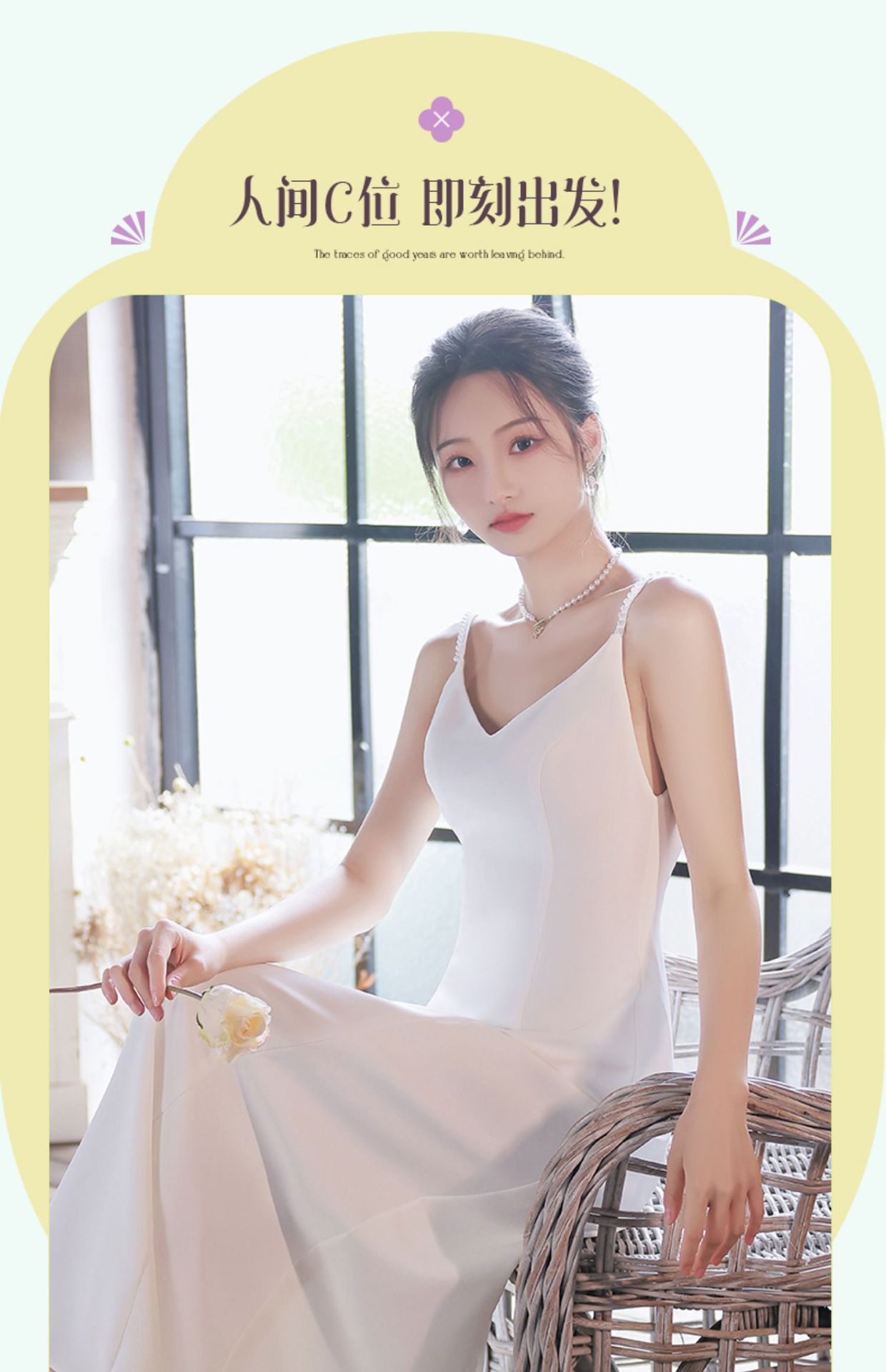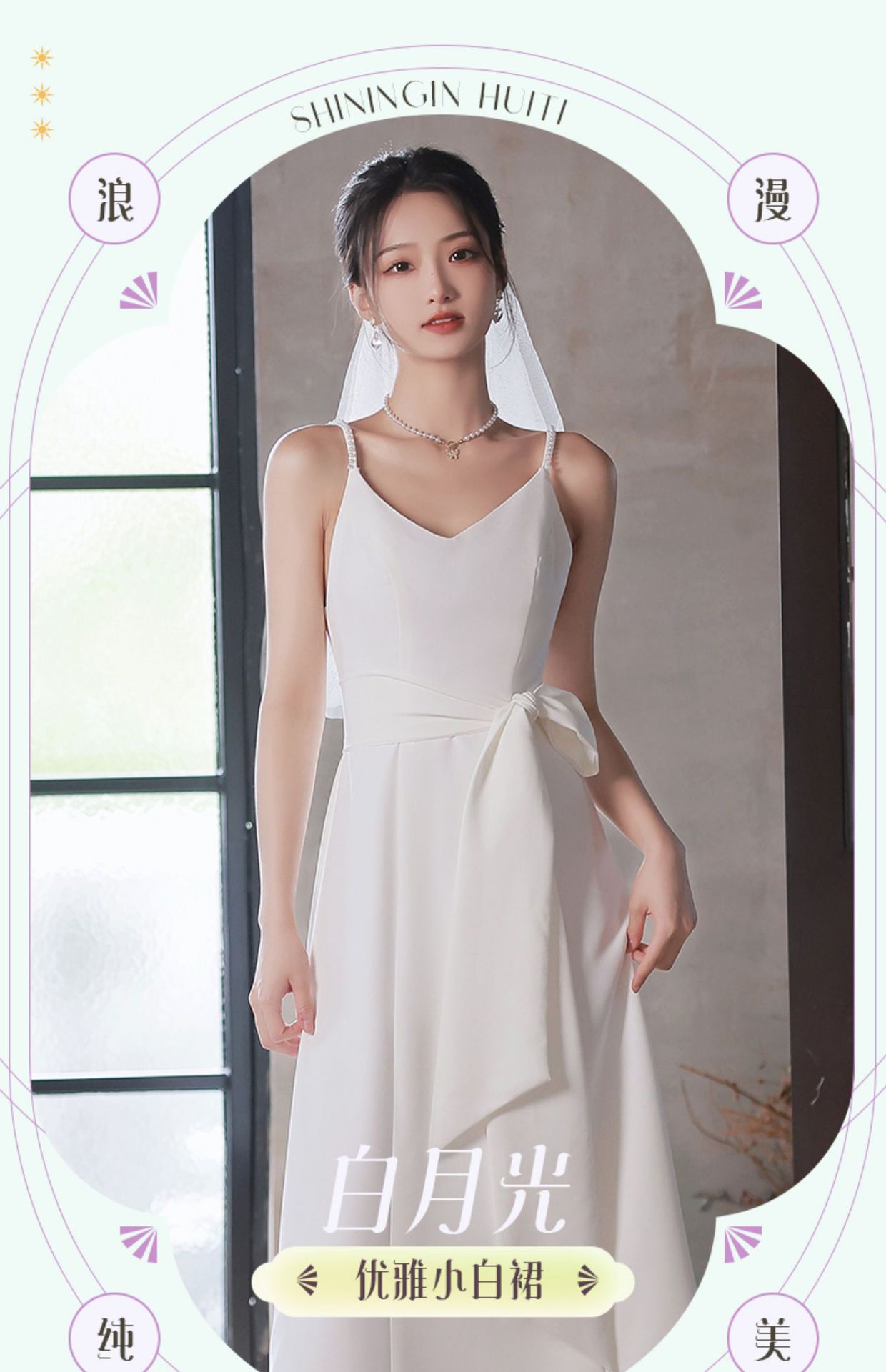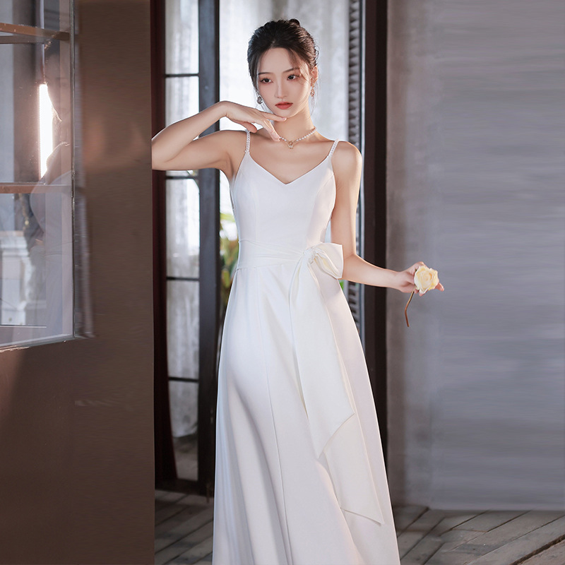 Chiếc váy dáng suông mặc trong ngày đăng ký kết hôn, được may từ chất liệu satin trơn màu trắng tinh. Thiết kế cổ yếm cùng hai dây mảnh m tôn lên vẻ dịu dàng và nét duyên dáng cho người mặc. Kiểu dáng ôn nhẹ giúp tạo đường nét cơ thể một cách tinh tế. Sản phẩm phù hợp cho các buổi lễ trang trọng nhẹ hoặc chụp ảnh. Có thể kết hợp thêm phụ kiện để tạo điểm nhấn riêng. | Tên sản phẩm: Áo Hai Dây Nữ Hai Dây Hở Vai Dùng Trong Lễ Cưới - Thời Trang Nữ | Mã sản phẩm: E6365 - Giá: 1.380.000đ | Mã nhà sản xuất: GUREBE-G04Hình ảnh sản phẩm