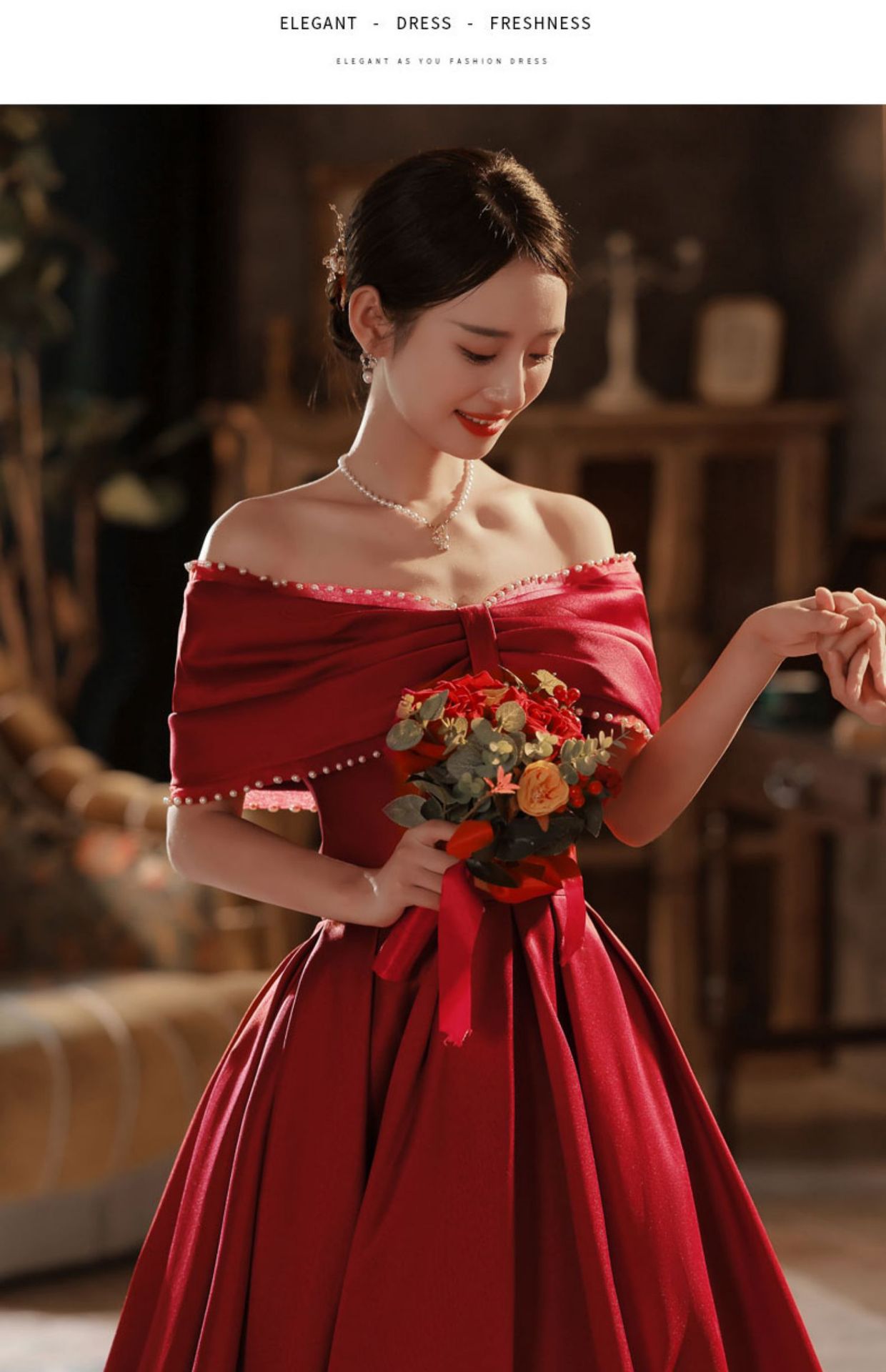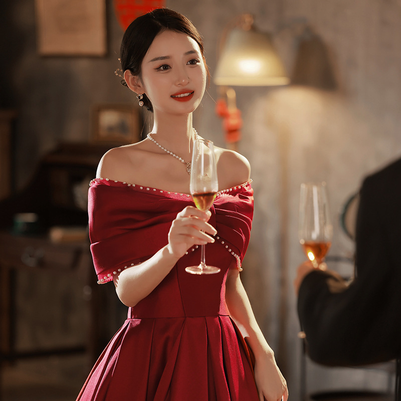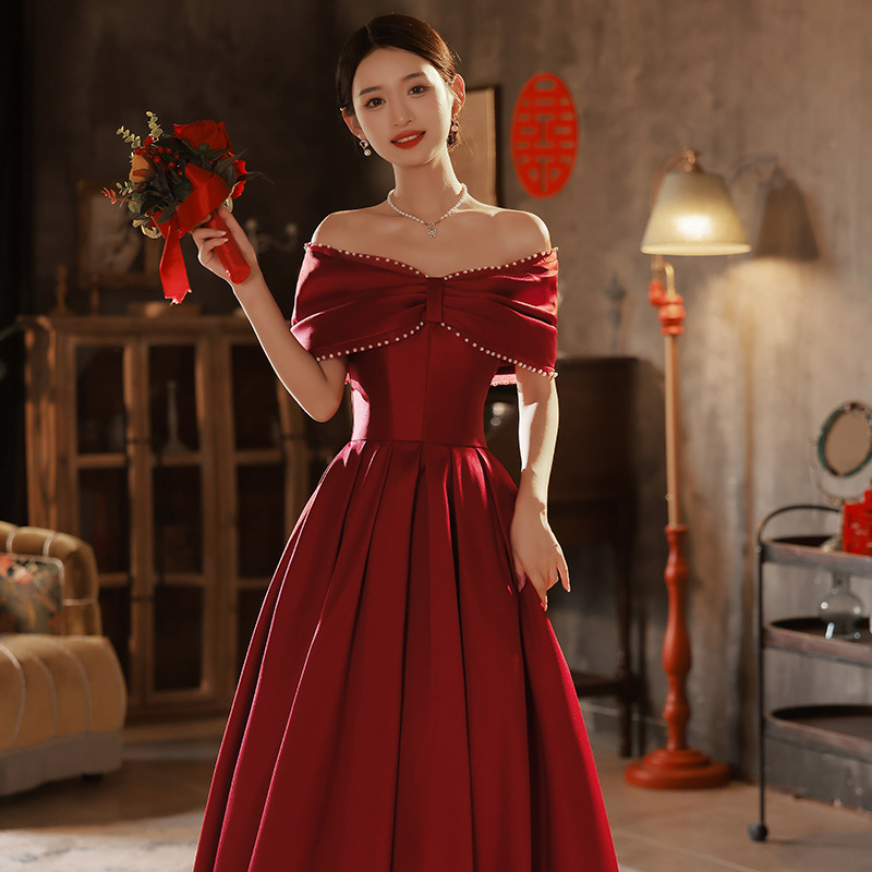 Chiếc váy dài dành cho cô dân trong những buổi tiệc mùa thu, có màu đỏ rượu vang ấm áp. Thiết kế đơn giản nhưng tinh tế, tôn lên vẻ đẹp dịu dàng và duyên dáng. Kiểu dáng ôn vừa phải giúp tạo đường nét cơ thể mềm mại, che đi những khuyết điểm nhỏ. Sản phẩm phù hợp để mặc trong các bữa tiệc đám cưới, lễ đính hôn hay khi về thăm nhà. Có thể phối cùng giày cao gót và phụ kiện nhẹ nhàng để hoàn thiện bộ trang phục. | Tên sản phẩm: Váy Đầm Liền Thân Dự Tiệc Nữ Hàng Mùa Xuân Thu Đông Dùng Trong Lễ Cưới - Thời Trang Nữ | Mã sản phẩm: E6374 - Giá: 1.520.000đ | Mã nhà sản xuất: GUREBE-G04Hình ảnh sản phẩm