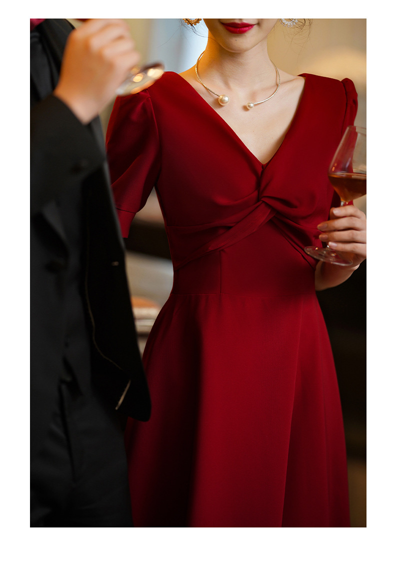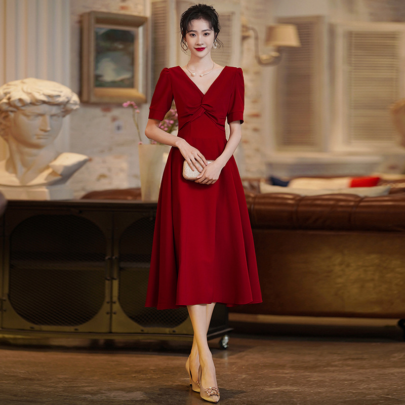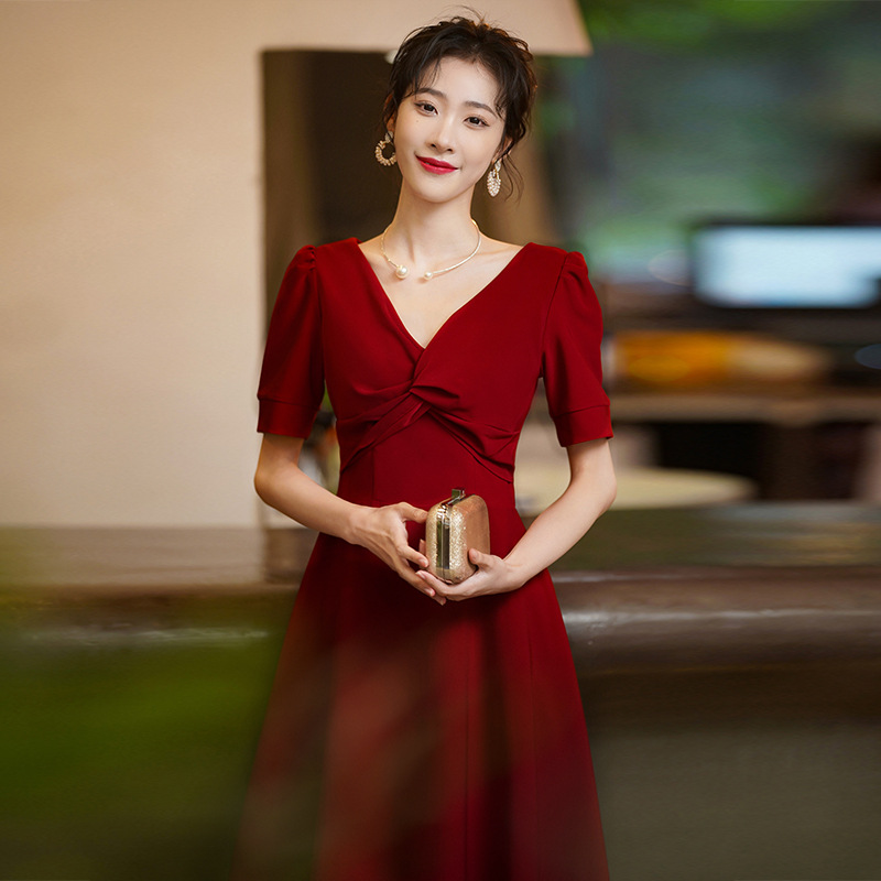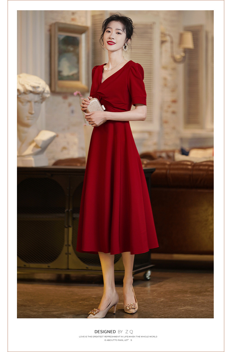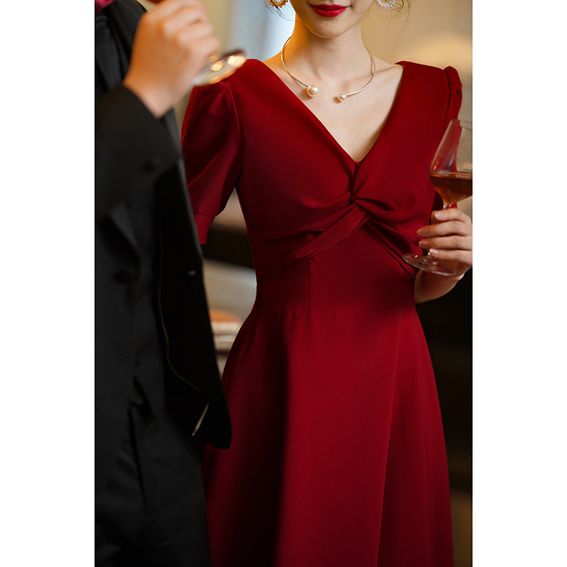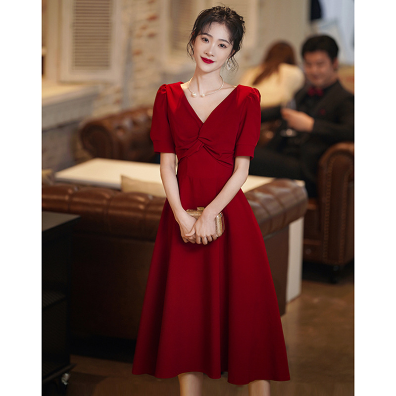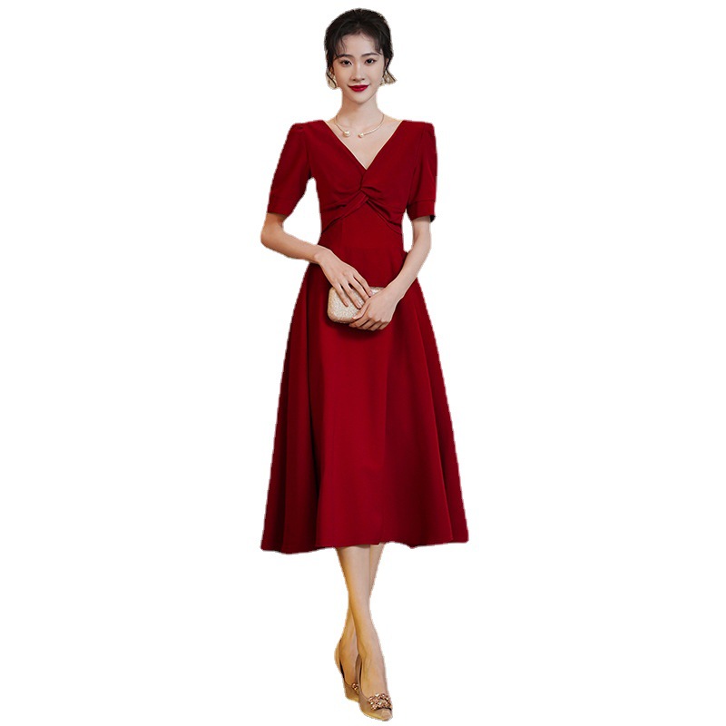 Váy liền có màu đỏ rượu vang, phù hợp cho các dịp lễ như đám hỏi, lễ tạ ơn hay gặp mặt gia đình. Kiểu dáng thanh lịch, cổ yếm dịu dàng và tay ngắn nhẹ nhàng. Chất vải mềm mại giúp người mặc thoải mái, có thể dùng trong những ngày thu mát mẻ. Sản phẩm cũng thích hợp để mặc trong những dịp thường ngày. Dễ dàng phối cùng giày cao gót và túi xách nhỏ để tạo điểm nhấn. | Tên sản phẩm: Váy Đầm Liền Thân Dự Tiệc Nữ Hàng Mùa Xuân Thu Đông Dùng Trong Lễ Cưới Ngày Cưới - Thời Trang Nữ | Mã sản phẩm: E6387 - Giá: 1.250.000đ | Mã nhà sản xuất: GUREBE-G04Hình ảnh sản phẩm