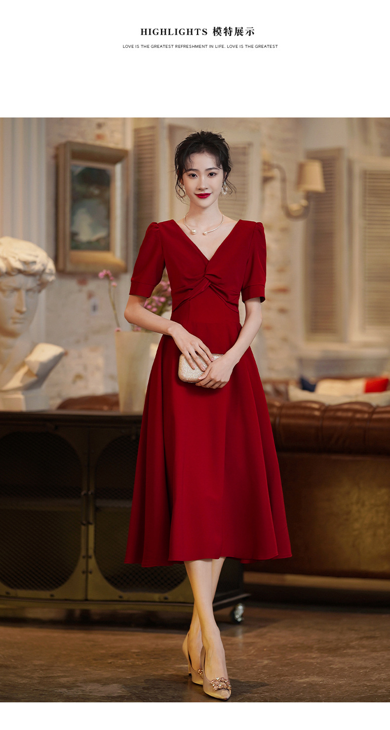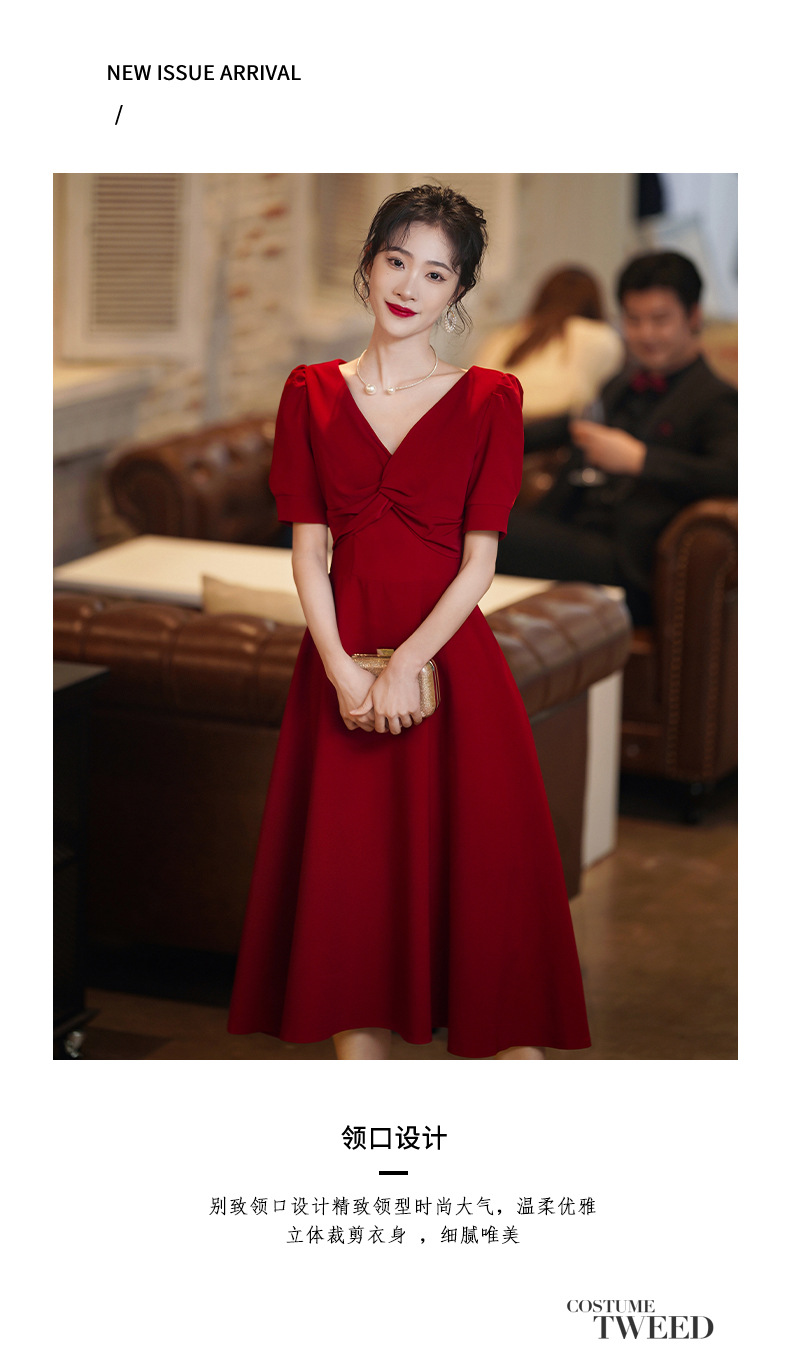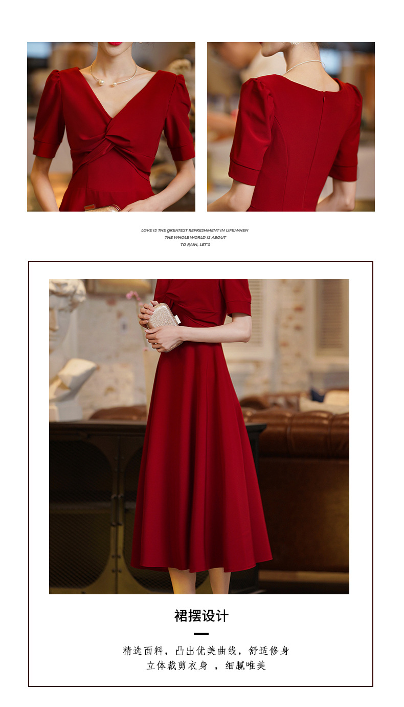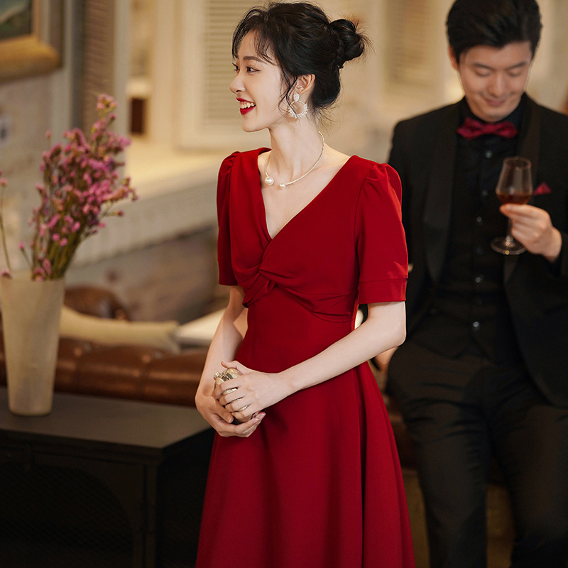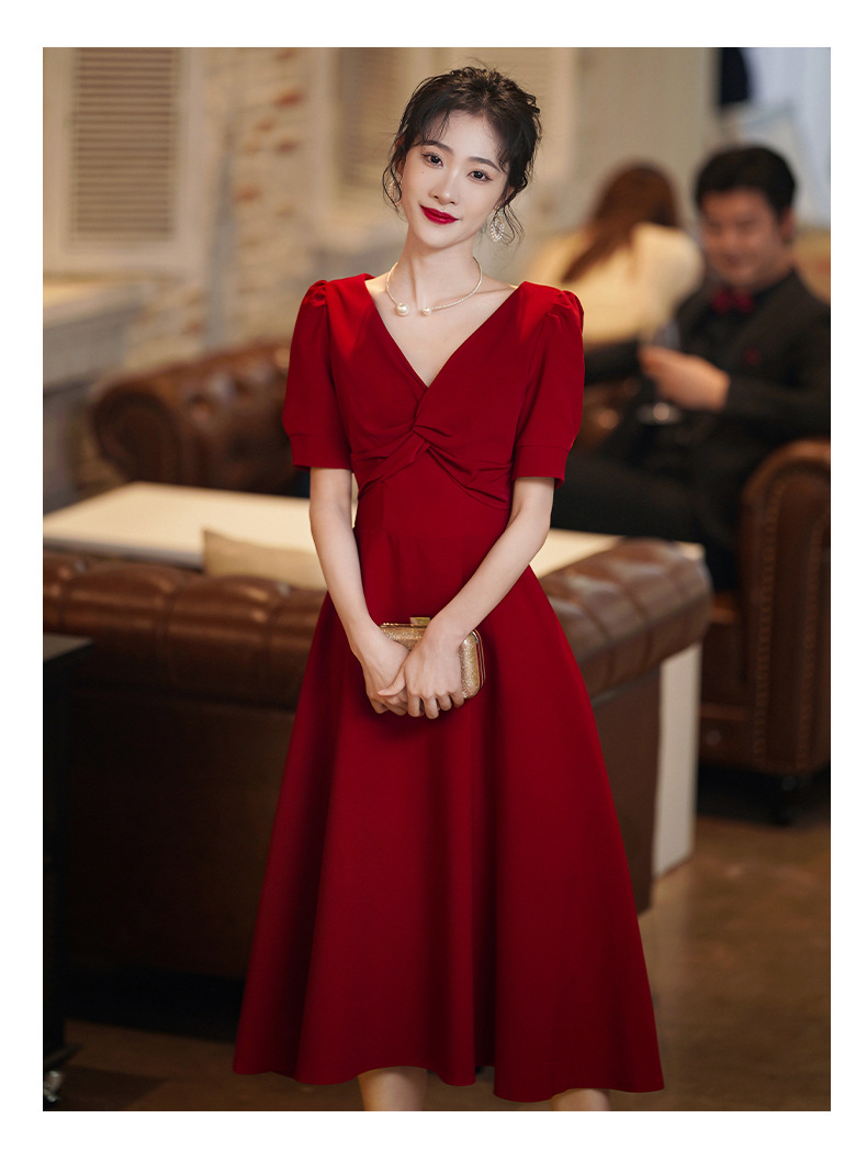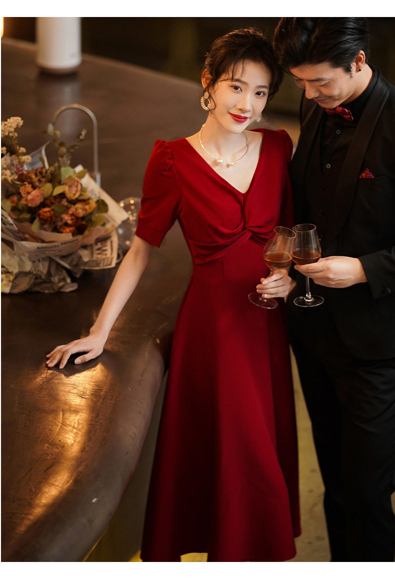Váy liền có màu đỏ rượu vang, phù hợp cho các dịp lễ như đám hỏi, lễ tạ ơn hay gặp mặt gia đình. Kiểu dáng thanh lịch, cổ yếm dịu dàng và tay ngắn nhẹ nhàng. Chất vải mềm mại giúp người mặc thoải mái, có thể dùng trong những ngày thu mát mẻ. Sản phẩm cũng thích hợp để mặc trong những dịp thường ngày. Dễ dàng phối cùng giày cao gót và túi xách nhỏ để tạo điểm nhấn. | Tên sản phẩm: Váy Đầm Liền Thân Dự Tiệc Nữ Hàng Mùa Xuân Thu Đông Dùng Trong Lễ Cưới Ngày Cưới - Thời Trang Nữ | Mã sản phẩm: E6387 - Giá: 1.250.000đ | Mã nhà sản xuất: GUREBE-G04Hình ảnh sản phẩm