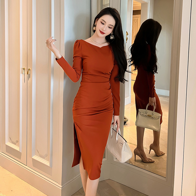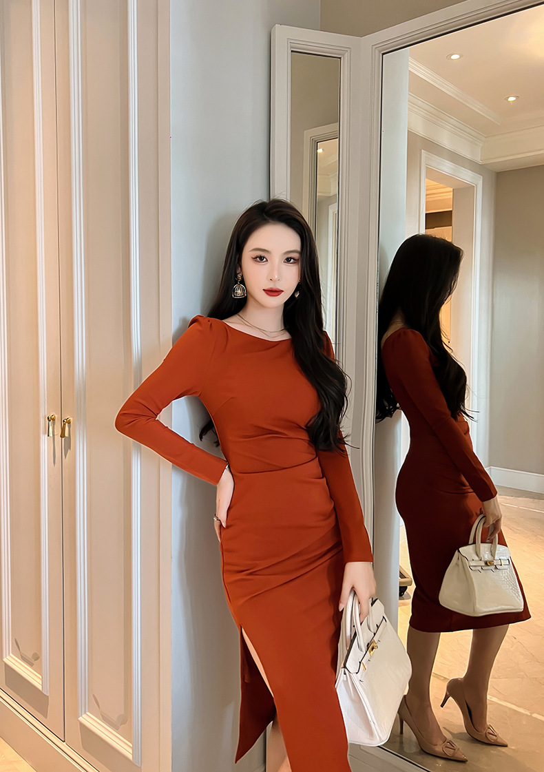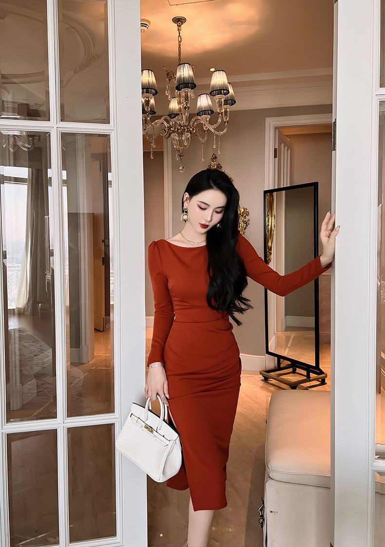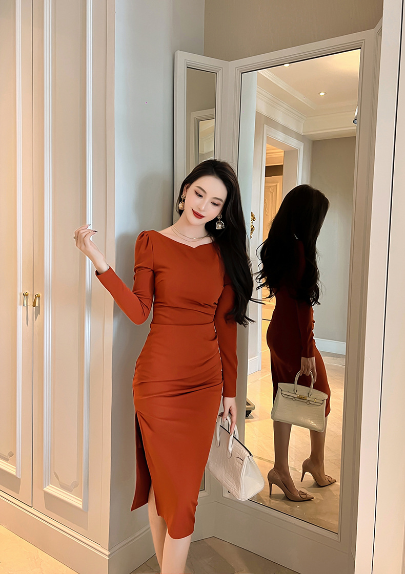 Chiếc váy này có thiết kế cổ tròn rộng tôn dáng v và cổ. Form váy ôm nhẹ cơ thể giúp tạo đường nét thanh thoát. Điểm nhấn là phần tà xẻ nhẹ ở phía dưới, tăng thêm sự linh hoạt khi di chuyển. Chất vải mềm mại mang lại cảm giác dễ chịu cho người mặc suốt ngày dài. Sản phẩm phù hợp để mặc khi đi làm hoặc dự các buổi gặp mặt thông thường. Có thể giặt bằng máy và phơi khô một cách dễ dàng. | Tên sản phẩm: Váy Đầm Liền Thân Nữ Dáng Ôm Hàng Mùa Xuân Thu Đông Đồ Công Sở - Thời Trang Nữ | Mã sản phẩm: E7955 - Giá: 980.000đ | Mã nhà sản xuất: CHDG-G03Hình ảnh sản phẩm