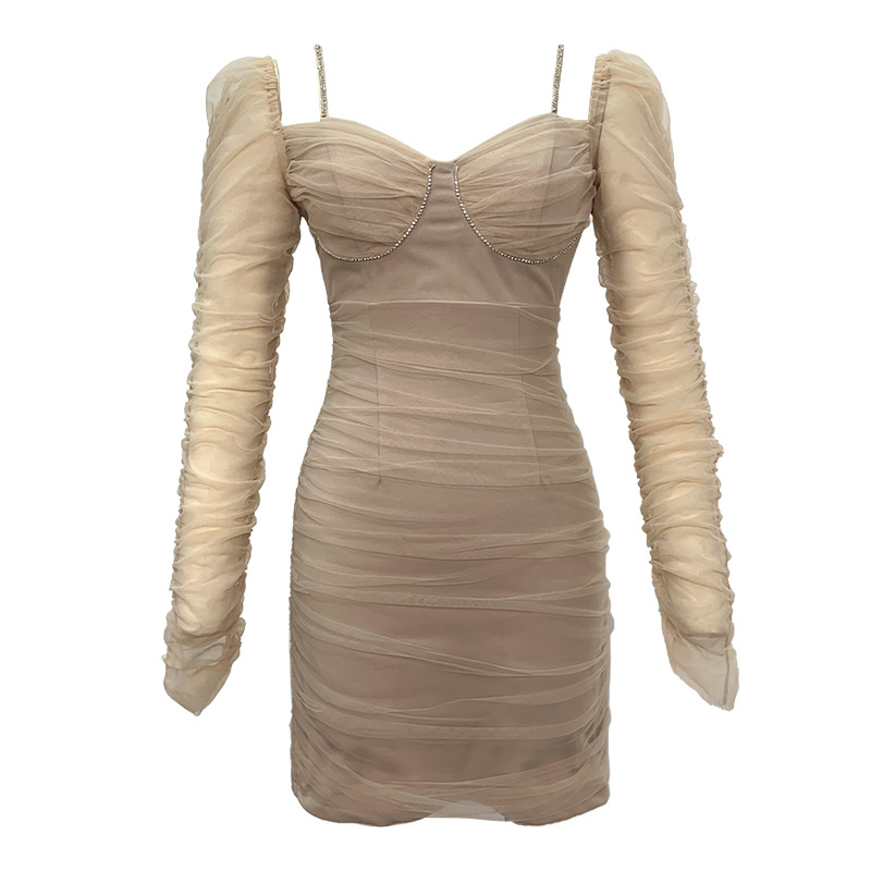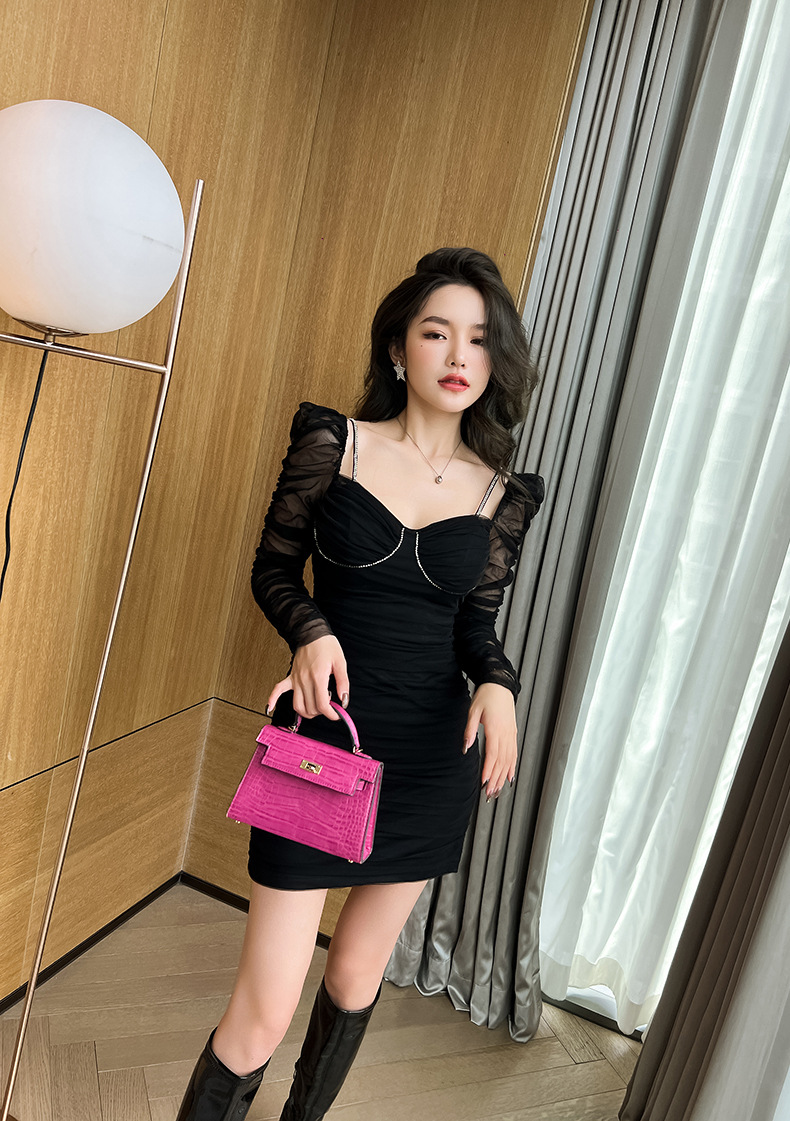 Chiếc đầm thiết kế dáng ôm body, tôn lên những đường nét cơ thể. Cổ chữ V sâu tạo điểm nhấn quyến rũ, kết hợp chất vải mỏng nhẹ có phần phối lưới tinh tế. Các đường nhún xếp ly toàn thân giúp tăng thêm độ bồng bềnh và che khuyết điểm hiệu quả. Sản phẩm phù hợp cho những buổi gặp mặt, dạo phố. Mặc cùng giày cao gót và phụ kiện đơn giản để hoàn thiện set đồ. | Tên sản phẩm: Váy Đầm Liền Thân Nữ Dáng Ôm Lưới Mỏng Cổ Chữ V Hàng Mùa Xuân Thu Đông - Thời Trang Nữ | Mã sản phẩm: E7967 - Giá: 1.130.000đ | Mã nhà sản xuất: CHDG-G04Hình ảnh sản phẩm