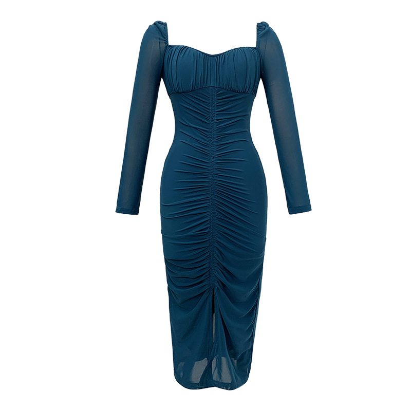 Chiếc đầm dáng ôm body dành cho những ngày thu đông. Tay dài cùng chất liệu vải mỏng có phần lưới tạo nên vẻ gợi cảm nhẹ nhàng. Thiết kế kiểu cách Pháp với các đường nhún xếp tinh tế giúp tôn lên những đường nét cơ thể. Sản phẩm mặc kèm áo trong cùng màu, phù hợp cho nhiều dịp đi chơi hoặc gặp mặt. | Tên sản phẩm: Váy Đầm Liền Thân Dáng Dài Nữ Dài Tay Lưới Mỏng Hàng Mùa Xuân Thu Đông - Thời Trang Nữ | Mã sản phẩm: E7986 - Giá: 1.020.000đ | Mã nhà sản xuất: CHDG-G03Hình ảnh sản phẩm