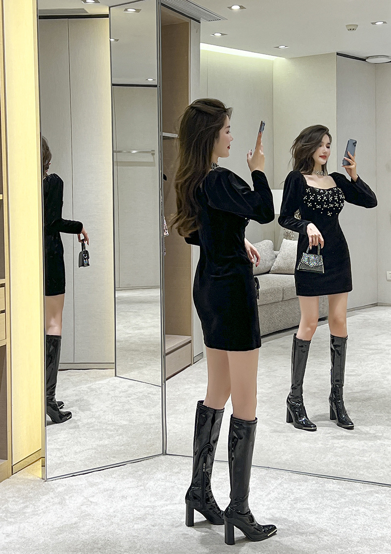 Chiếc đầm ngắn tay dáng ôm dành cho các bạn nữ có chiều cao nhỏ nhắn. Thiết kế cổ vuông thanh lịch, điểm nhấn là những hạt đá lấp lánh được tỉ mỉ gắn lên phần thân, tạo nên vẻ đẹp tinh tế. Chất vải dày dặn mặc rất đẹp và ấm áp trong tiết trời thu đông. Có thể mặc đi làm, dự tiệc hoặc phối cùng giày cao gót để tôn dáng. | Tên sản phẩm: Váy Đầm Liền Thân Nữ Hàng Mùa Xuân Thu Đông - Thời Trang Nữ | Mã sản phẩm: E8210 - Giá: 1.120.000đ | Mã nhà sản xuất: CHDG-G04Hình ảnh sản phẩm