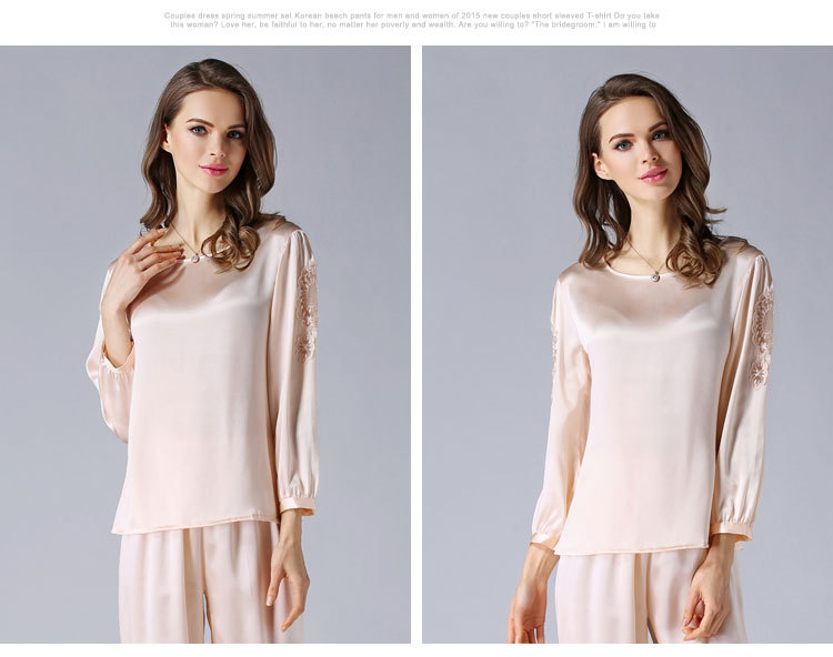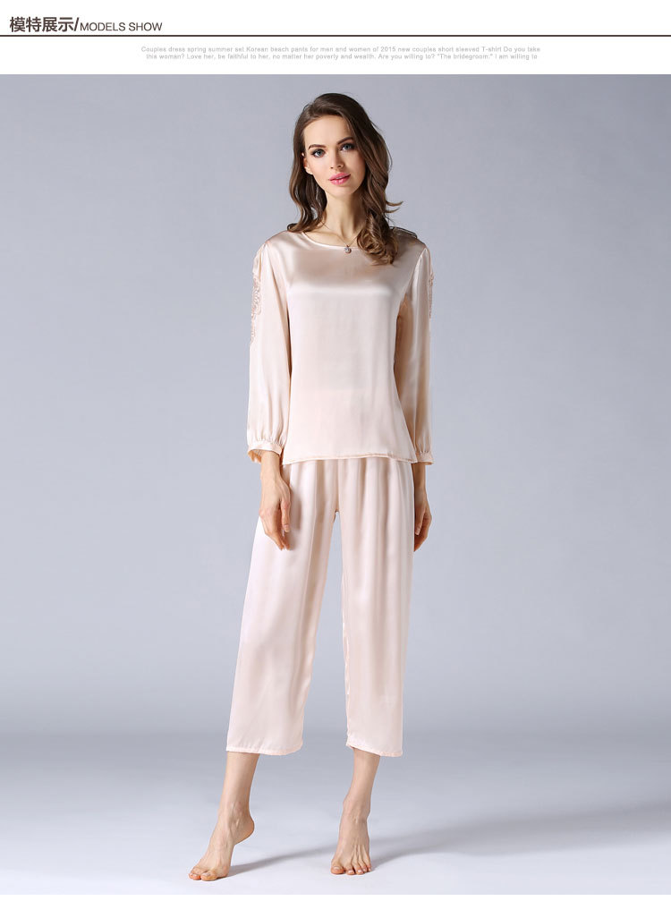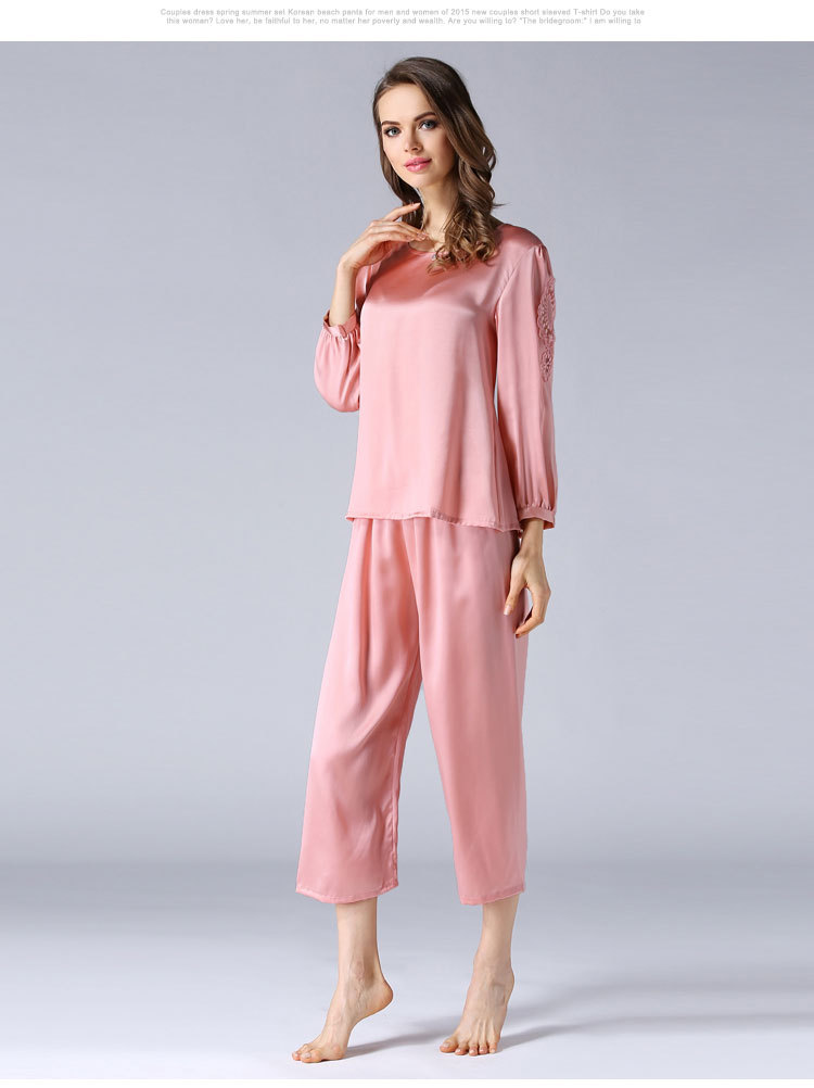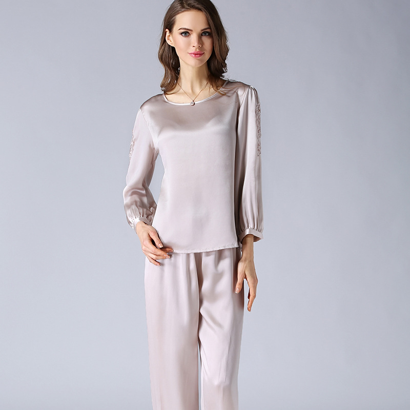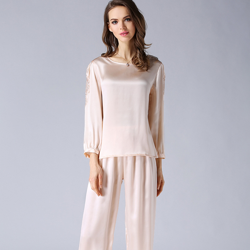 Bộ đồ mặc nhà dành cho nữ, gồm áo dài tay và quần, phù hợp cho mùa xuân, thu và cả những ngày hè mát mẻ. Sản phẩm được dệt từ chất liệu tơ lụa tự nhiên, mang đến cảm giác mềm mại, nhẹ nhàng và thoáng mát khi mặc. Kiểu dáng đơn giản, thanh lịch, thích hợp để mặc khi nghỉ ngơi tại nhà hoặc chuẩn bị đi ngủ. Bạn có thể giặt nhẹ bằng tay với nước lạnh và phơi ở nơi râm mát để giữ chất vải được bền đẹp. | Tên sản phẩm: Đồ Ngủ Nữ Chất Liệu Lụa Tơ Tằm Dài Tay Cả Bộ 2 Món Hàng Mùa Hè Đồ Ngủ Hoặc Mặc Nhà - Thời Trang Nữ | Mã sản phẩm: E9169 - Giá: 2.870.000đ | Mã nhà sản xuất: TODN-G06Hình ảnh sản phẩm