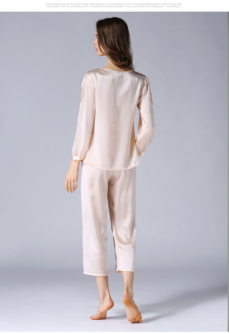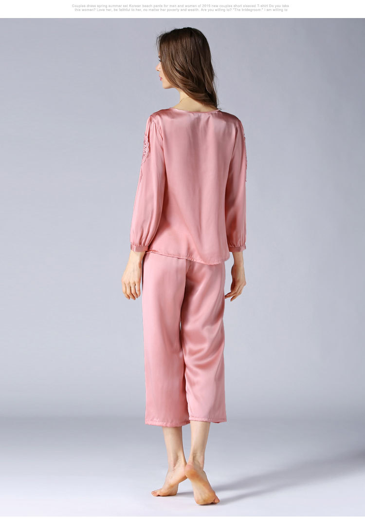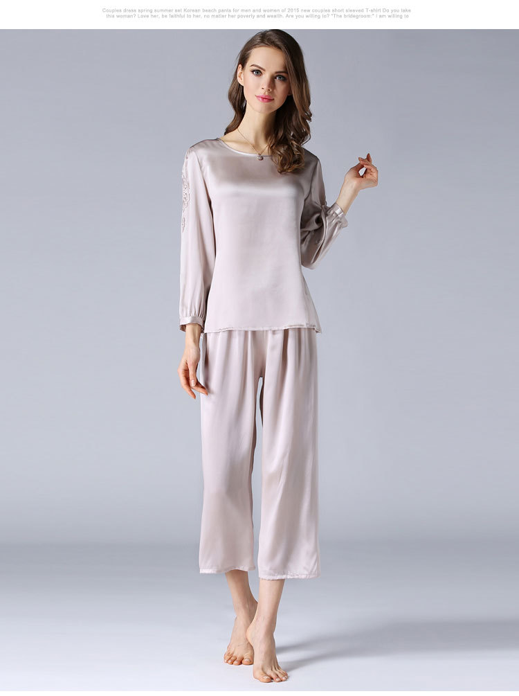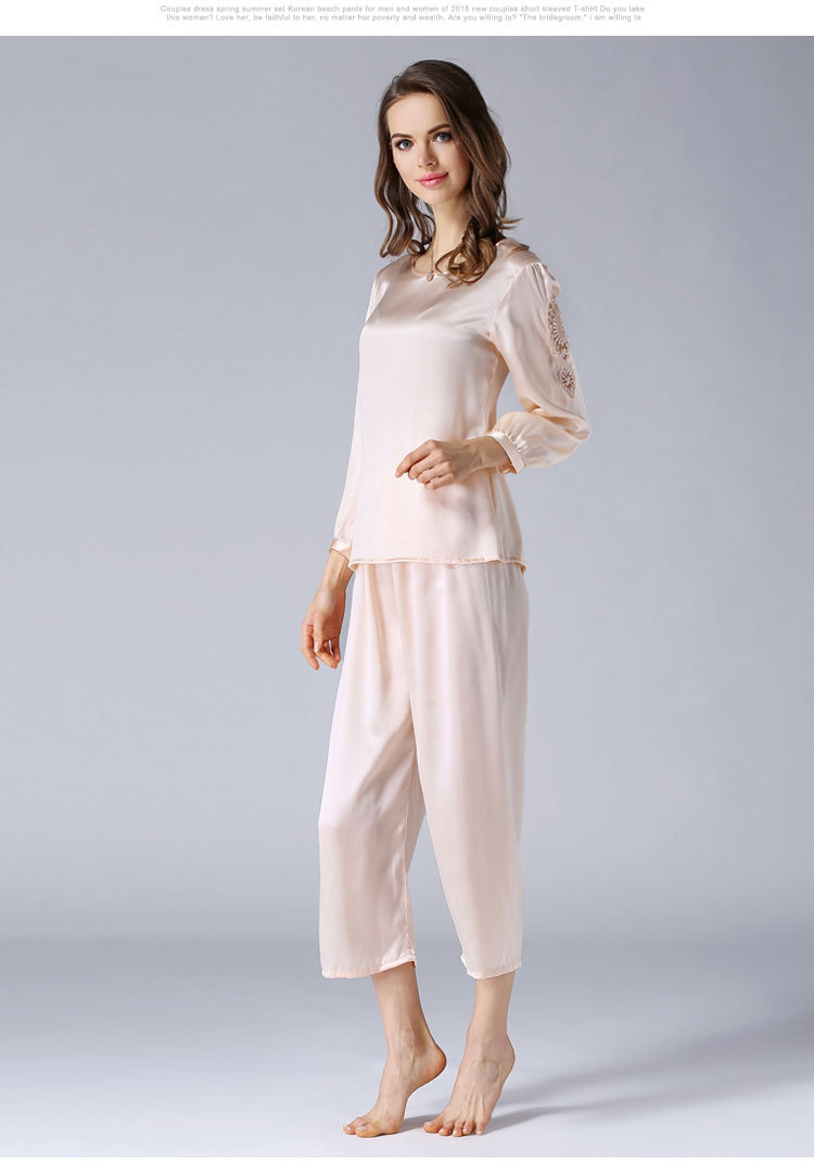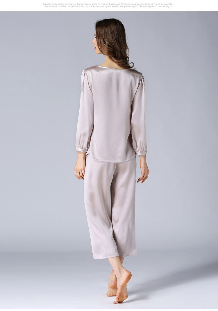 Bộ đồ mặc nhà dành cho nữ, gồm áo dài tay và quần, phù hợp cho mùa xuân, thu và cả những ngày hè mát mẻ. Sản phẩm được dệt từ chất liệu tơ lụa tự nhiên, mang đến cảm giác mềm mại, nhẹ nhàng và thoáng mát khi mặc. Kiểu dáng đơn giản, thanh lịch, thích hợp để mặc khi nghỉ ngơi tại nhà hoặc chuẩn bị đi ngủ. Bạn có thể giặt nhẹ bằng tay với nước lạnh và phơi ở nơi râm mát để giữ chất vải được bền đẹp. | Tên sản phẩm: Đồ Ngủ Nữ Chất Liệu Lụa Tơ Tằm Dài Tay Cả Bộ 2 Món Hàng Mùa Hè Đồ Ngủ Hoặc Mặc Nhà - Thời Trang Nữ | Mã sản phẩm: E9169 - Giá: 2.870.000đ | Mã nhà sản xuất: TODN-G06Hình ảnh sản phẩm
