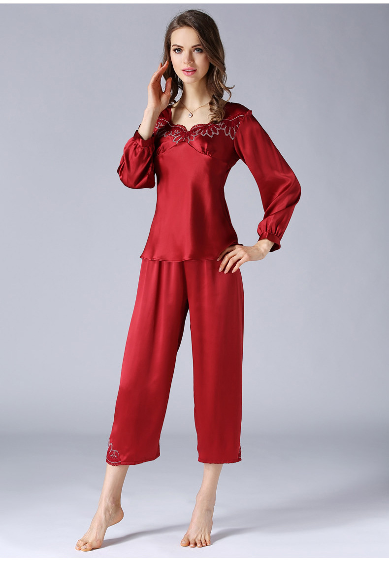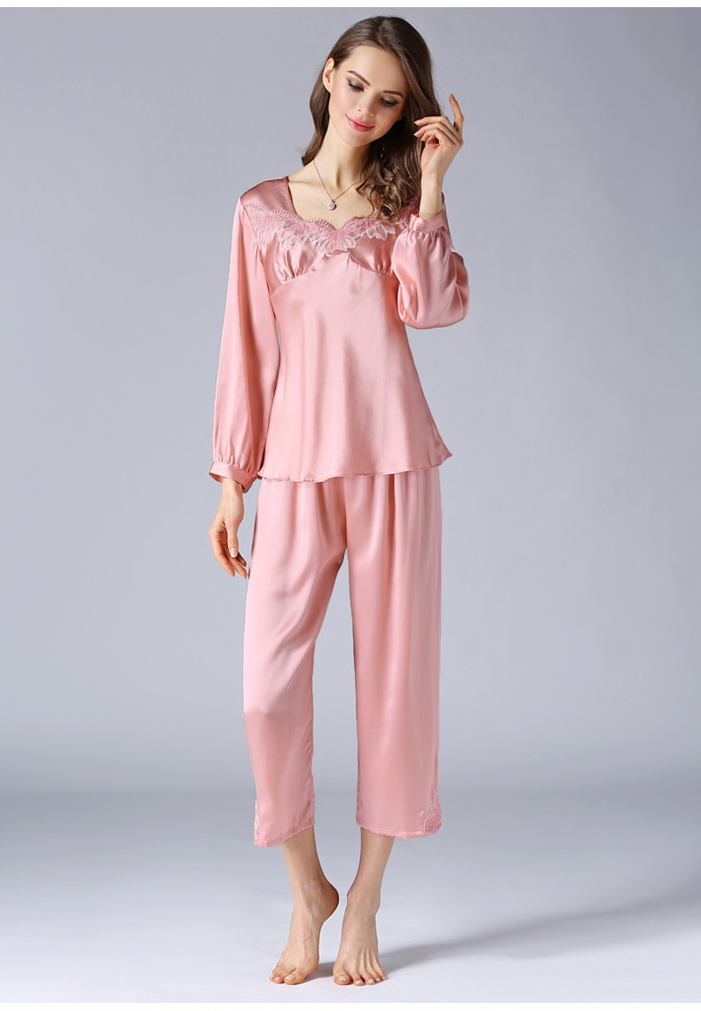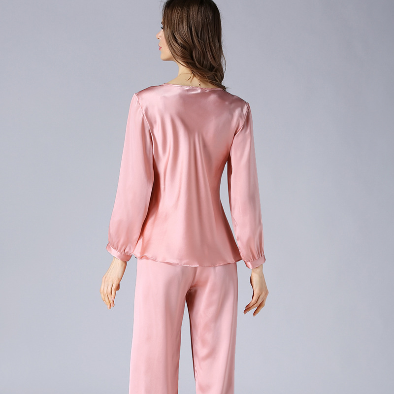 Bộ đồ ngủ tay dài này được dệt hoàn toàn từ sợi tơ tằm tự nhiên, mang đến cảm giác mát mẻ vào mùa hè và ấm áp khi trời thu. Chất vải mềm mại, nhẹ nhàng ôm sát cơ thể, giúp bạn có giấc ngủ ngon và thoải mái. Thiết kế gồm áo và quần đơn giản, phù hợp mặc trong nhà hoặc thư giãn cuối tuần. Sản phẩm dễ dàng giặt bằng tay với nước thường và phơi trong bóng râm. | Tên sản phẩm: Đồ Ngủ Nữ Chất Liệu Lụa Tơ Tằm Dài Tay Cả Bộ 2 Món Hàng Mùa Hè Đồ Ngủ Hoặc Mặc Nhà - Thời Trang Nữ | Mã sản phẩm: E9177 - Giá: 2.910.000đ | Mã nhà sản xuất: TODN-G06Hình ảnh sản phẩm