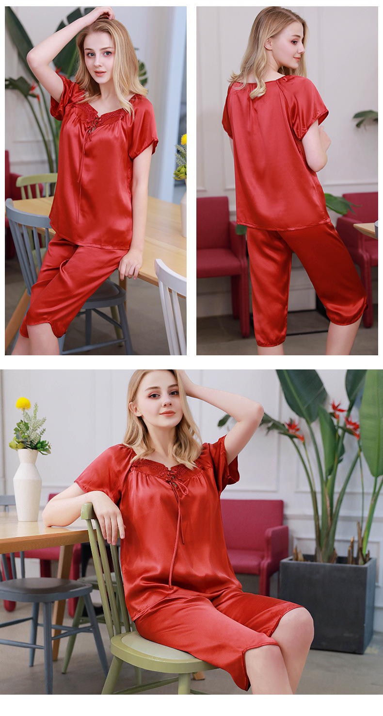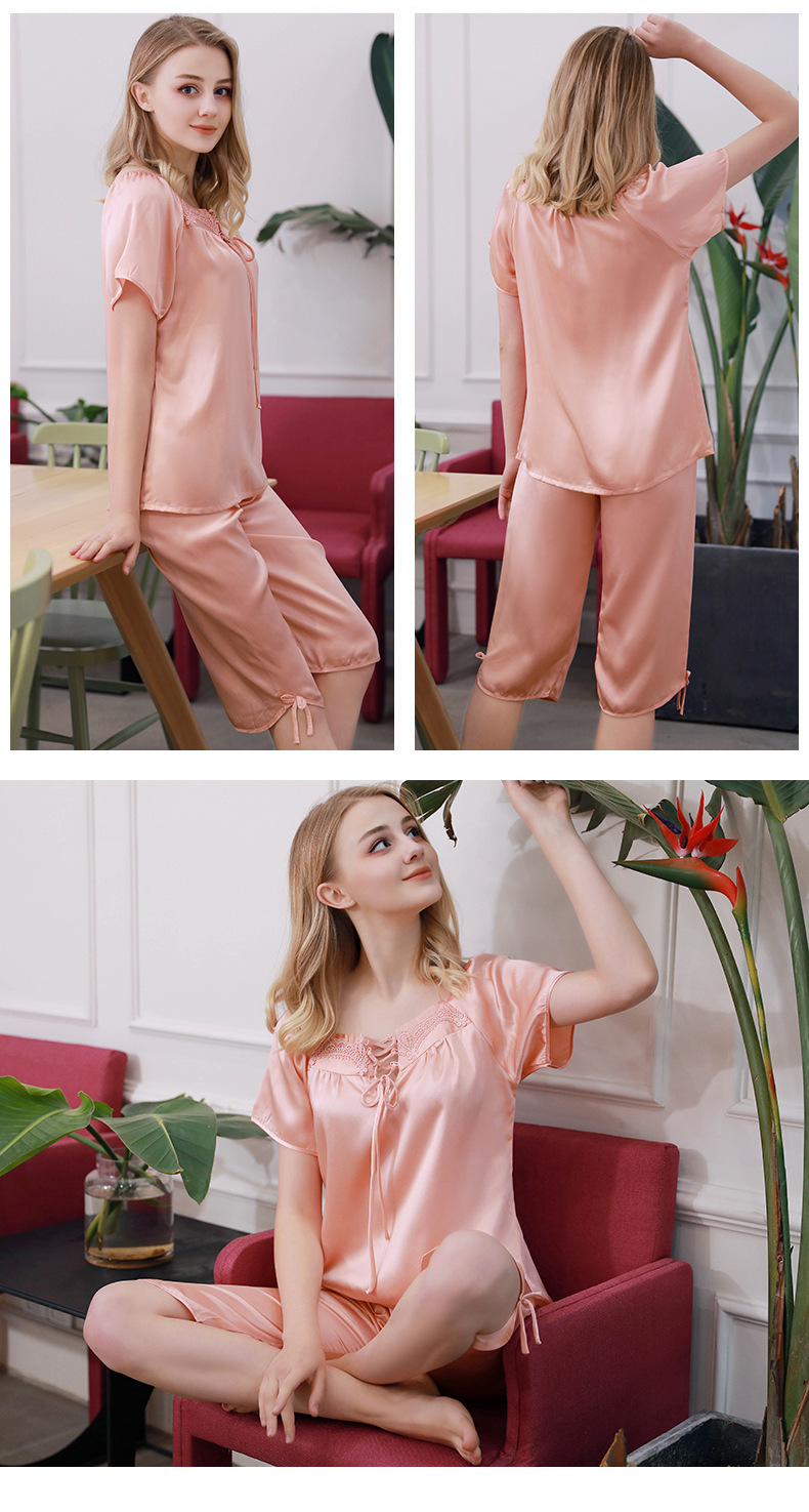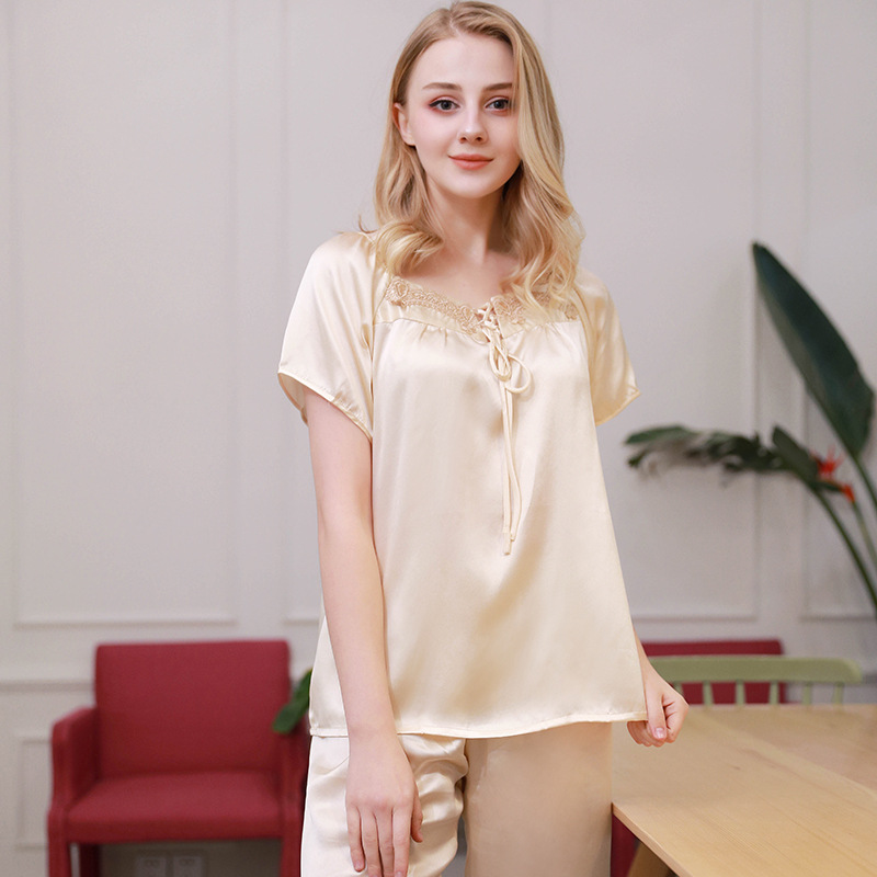Bộ đồ mặc nhà này có chất vải mềm mại và thoáng mát, được dệt hoàn toàn từ tơ tằm tự nhiên. Thiết kế gồm áo ngắn tay và quần sóoc mang phong cách đơn giản, tinh tế. Trên áo có điểm xuyết những chi tiết ren nhẹ nhàng, tạo nên vẻ thanh lịch. Sản phẩm phù hợp để mặc thư giãn tại nhà hoặc khi ngủ. Bạn chỉ cần giặt nhẹ và phơi trong bóng râm để giữ chất vải được bền đẹp. | Tên sản phẩm: Đồ Ngủ Nữ Chất Liệu Lụa Tơ Tằm Ngắn Tay Cả Bộ 2 Món Hàng Mùa Hè Đồ Ngủ Hoặc Mặc Nhà - Thời Trang Nữ | Mã sản phẩm: E9188 - Giá: 2.600.000đ | Mã nhà sản xuất: TODN-G06Hình ảnh sản phẩm
