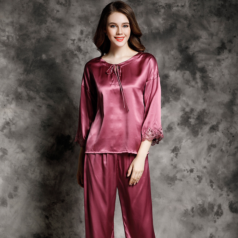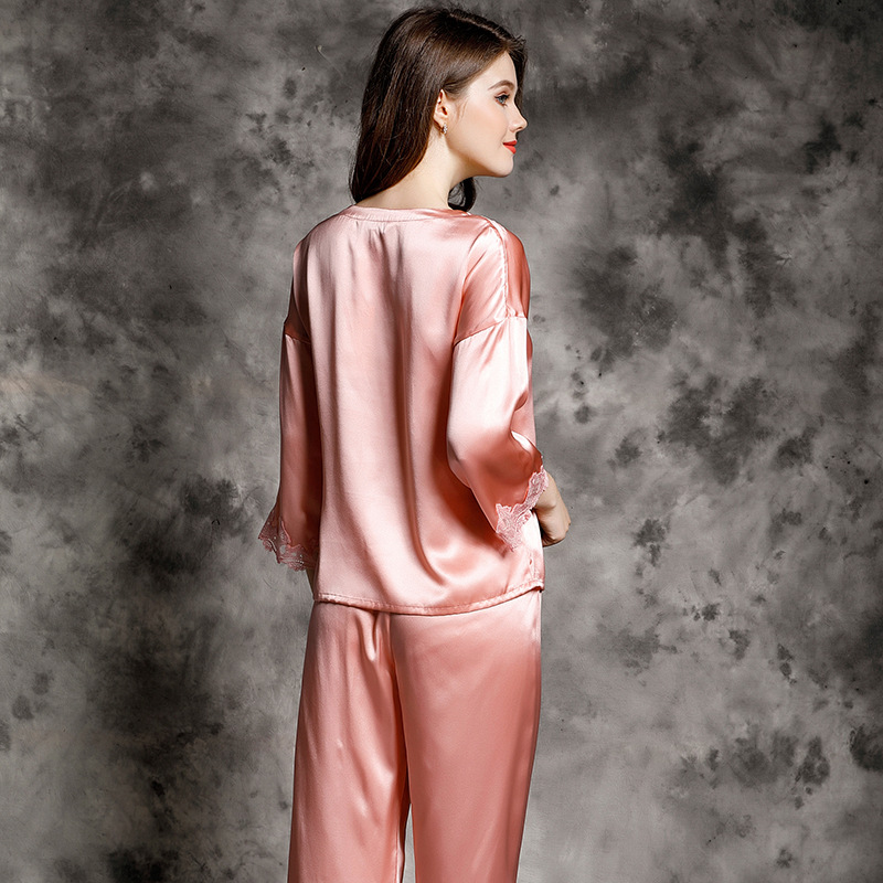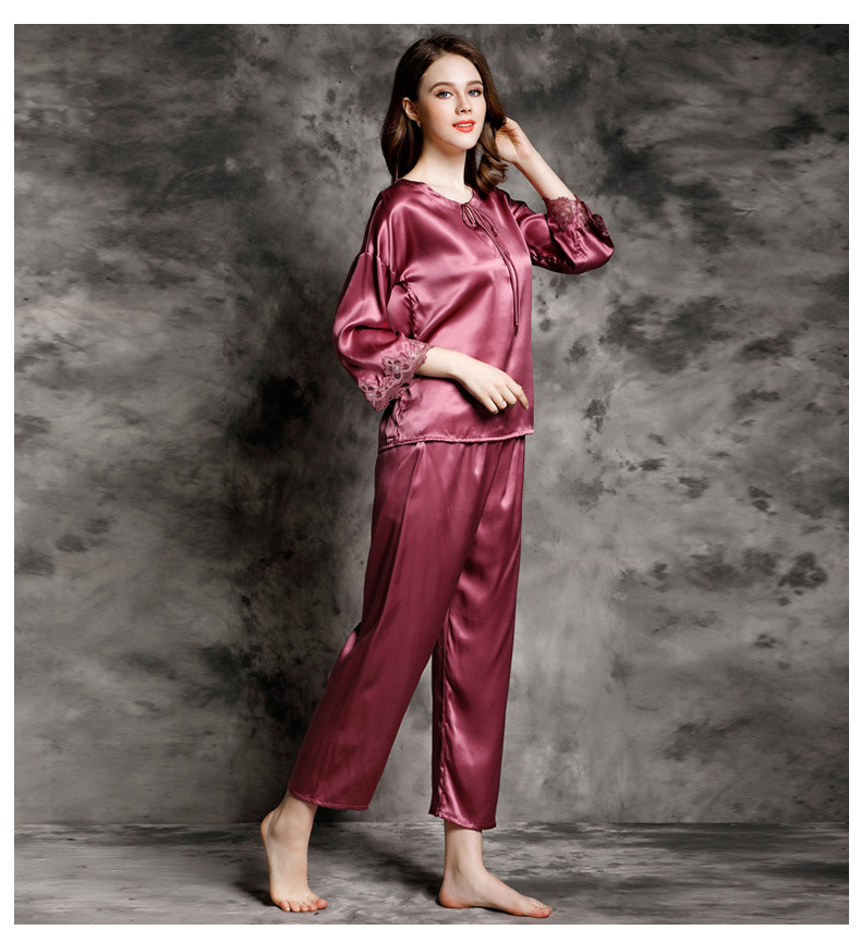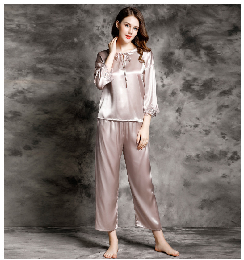 Bộ đồ mặc nhà này được dệt hoàn toàn từ sợi tơ tằm tự nhiên, mang đến cảm giác mềm mại, thoáng mát và dễ chịu cho người mặc. Thiết kế dạng bộ hai mảnh với áo dài tay và quần dài, phù hợp dùng làm đồ ngủ hoặc mặc thư giãn ở nhà vào những ngày thu se lạnh hoặc mùa hè. Sản phẩm nhẹ nhàng, co giãn tốt, giúp bạn có những giấc ngủ ngon và cảm giác thoải mái suốt ngày dài. | Tên sản phẩm: Đồ Ngủ Nữ Chất Liệu Lụa Tơ Tằm Dài Tay Cả Bộ 2 Món Hàng Mùa Hè Đồ Ngủ Hoặc Mặc Nhà - Thời Trang Nữ | Mã sản phẩm: E9195 - Giá: 3.240.000đ | Mã nhà sản xuất: TODN-G06Hình ảnh sản phẩm