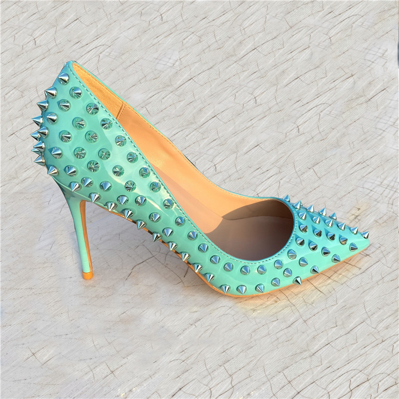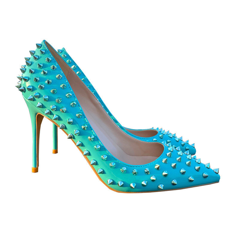 Giày cao gót nữ với phần gót thanhai mảnh cao mười phân, kiểu dáng hở mũi nhẹ nhàng. Điểm nhấn đặc biệt là những chi tiết đinh tán được đính chắc chắn xung quanh thân giày, tạo nên vẻ cá tính và mạnh mẽ. Sản phẩm phù hợp để phối cùng nhiều trang phục khác nhau. Khi sử dụng, bạn nên chọn size phù hợp với chân và vệ sinh bề mặt bằng khăn mềm để giữ giày luôn sạch đẹp. | Tên sản phẩm: Giày Cao Gót Nữ Gót Nhọn Hàng Mùa Xuân Thu Đông - Giày Dép Nữ | Mã sản phẩm: E9504 - Giá: 1.380.000đ | Mã nhà sản xuất: HURYNG-G04Hình ảnh sản phẩm